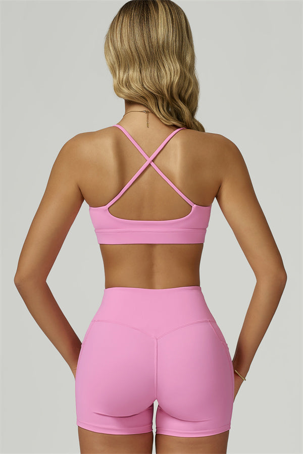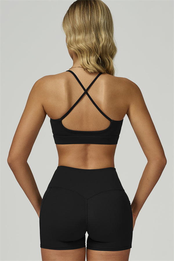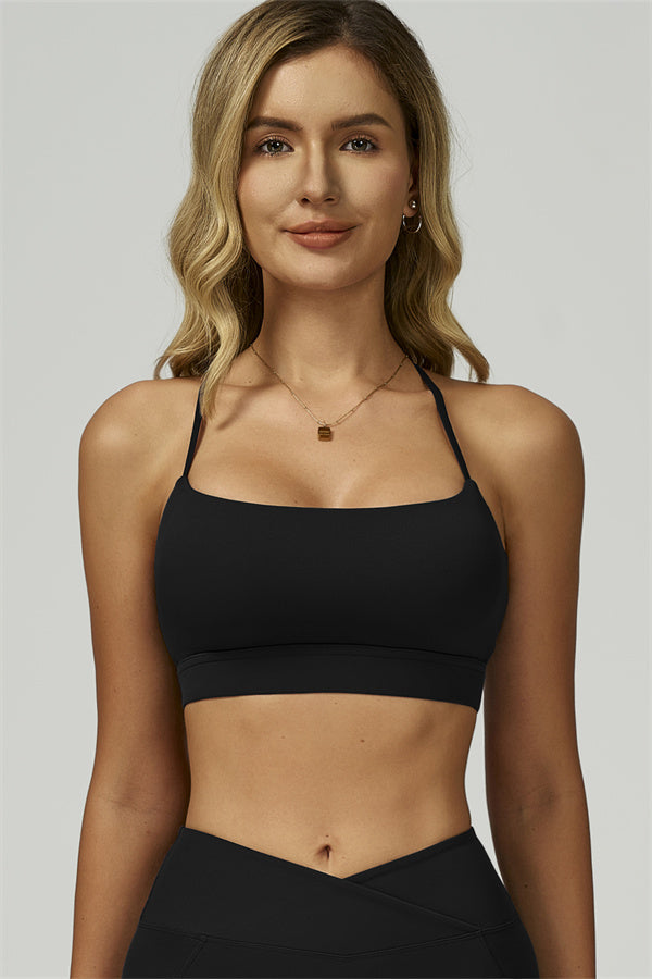 Slim cross-back straps with open detailing to reveal your shoulder blades