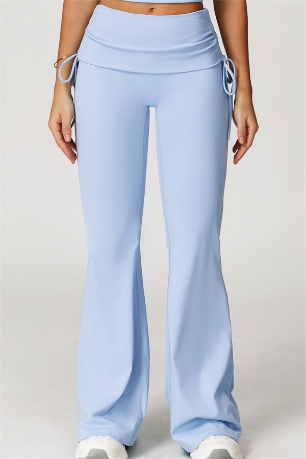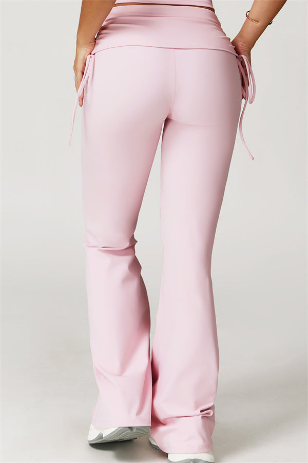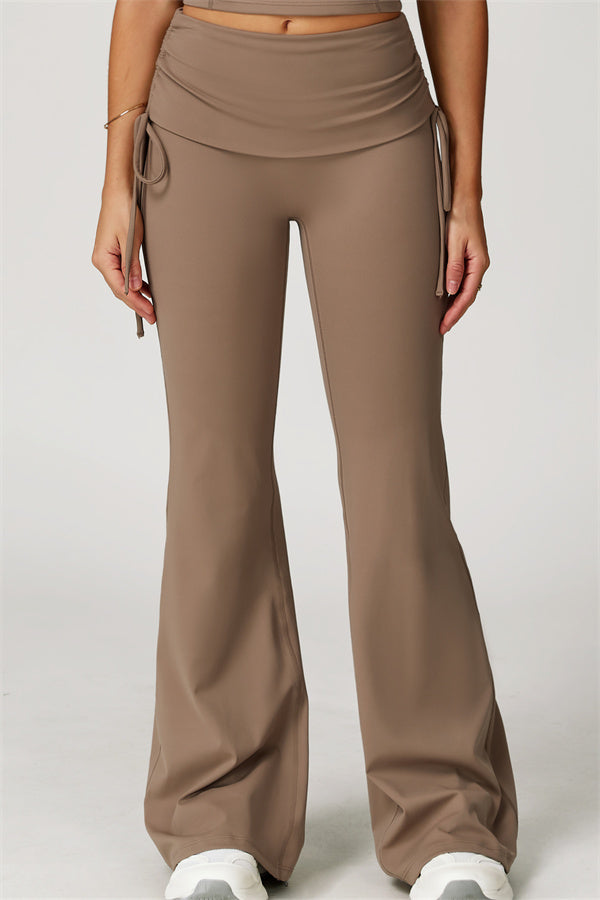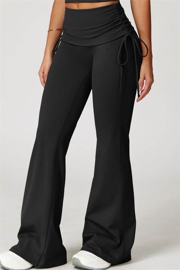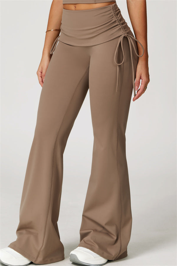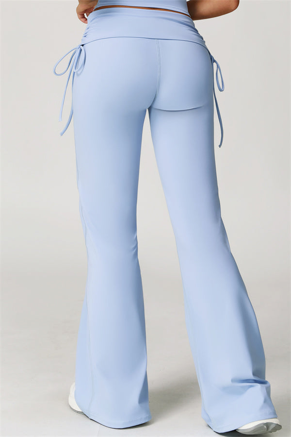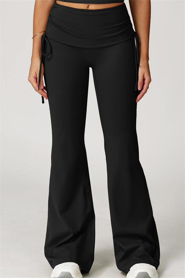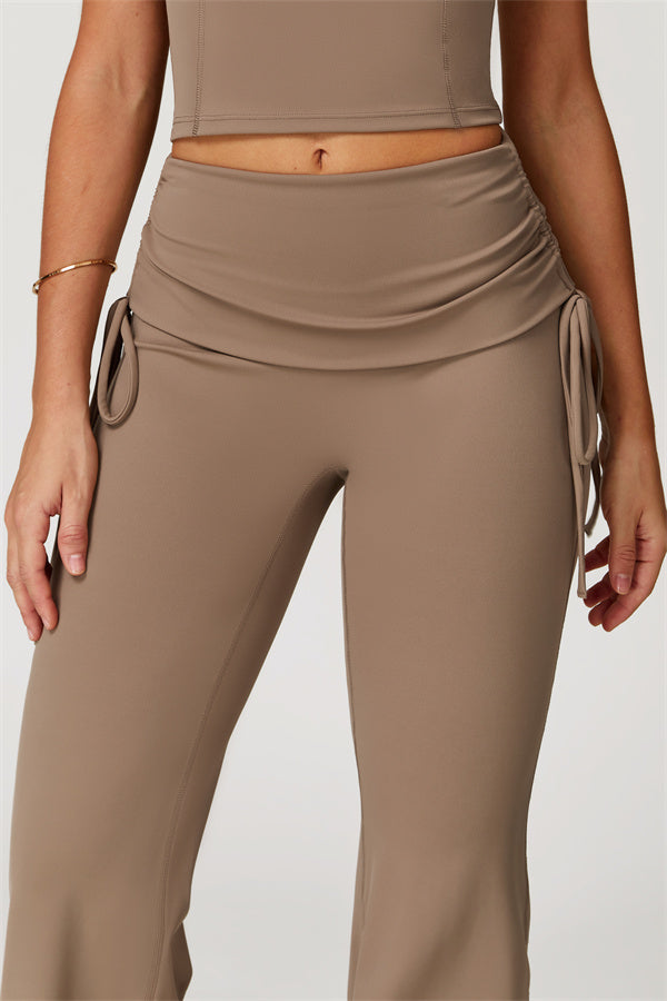 Designed with a fold-over waistband, The Echo Flared Leggings comfortably conceal the tummy while offering adjustable side drawstrings to customize height and fit. The flared leg silhouette elongates your legs for a sleek, stylish look.