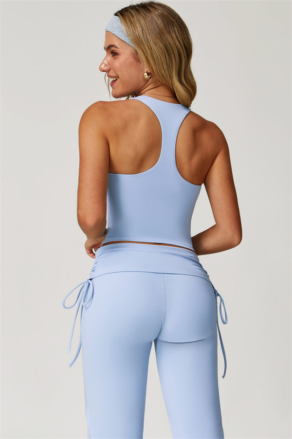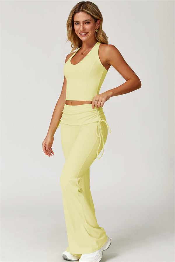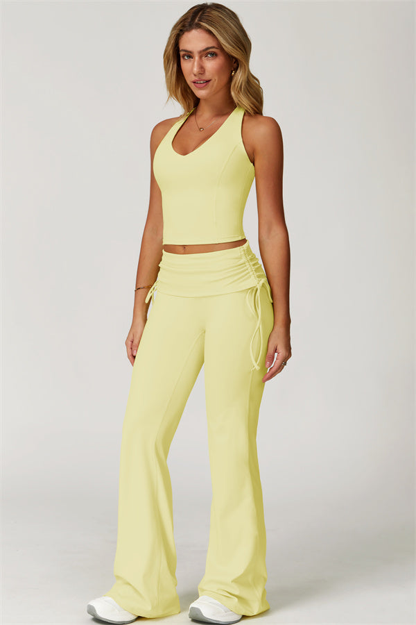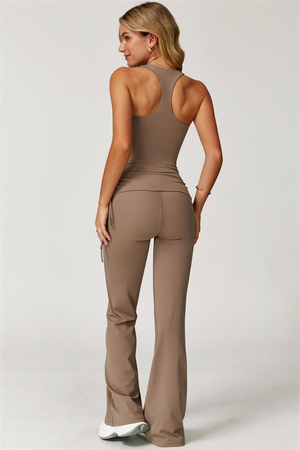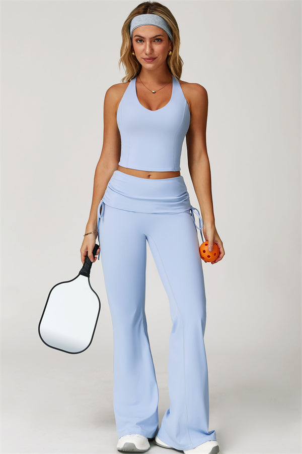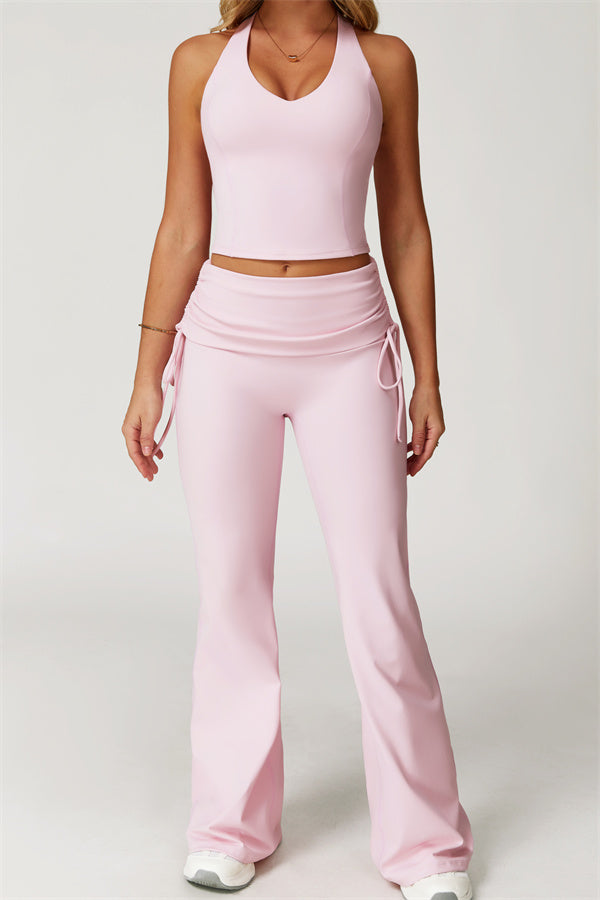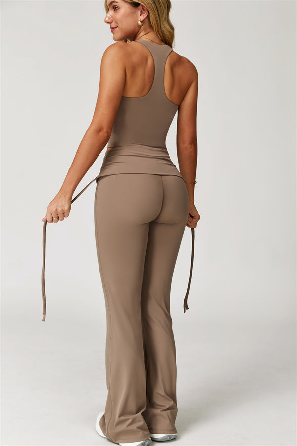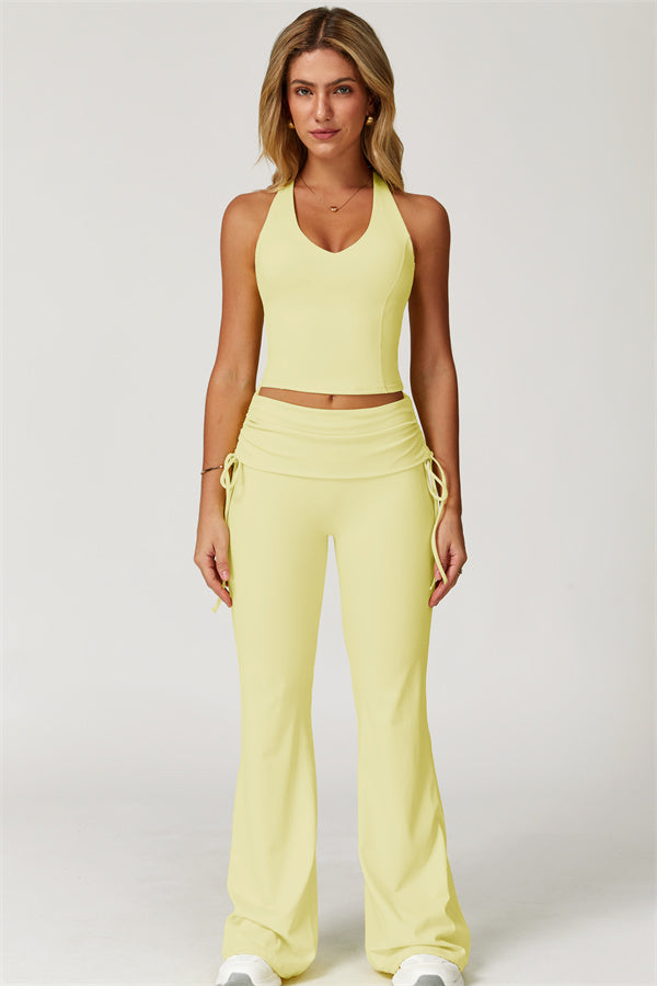 Designed with a fold-over waistband, The Echo Flared Leggings comfortably conceal the tummy while offering adjustable side drawstrings to customize height and fit. The flared leg silhouette elongates your legs for a sleek, stylish look.