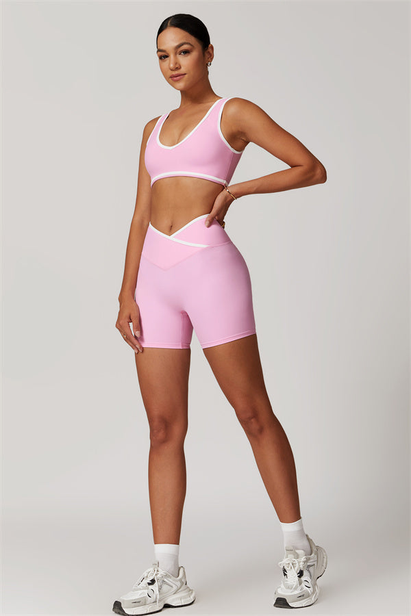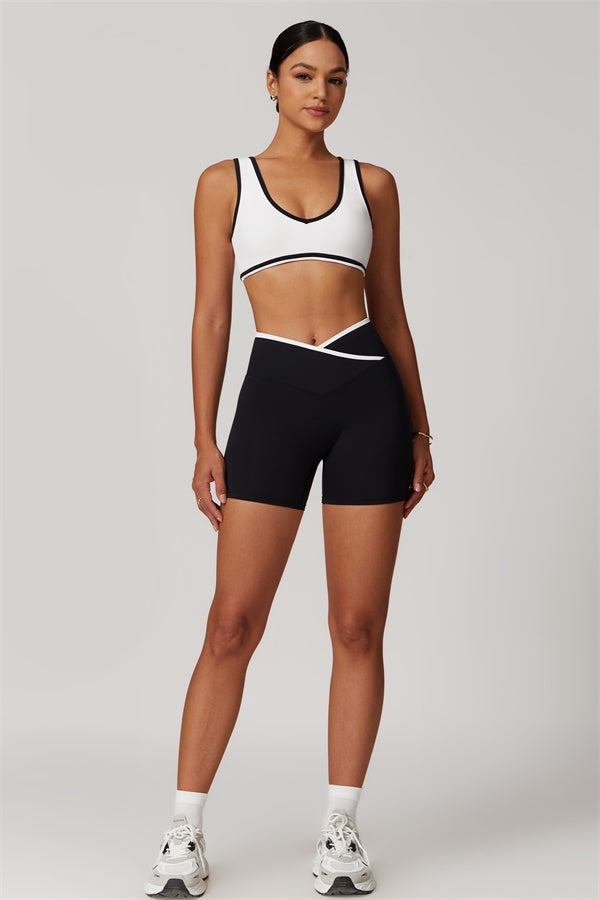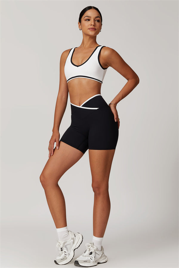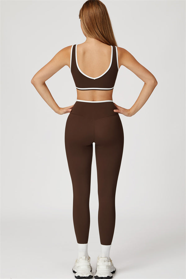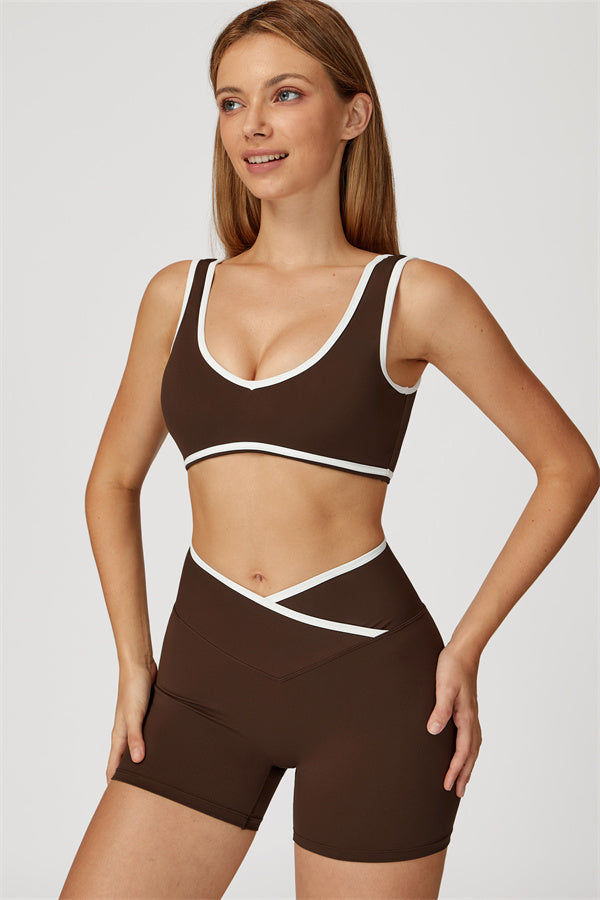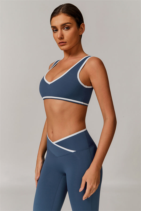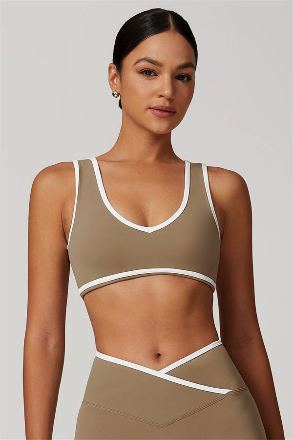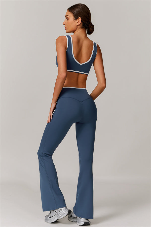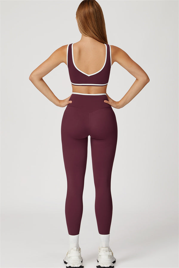 Featuring a vibrant color-blocked design that adds depth and style to your workout wardrobe. The U-shaped neckline beautifully highlights your collarbones, while the hollow back showcases your elegant shoulder blades for a touch of allure.