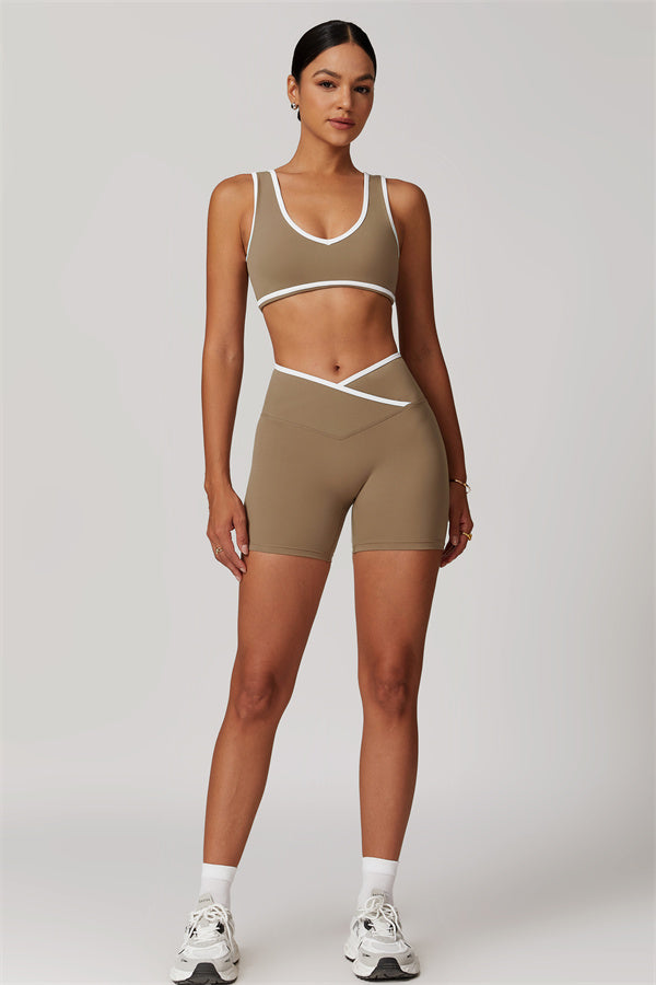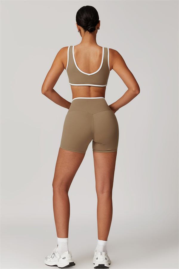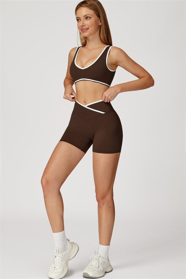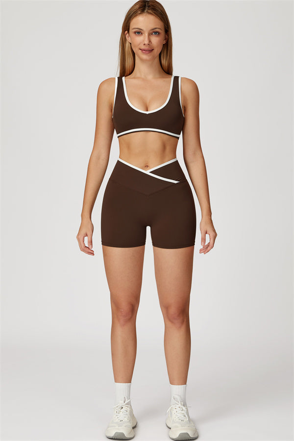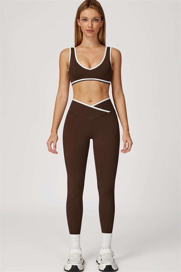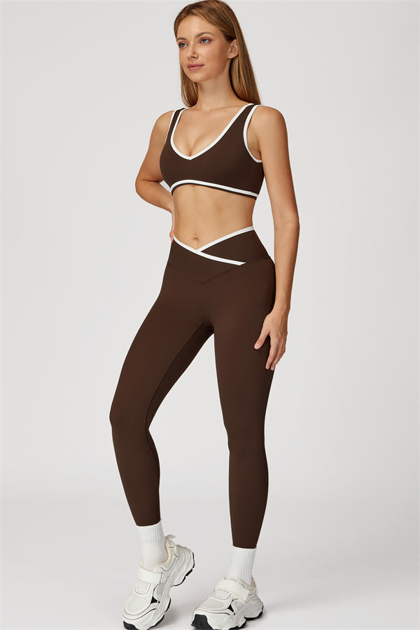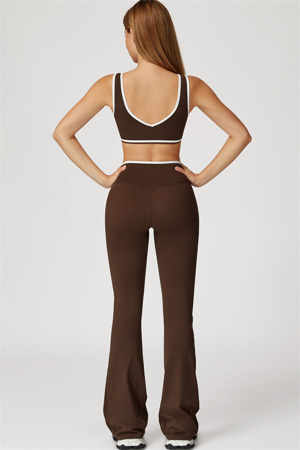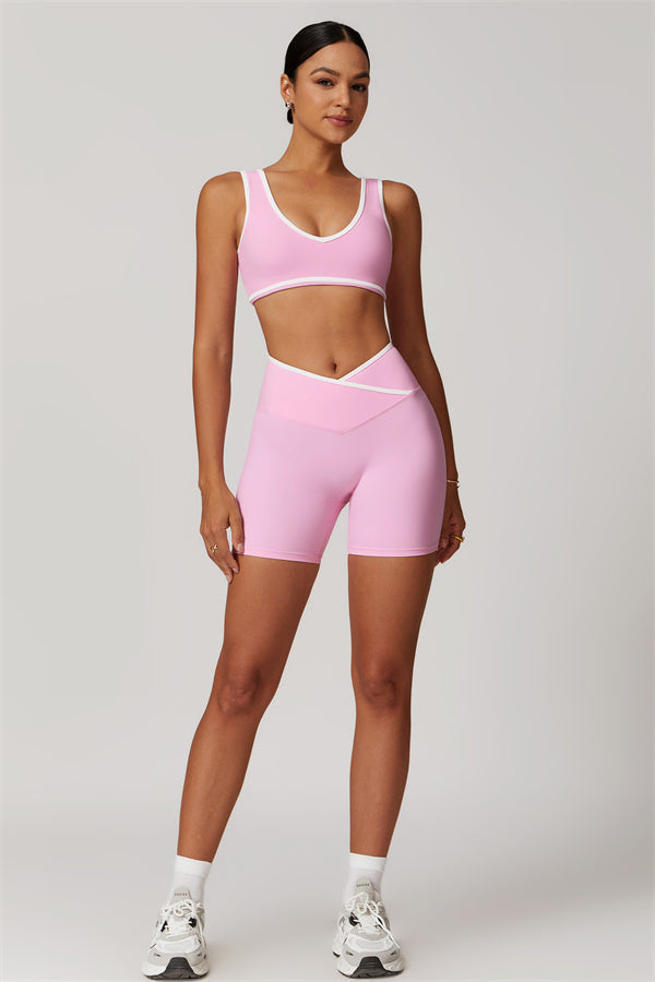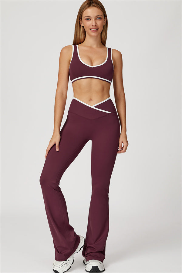 Featuring a vibrant color-blocked design that adds depth and style to your workout wardrobe. The U-shaped neckline beautifully highlights your collarbones, while the hollow back showcases your elegant shoulder blades for a touch of allure.
