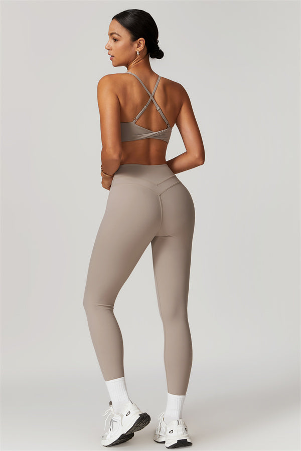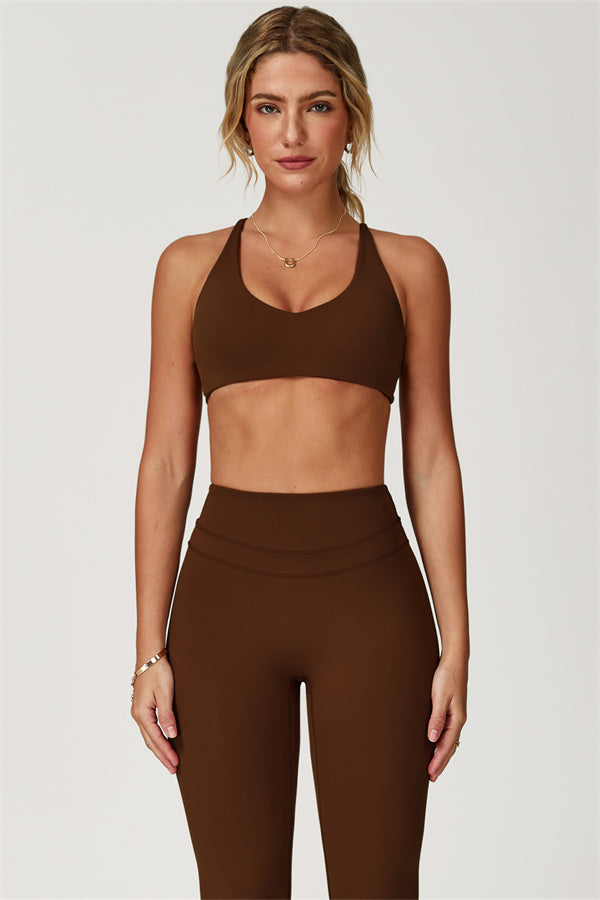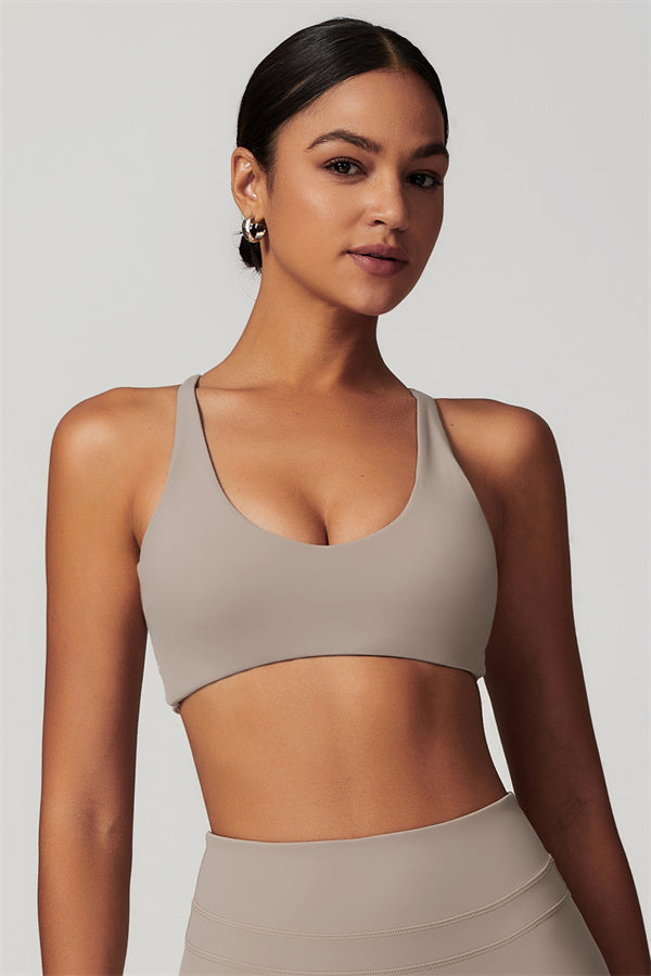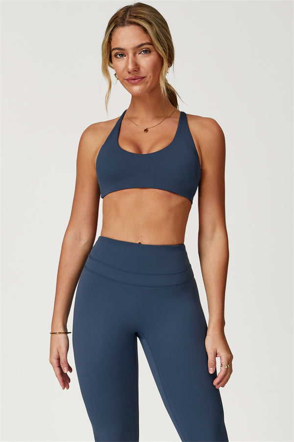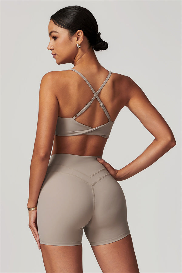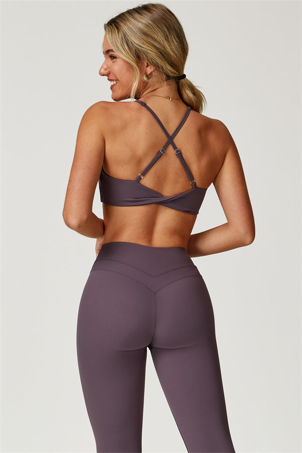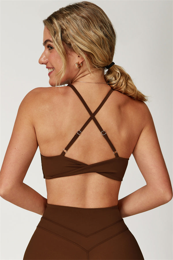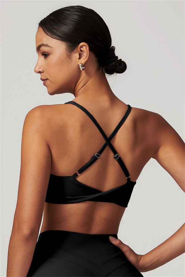This sports bra combines style and support for a flawless workout-to-street look. Designed with adjustable cross-back straps, it elegantly highlights your shoulders while revealing the beautiful lines of the upper back. The unique twisted back hemline adds depth and a structured look, giving it a dynamic, layered effect. Removable padding provides personalized support, making it easy to transition from workouts to casual wear.