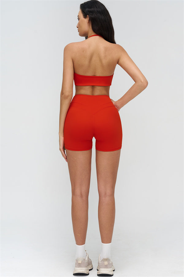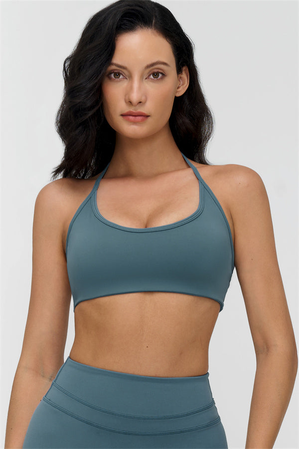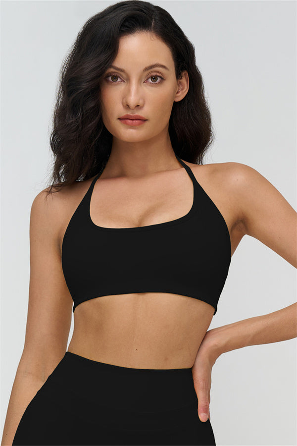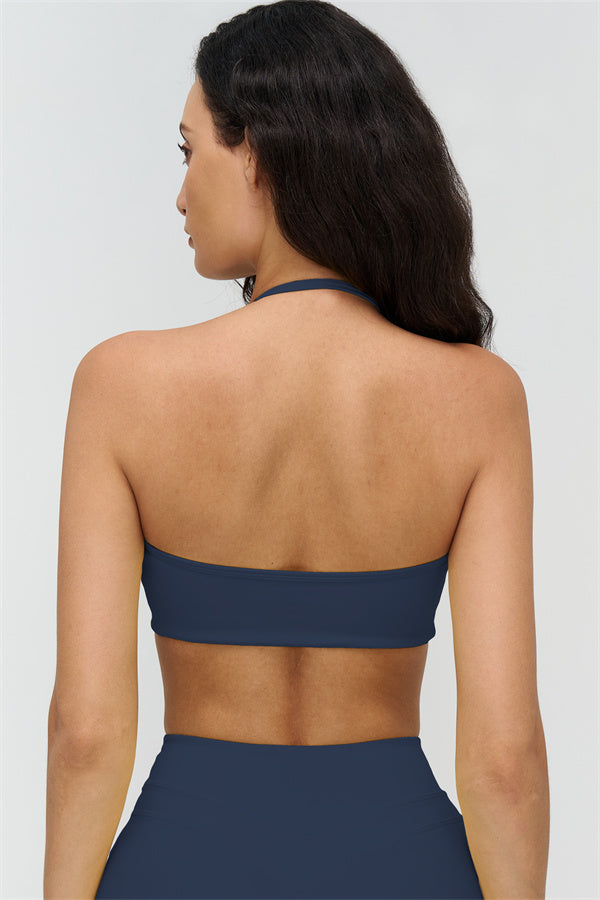 The Stride Halter Sports Bra is designed to highlight your natural curves while delivering comfort and freedom of movement. With a flattering neckline and an open-back design, it's perfect for workouts and everyday wear alike.