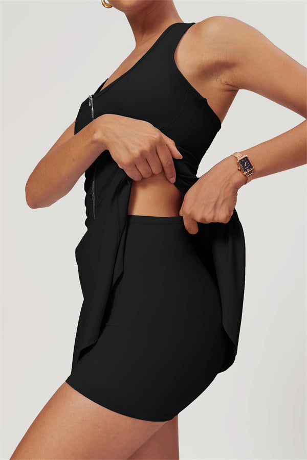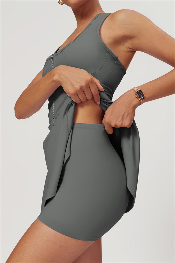 Featuring sculpted seams at the front for enhanced support, this skirt offers excellent shock absorption and a snug fit to keep you comfortable during play. The flattering A-line silhouette elongates your figure, while the thoughtfully designed built-in shorts ensure maximum coverage and peace of mind.