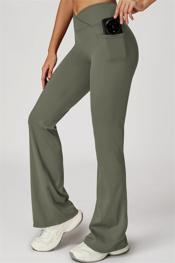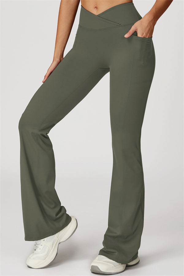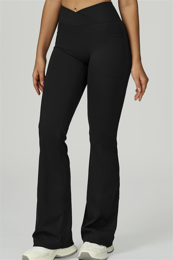 Crossover waistband stays in place, no rolling, no slipping