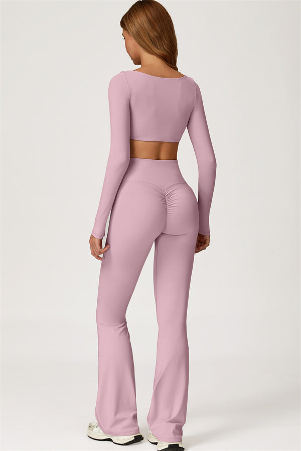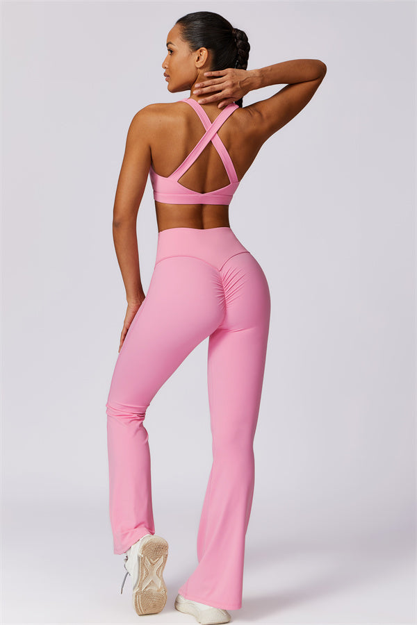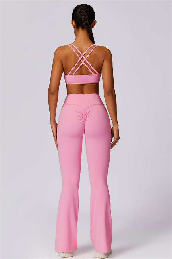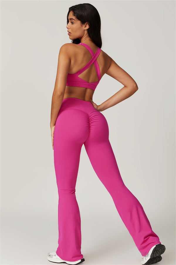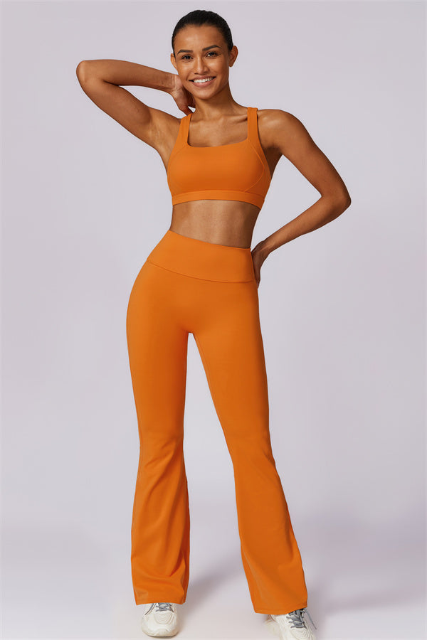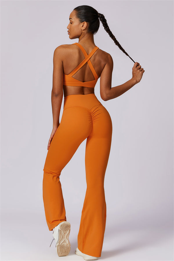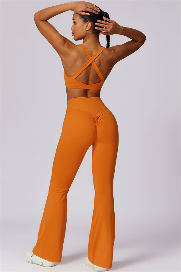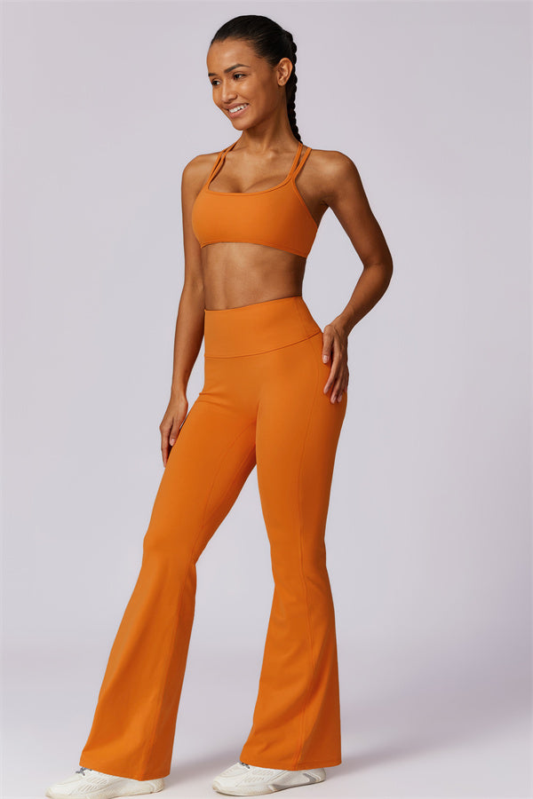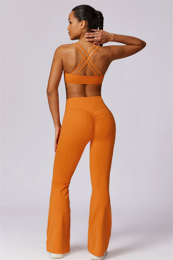 Introducing our stylish flared leggings, designed to enhance your leg lines and create a flattering silhouette. The unique tapered design helps lift and shape your rear, giving you a fuller, more defined look.