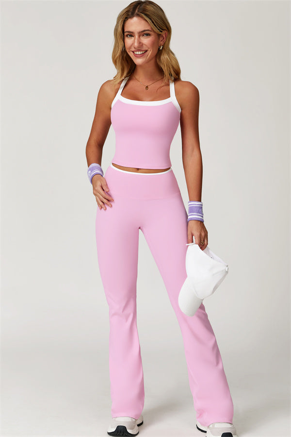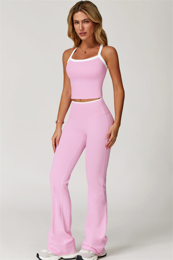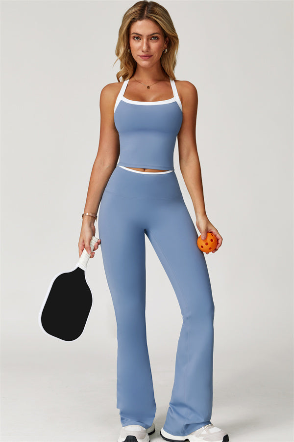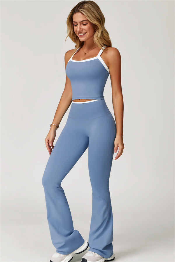 The Quest Cross Back Crop Top Flared Leggings 2-Piece Set