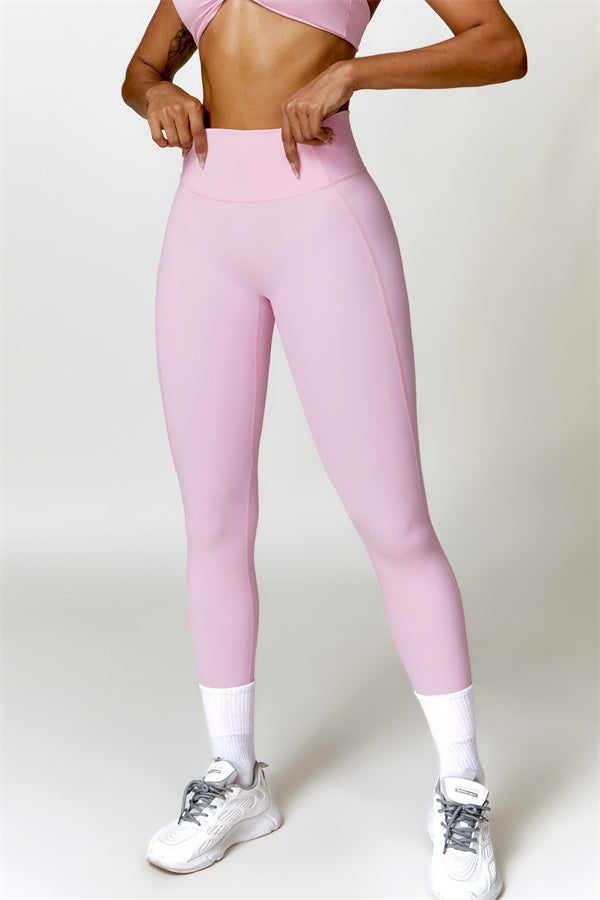 This matching set combines a chic, twisted-front sports bra with high-waisted, figure-enhancing leggings, creating a sleek and stylish look for both workouts and casual wear. The sports bra features a front twist detail for a touch of elegance, while the trapezoid waistband on the leggings is designed to gently sculpt your waist, offering a flattering, secure fit without pinching.