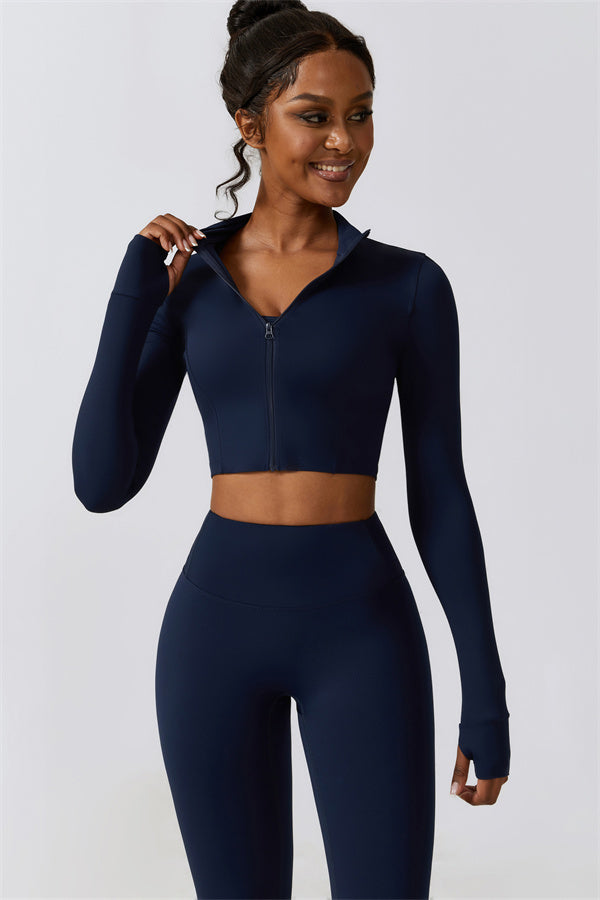 Made from our signature 78% recycled nylon and 22% spandex blend, the fabric is skin-friendly and ultra-soft, with excellent moisture-wicking properties to keep you dry and comfortable during intense activities. The jacket completes the set with a sleek fit, adding an extra layer of versatility for warm-ups or outdoor workouts. This set delivers a streamlined, performance-driven style that will keep you looking and feeling your best, whether at the gym or out and about.