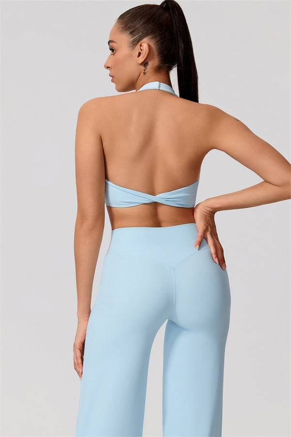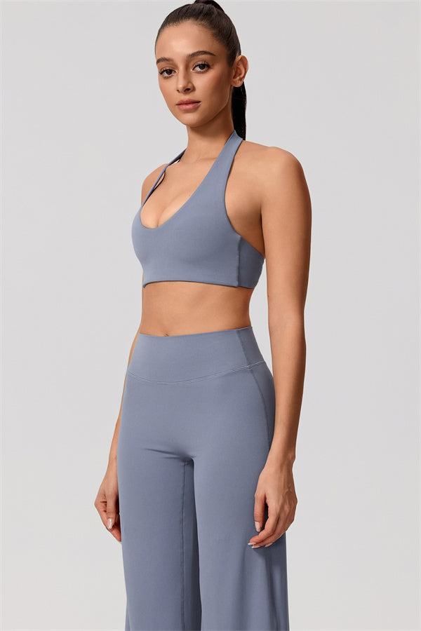 Halter-style straps provide a breathable, unrestricted fit