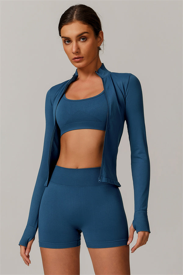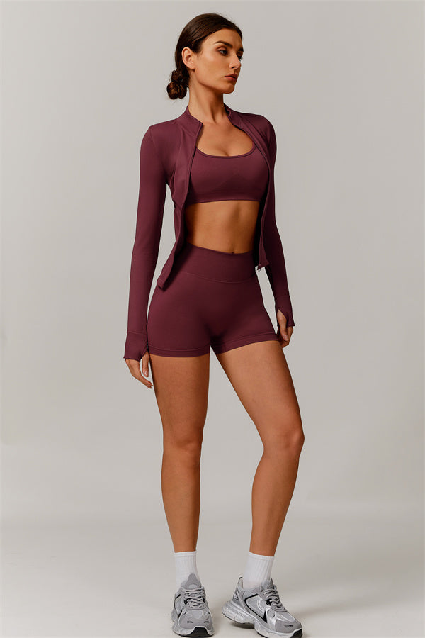 The Nova Luxe Jacket Sports Bra Shorts 3-Piece Set