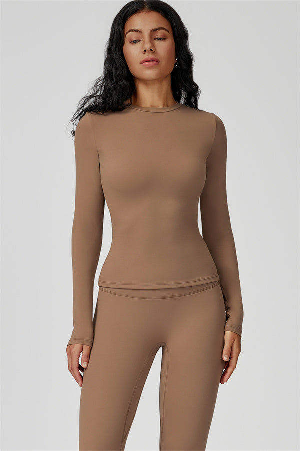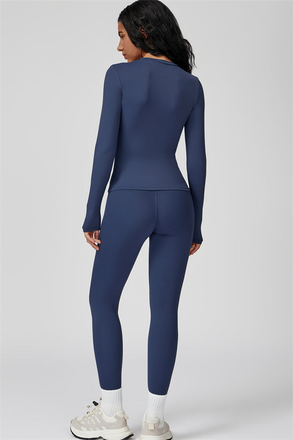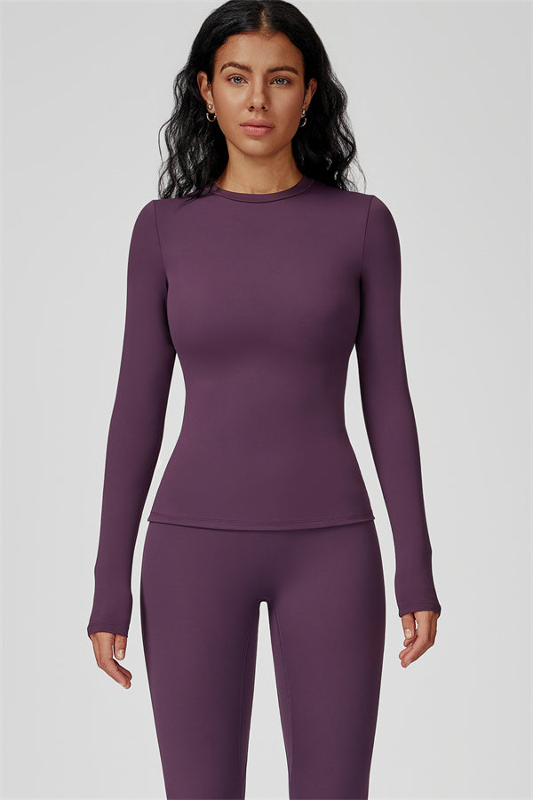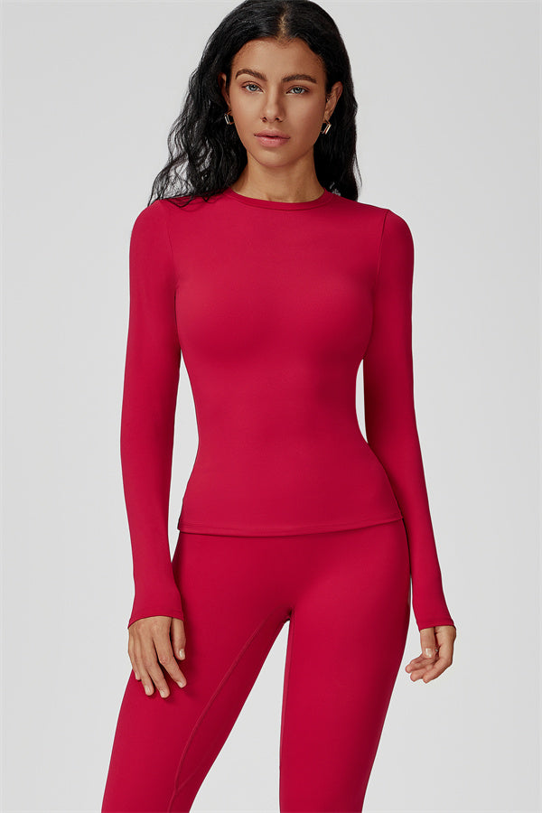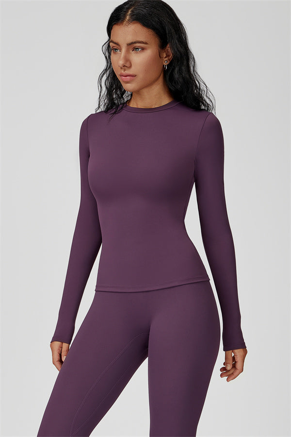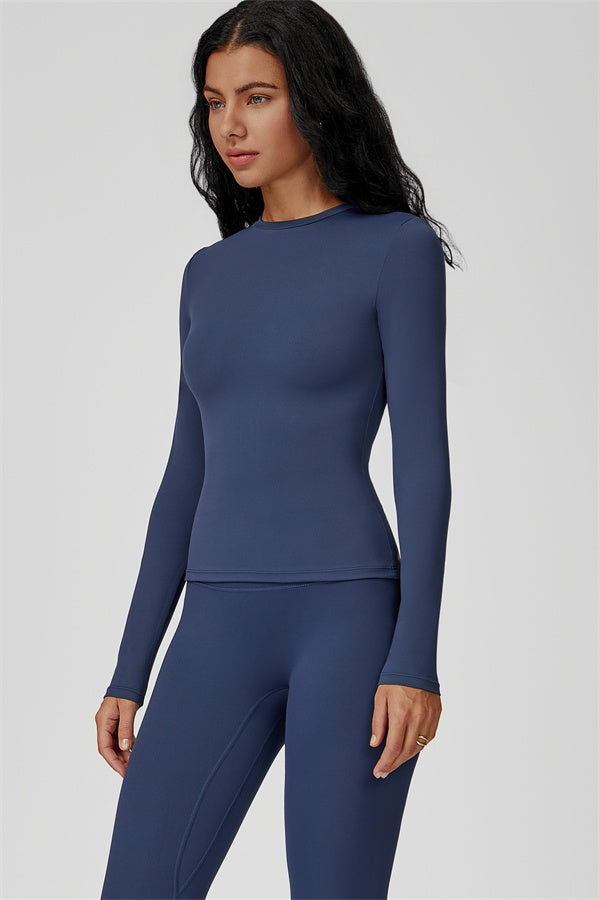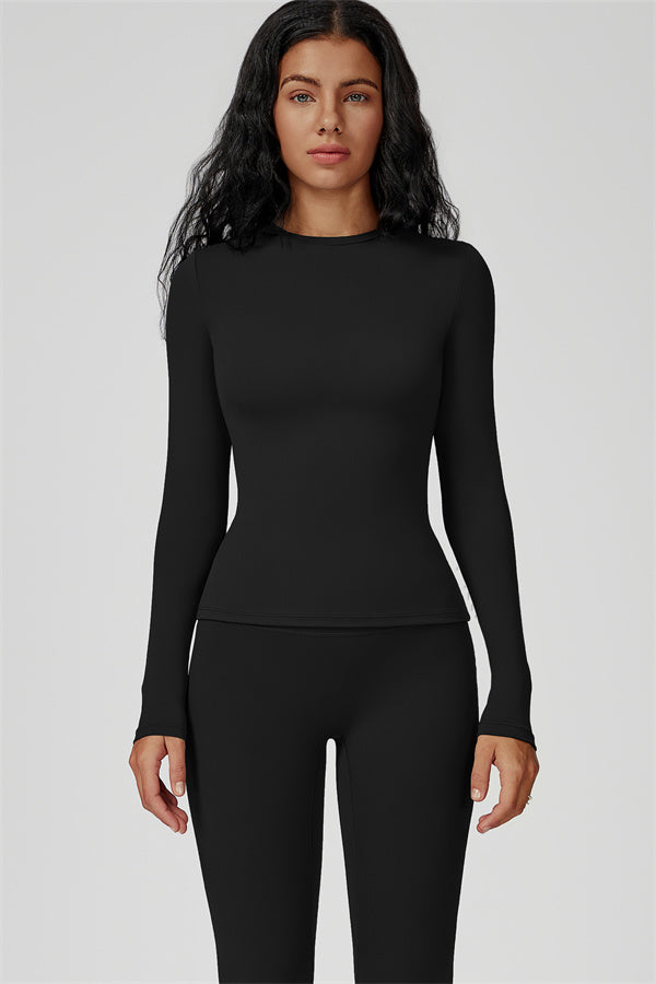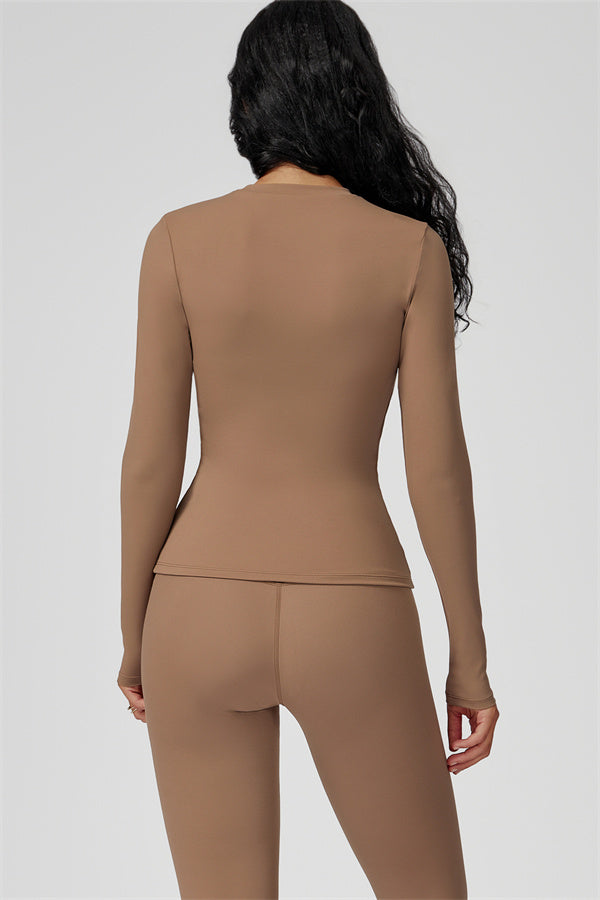 This sculpting set delivers a sleek, supportive silhouette from top to bottom. The Oasis Long Sleeve Set features a body-hugging tee and curve-enhancing leggings, perfect for training days or everyday styling with a sporty edge.