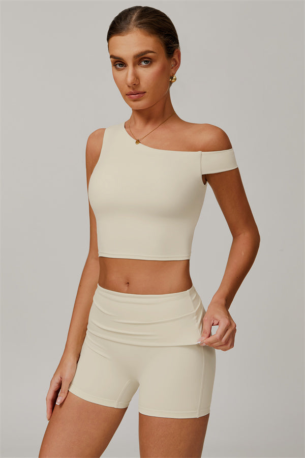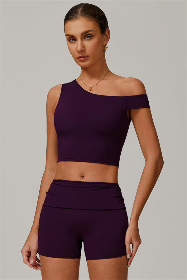 Fresh, functional, and designed to turn heads. The Pearl Set pairs a bold one-shoulder crop top with high-rise shorts to create a confident look for movement or leisure. Made with eco-friendly recycled fabric, this set flatters your figure while keeping things cool and breathable.