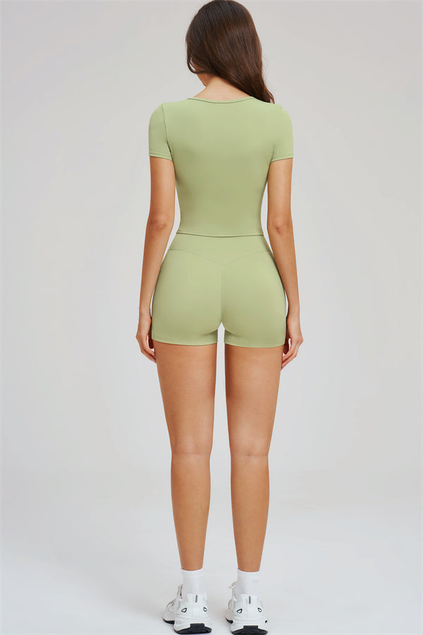 This matching set combines functionality, comfort, and flattering design for workouts, yoga sessions, or casual wear.