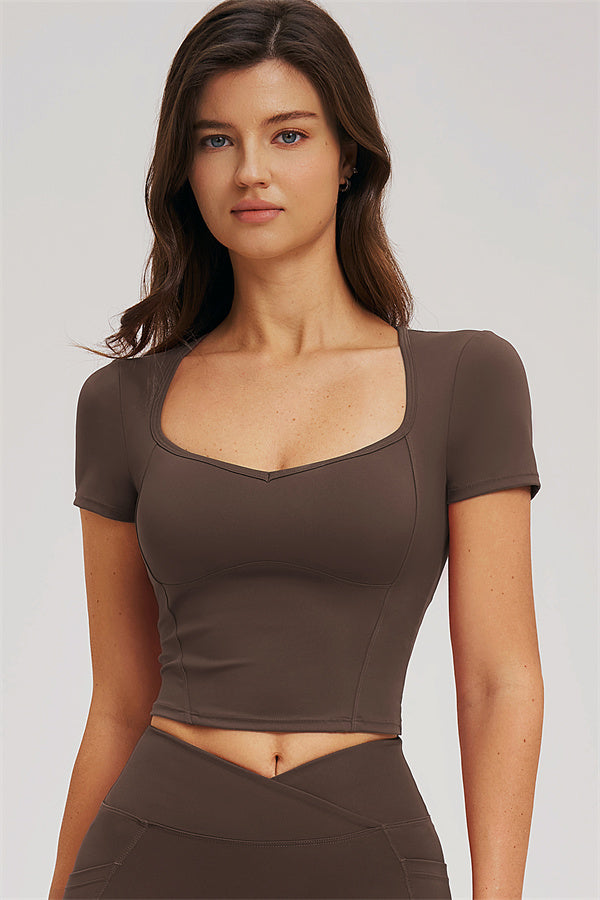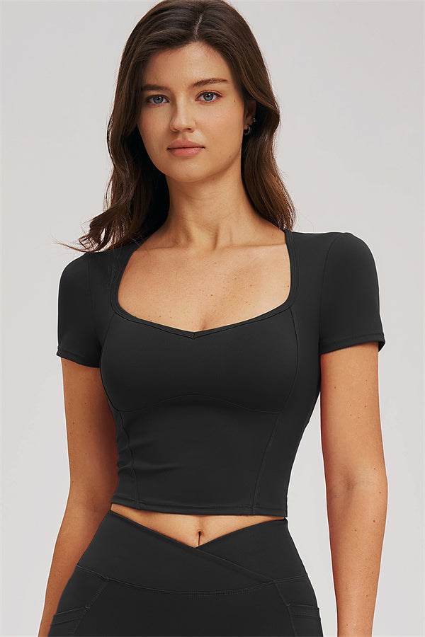 • Diamond-shaped neckline enhances collarbone lines for a flattering look
