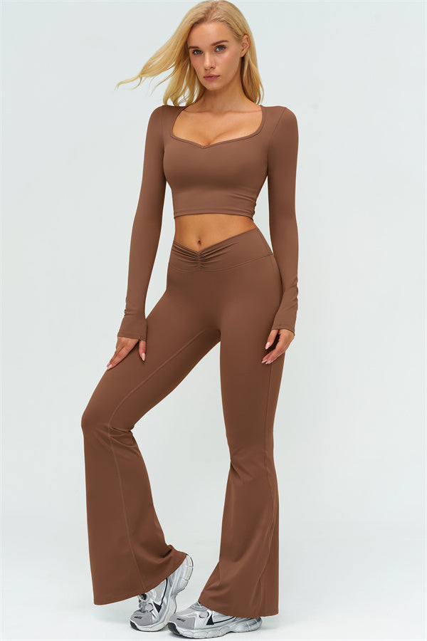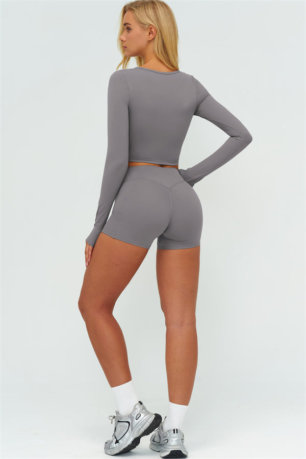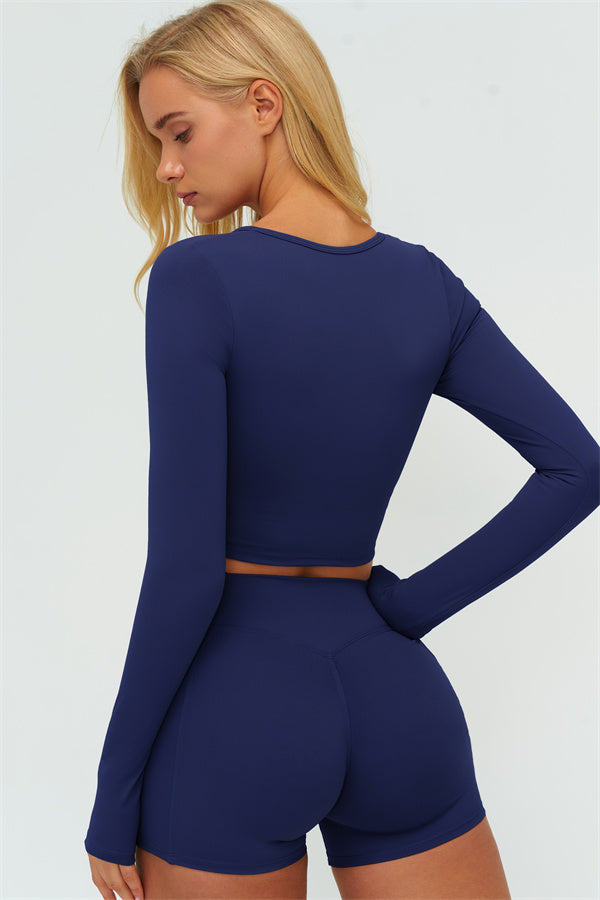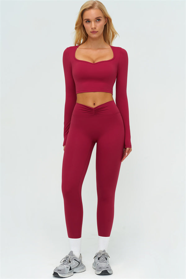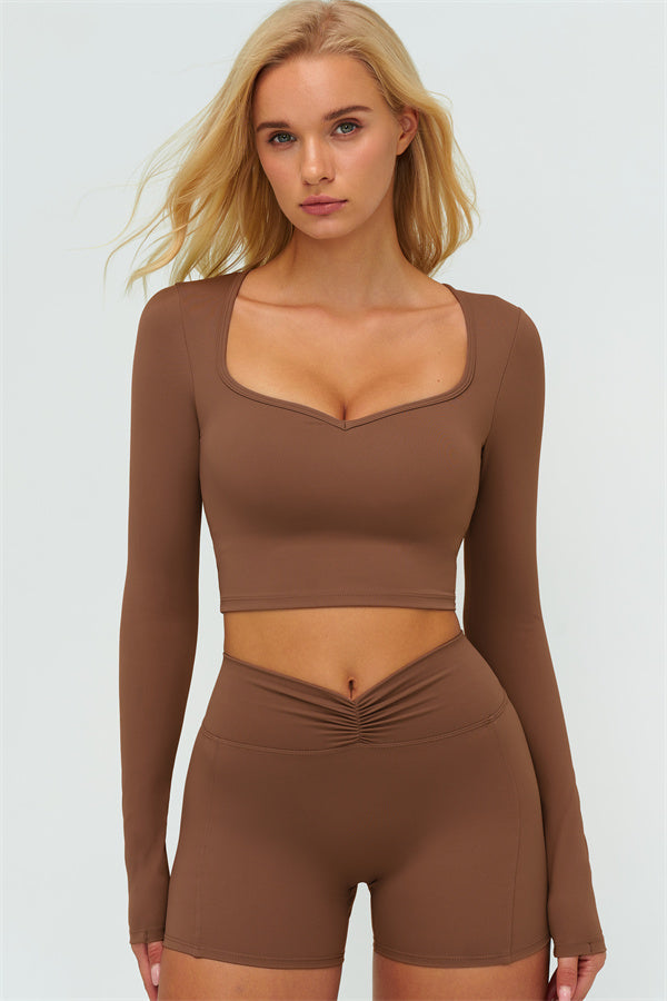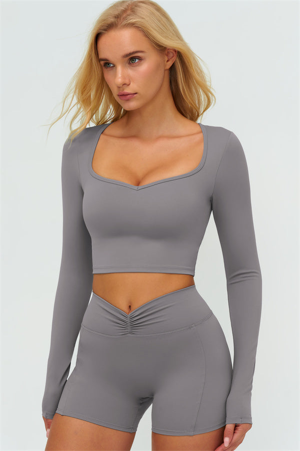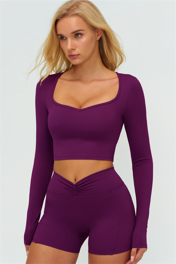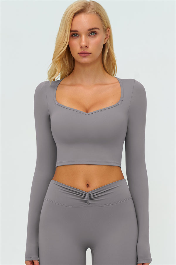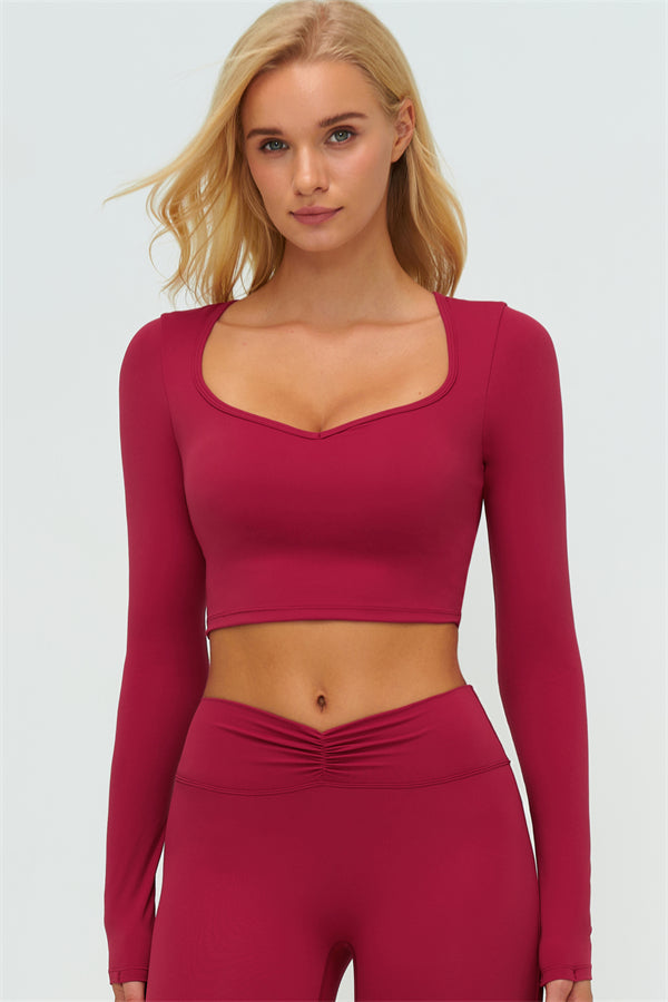 Stay stylish and supported with the Lushness Long Sleeve Crop Top. Featuring a subtle V-cutout design, it highlights your collarbones and visually elongates the neck. The removable chest pad ensures you can wear it without a bra, perfect for workouts or street style. Thumbhole cuffs keep sleeves in place and provide full hand coverage during movement.