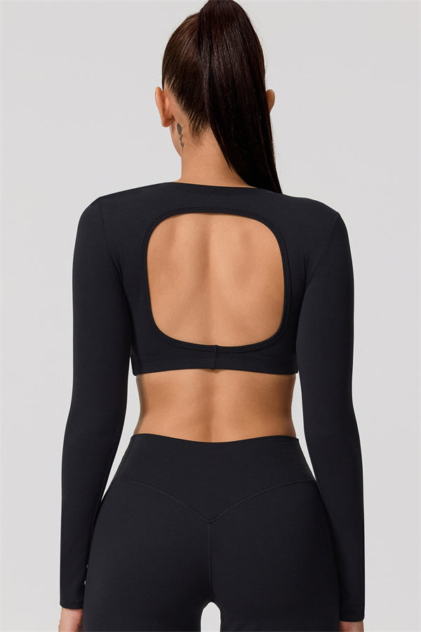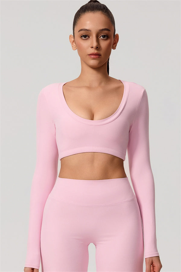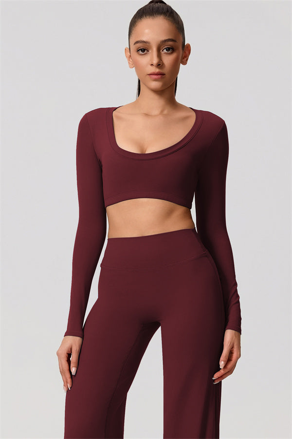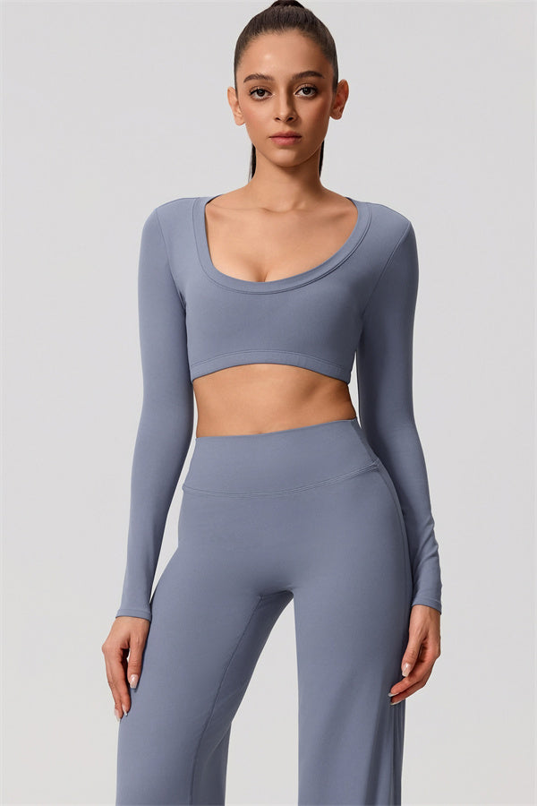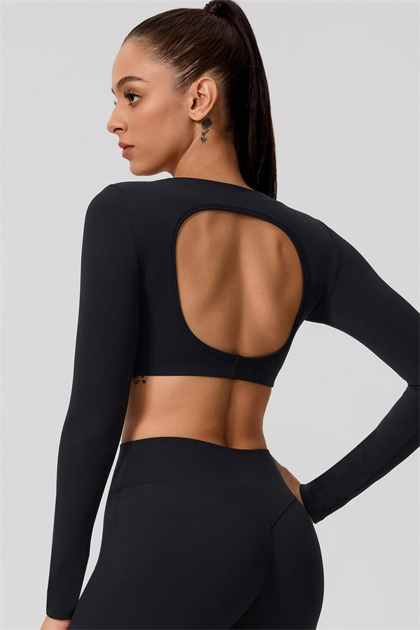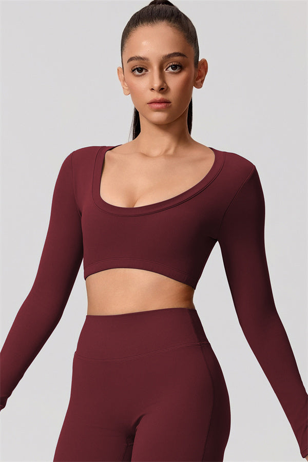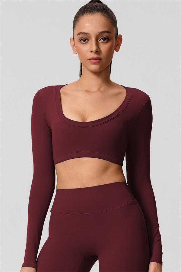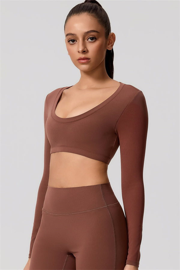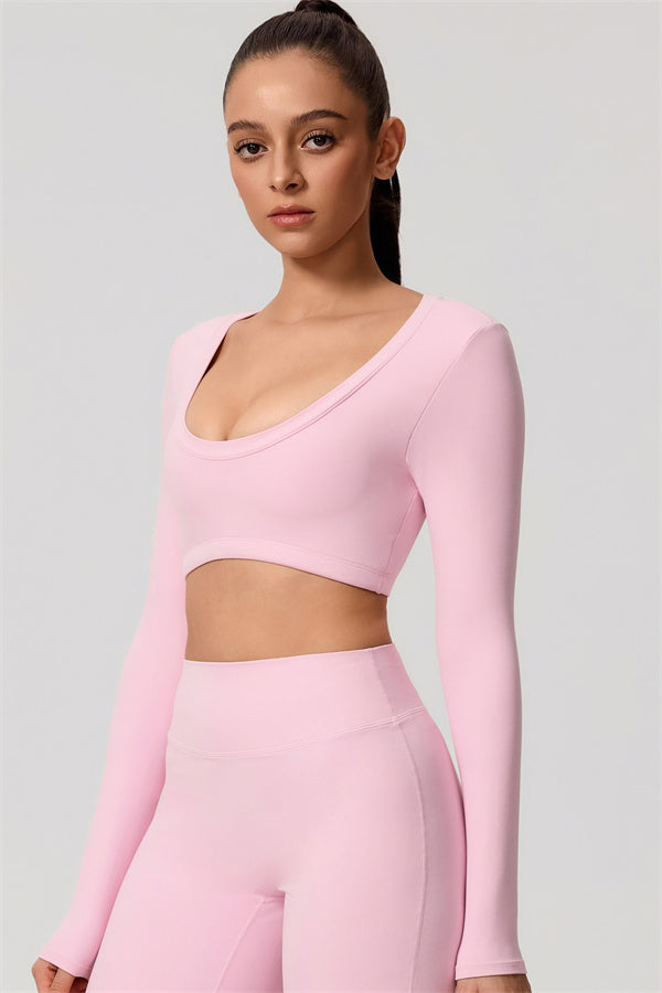 Mid-length crop with long sleeves subtly shows off your waistline