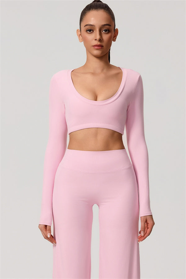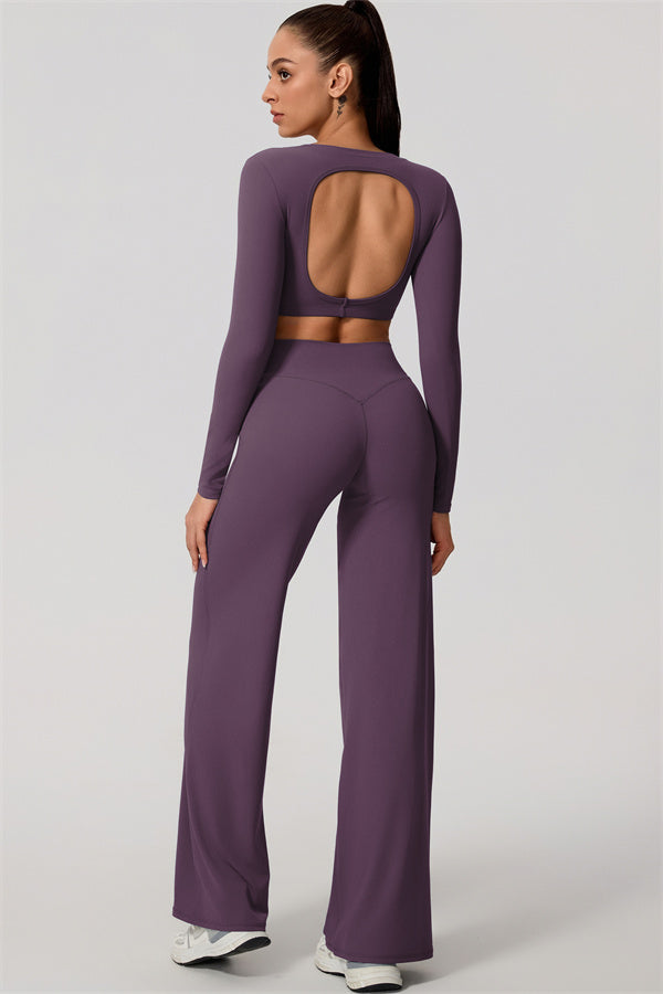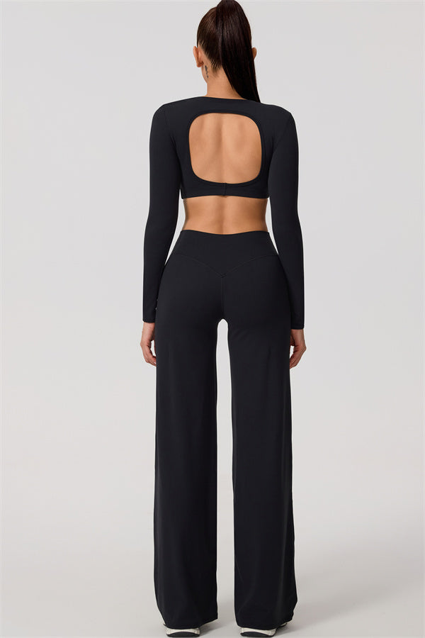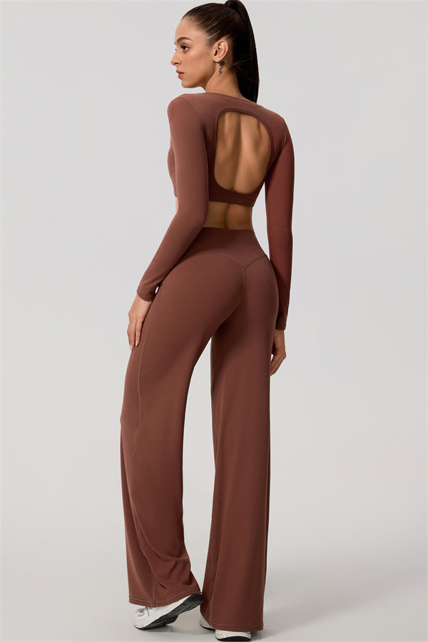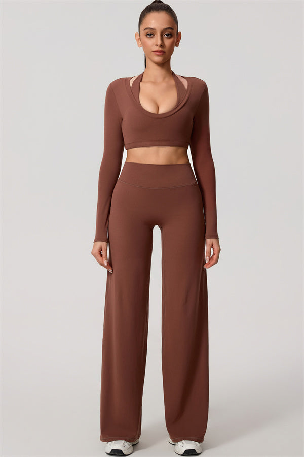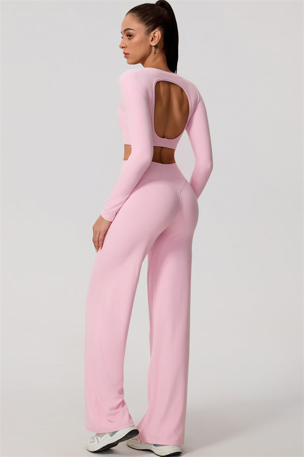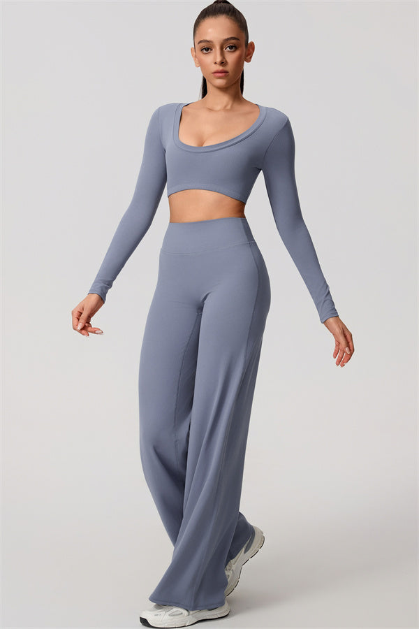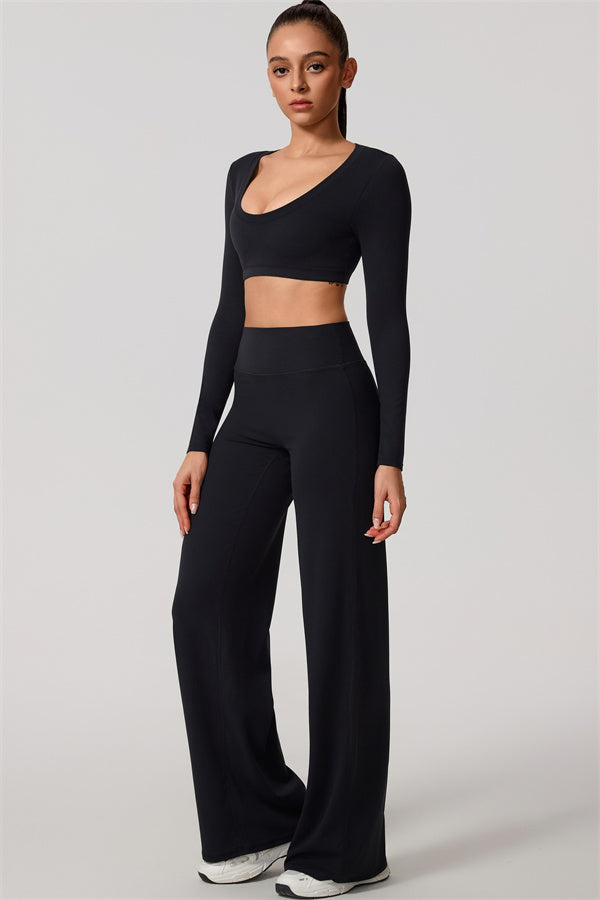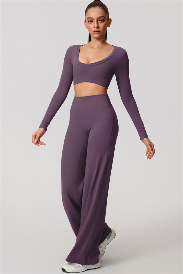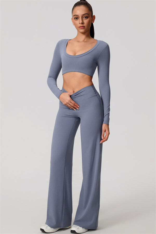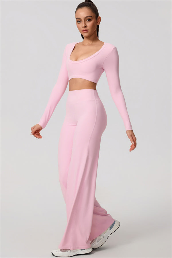 The Nestle Long Sleeve Crop Top Straight Leg Pants 2-Piece Set