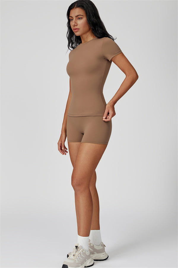 Crafted from a blend of 78% recycled nylon and 22% spandex, these shorts are both soft and flexible, providing just the right amount of stretch. The high-waisted design ensures a secure fit that won't roll down or shift during movement, so you can focus on your workout without distractions.
