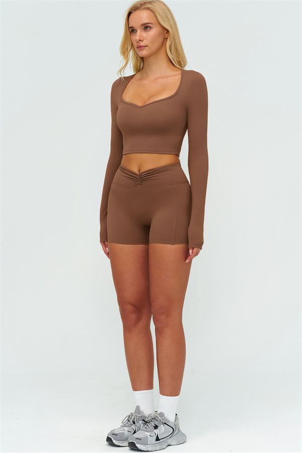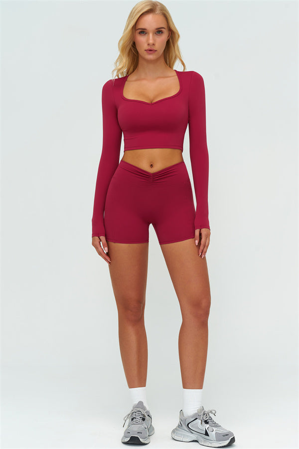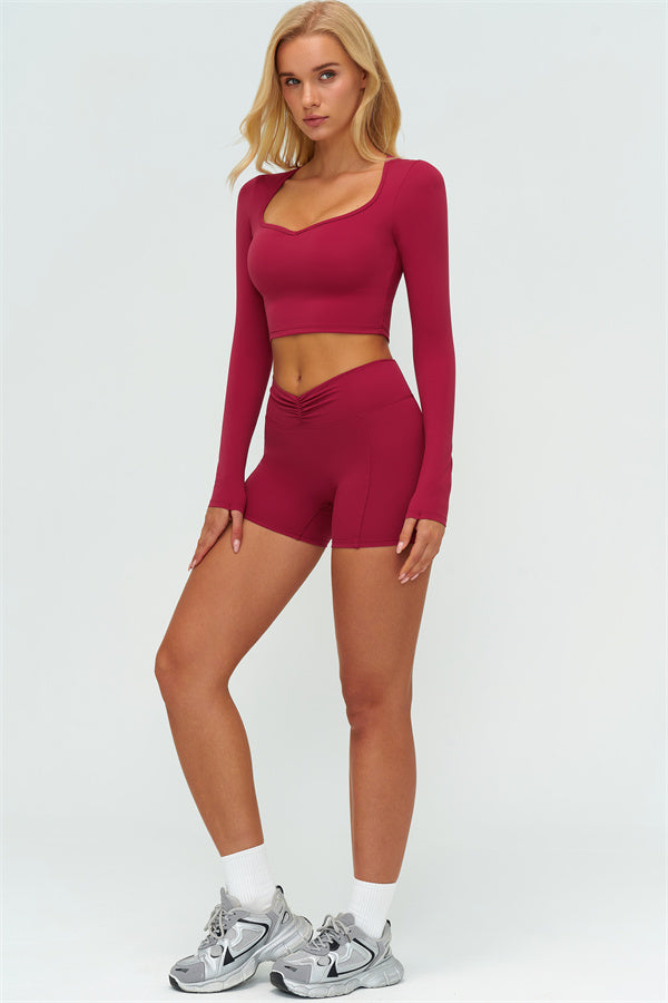 Designed for secure support and sculpting comfort, the Lushness Shorts feature a high-waist pleated front that hugs the waist and smooths the tummy without rolling or slipping. The enhanced back seam highlights a full, rounded shape, while the short-length cut provides better coverage and reduced friction during equipment-based workouts.