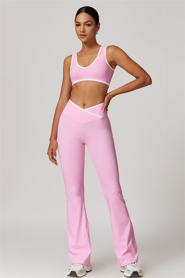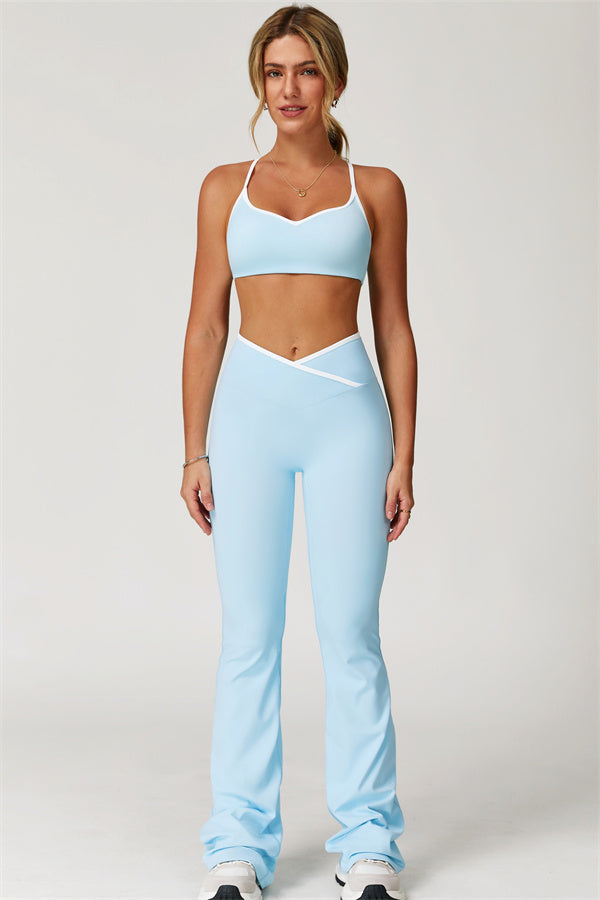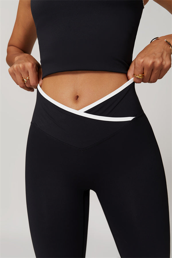 Featuring a dynamic design that adds a touch of flair to your fitness attire. The unique circular cross-waist ensures a secure fit, preventing any rolling or slipping during your activities.