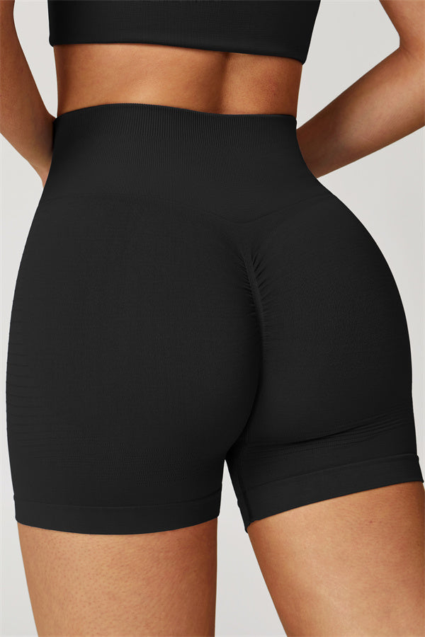These shorts are designed to enhance your shape and provide a flattering, sculpted fit. The ribbed waistband gently cinches your waist, offering a slimming effect while ensuring a secure and comfortable fit. The curved jacquard pattern along the shorts highlights and supports the hips, giving your backside a fuller, rounder look with the beautiful booty line design.
