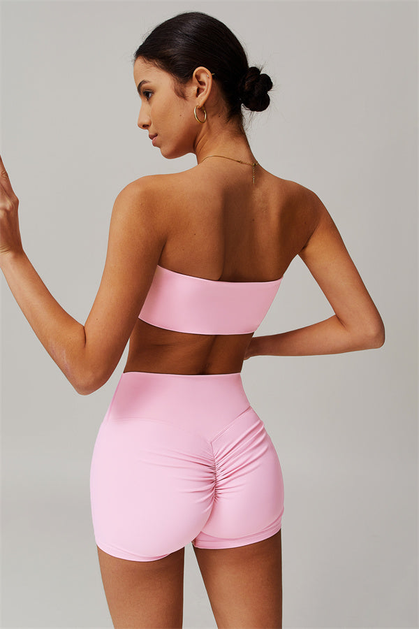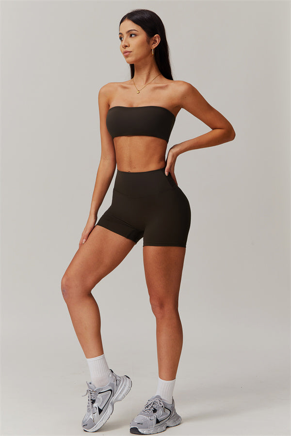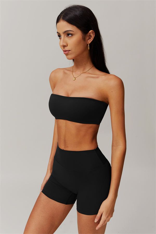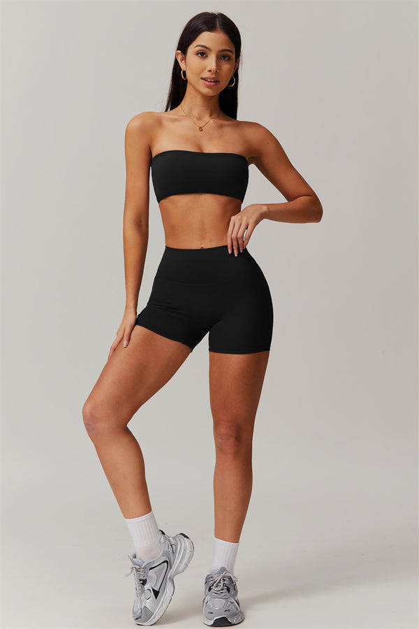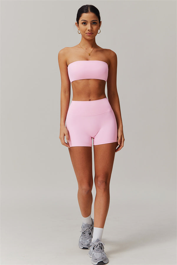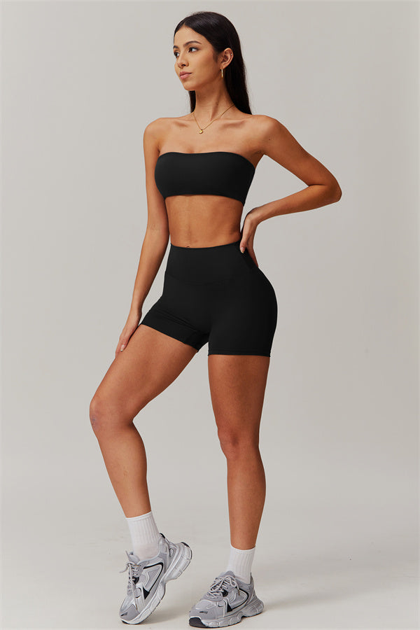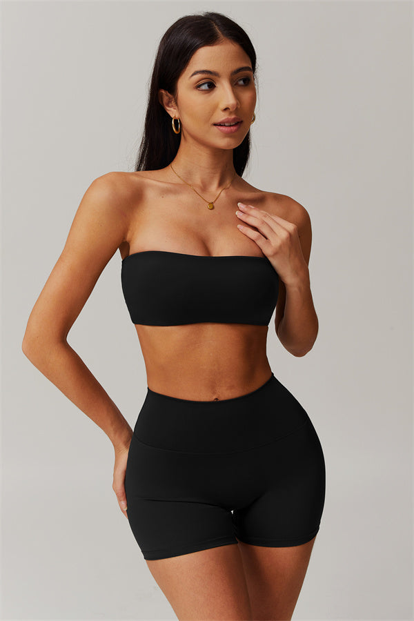Stay stylish and supported with this matching set, featuring a strapless sports bra and sleek shorts that deliver on both form and function.
