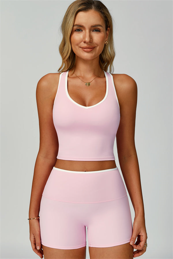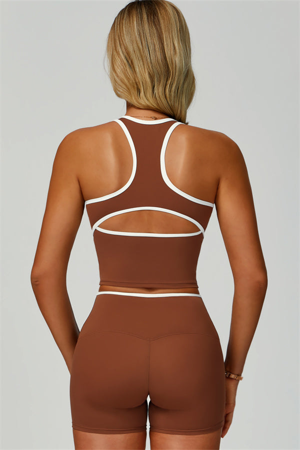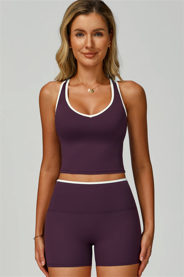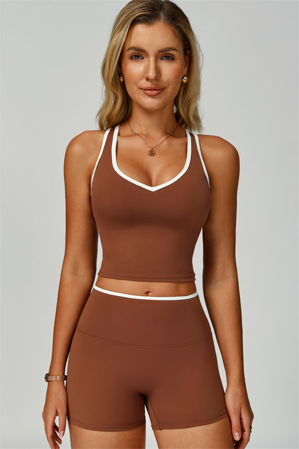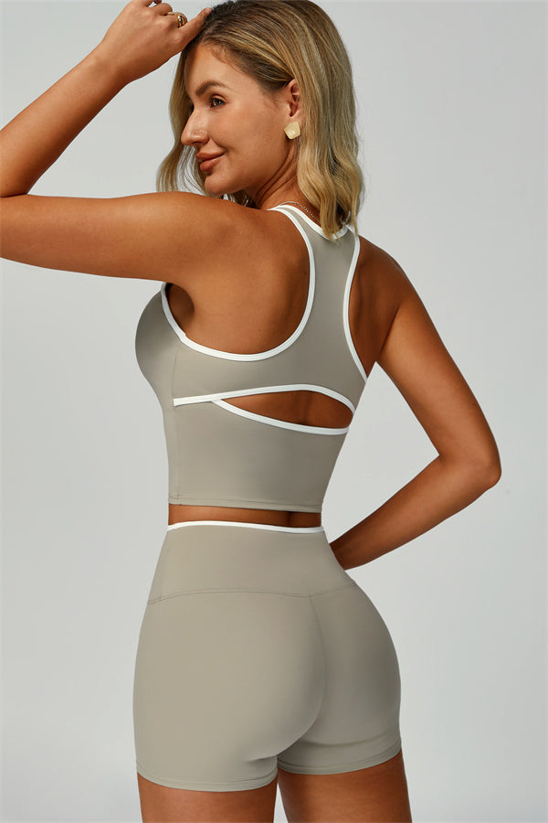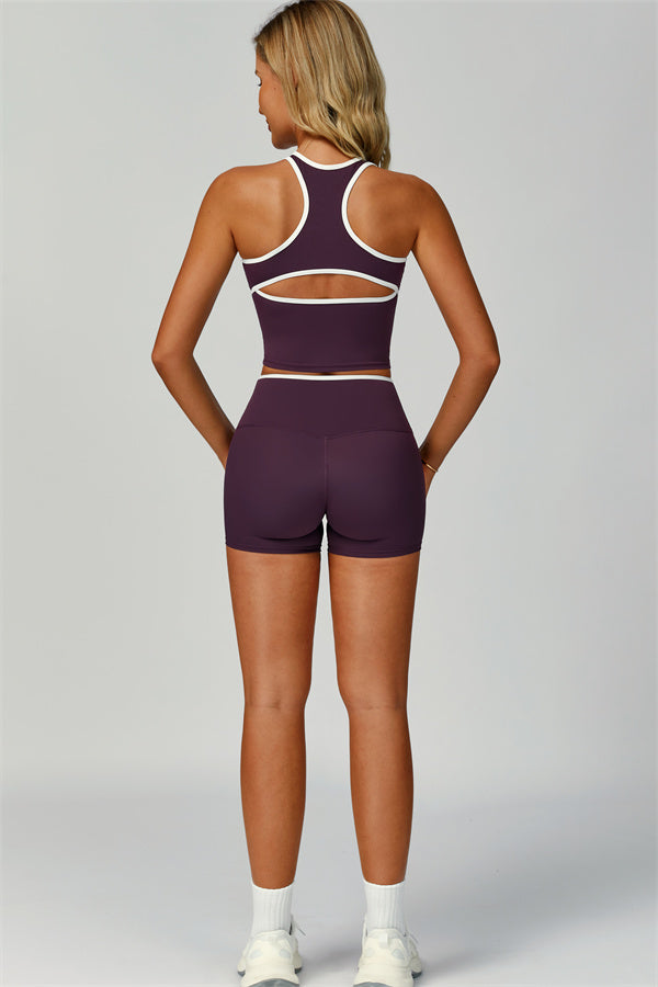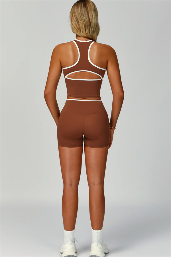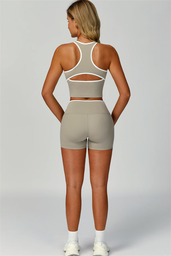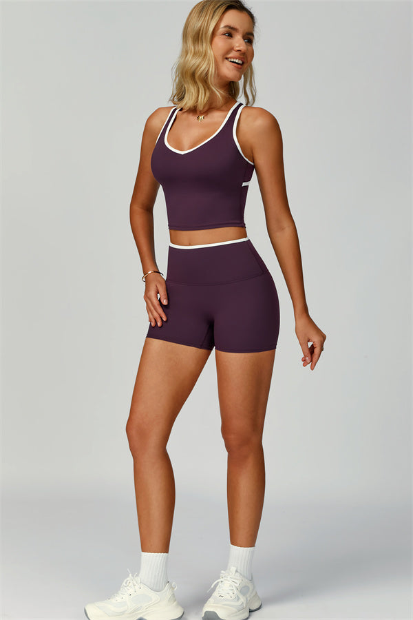 Stay cool and confident with The Quest Set, a perfect blend of style and performance. This matching set features a sleek V-neck tank with striking back details and high-waisted shorts designed to sculpt and support.