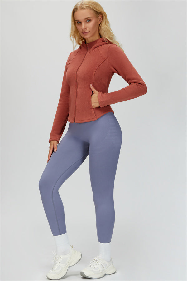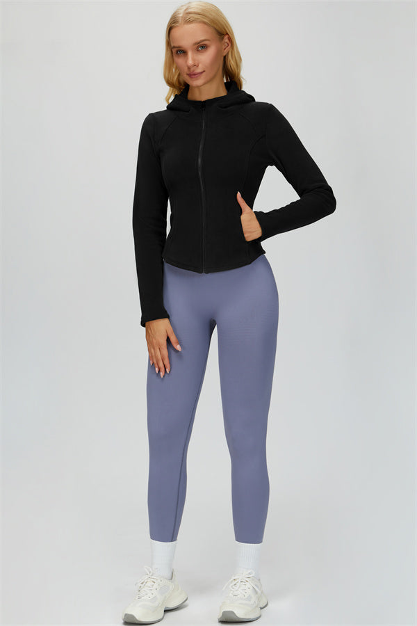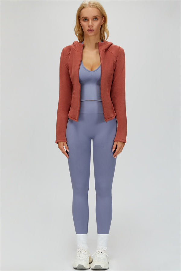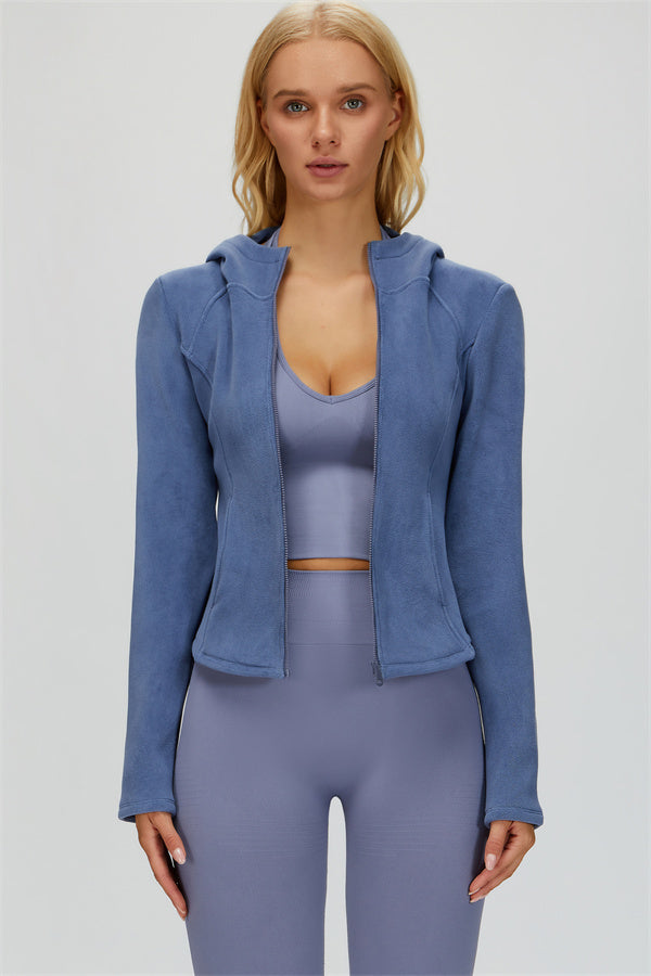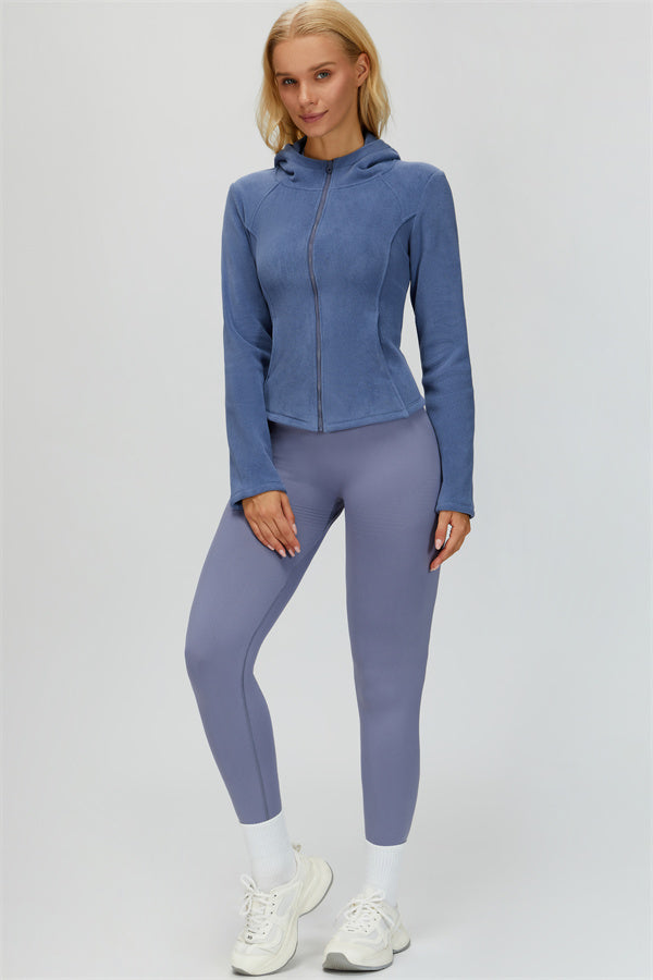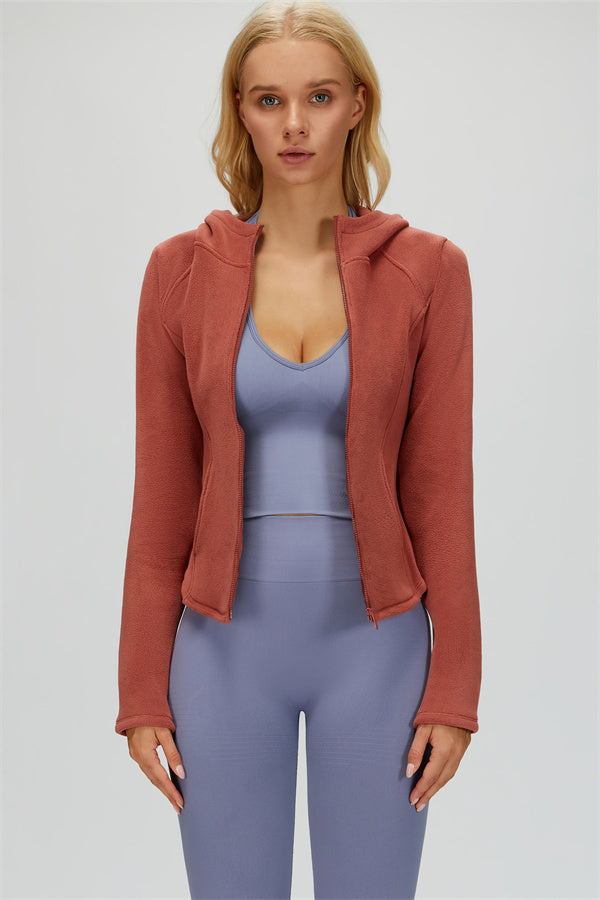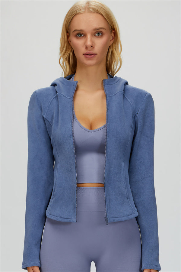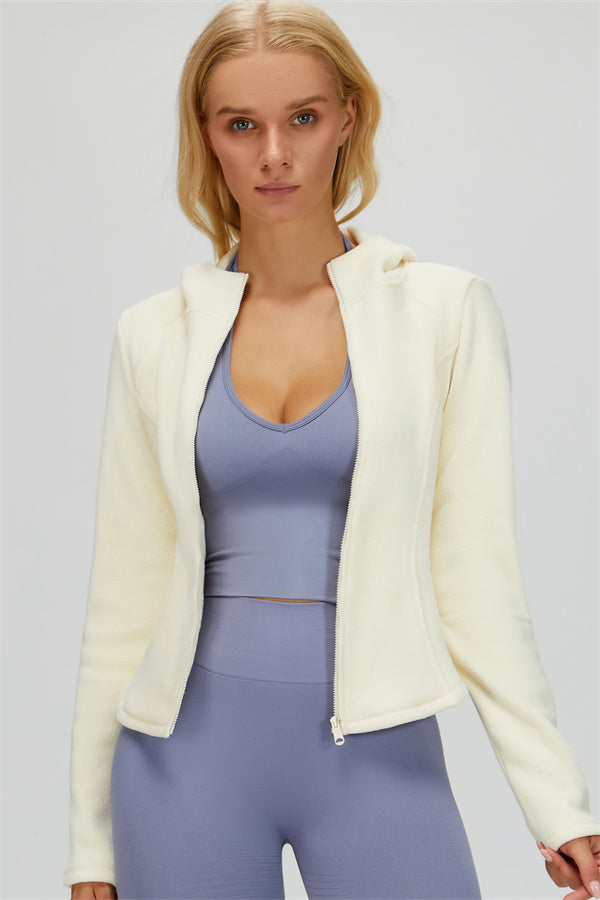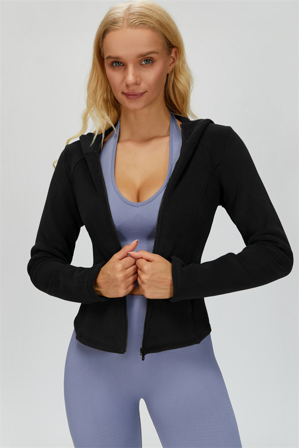 Perfect for layering during workouts or casual outings, this jacket combines comfort, function, and a flattering fit.