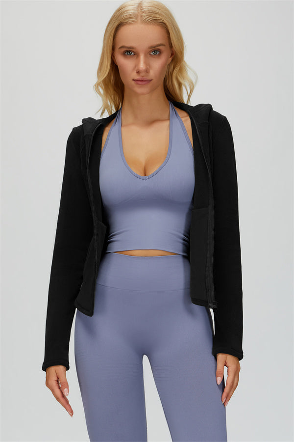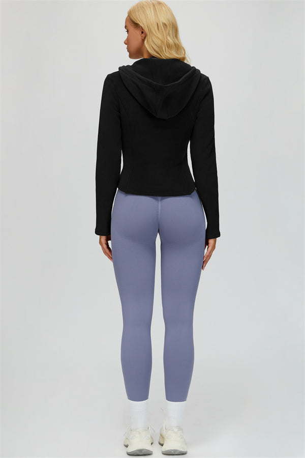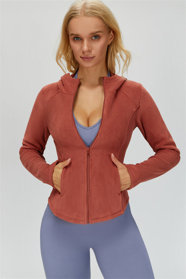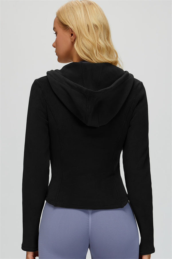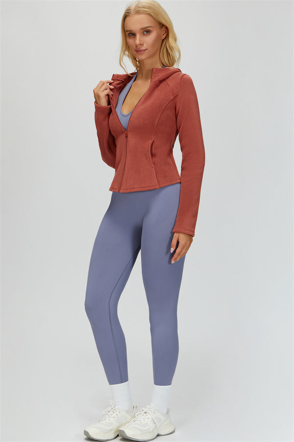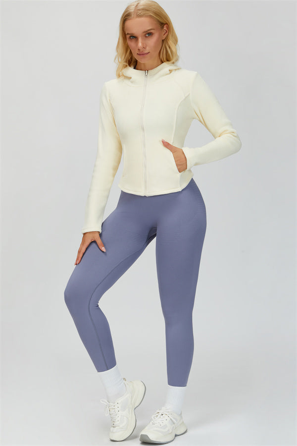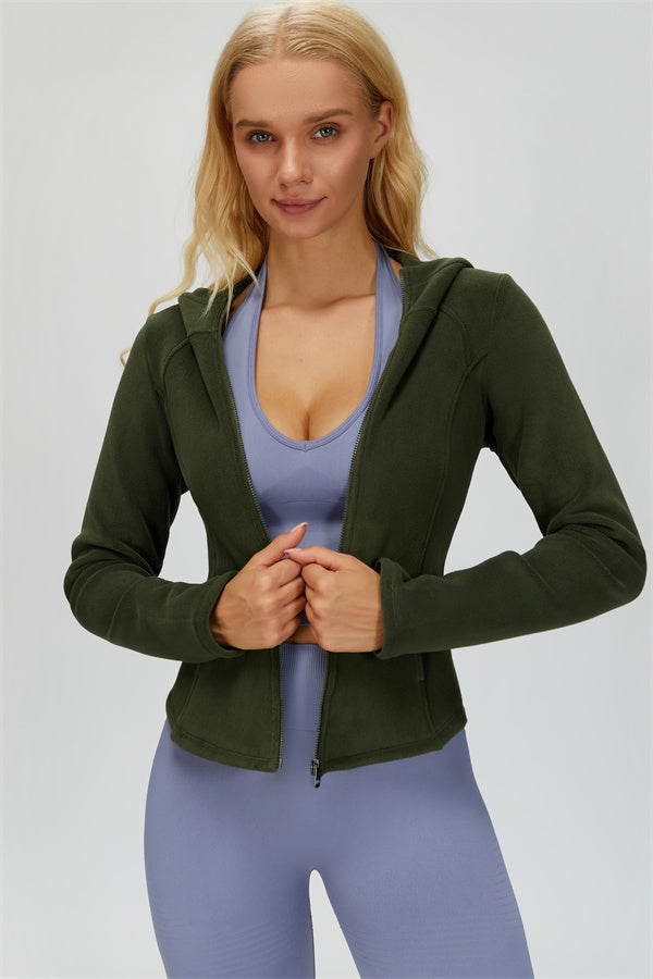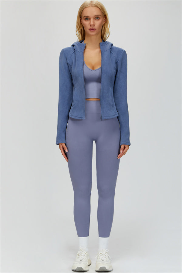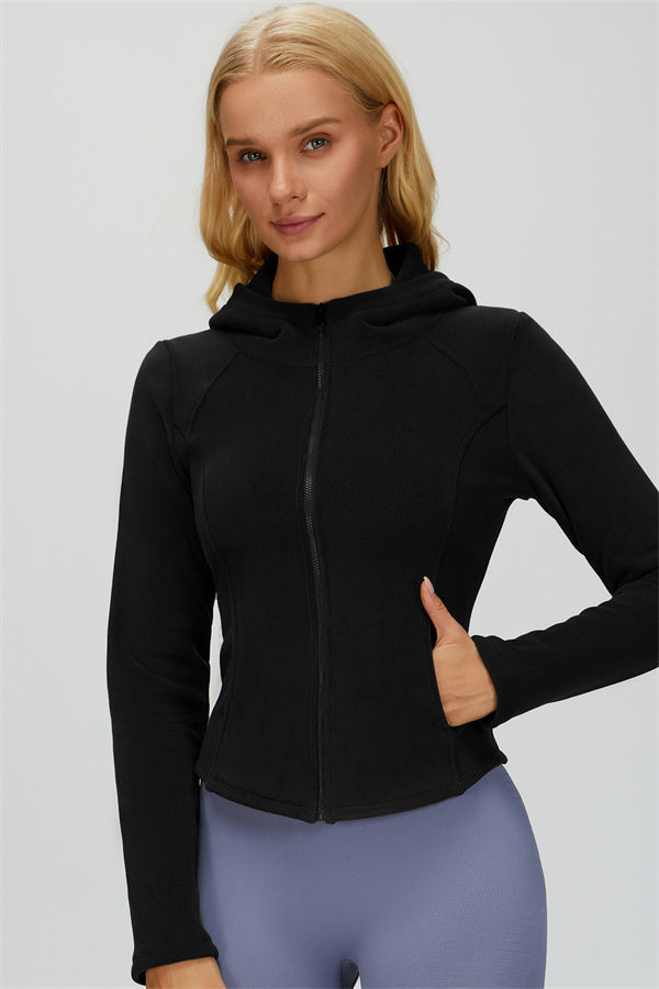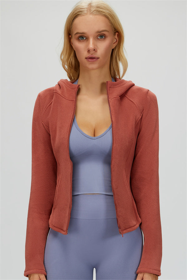 Perfect for layering during workouts or casual outings, this jacket combines comfort, function, and a flattering fit.