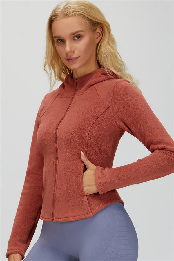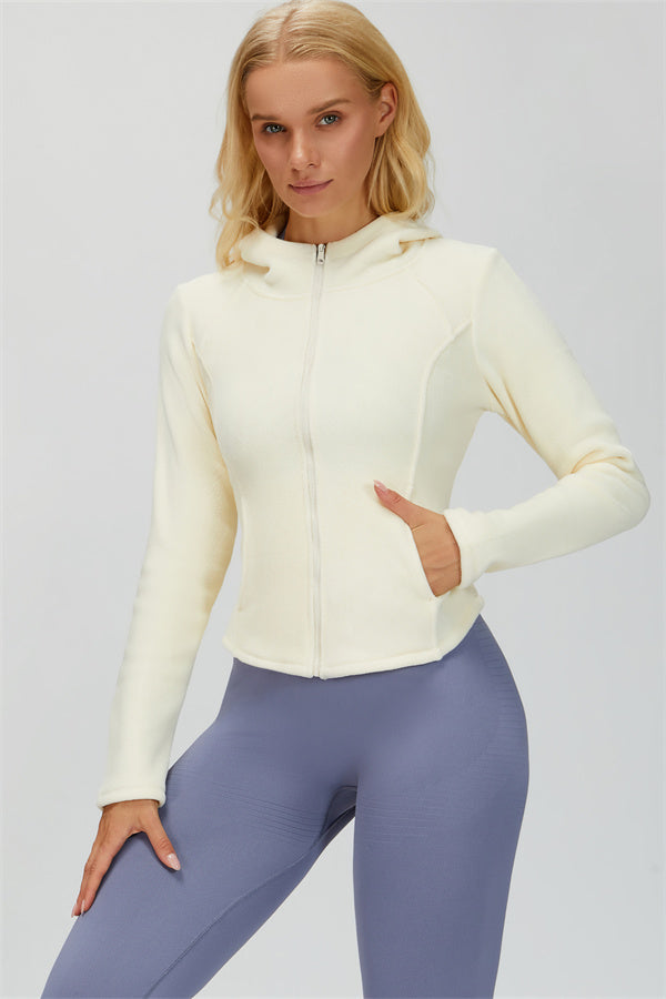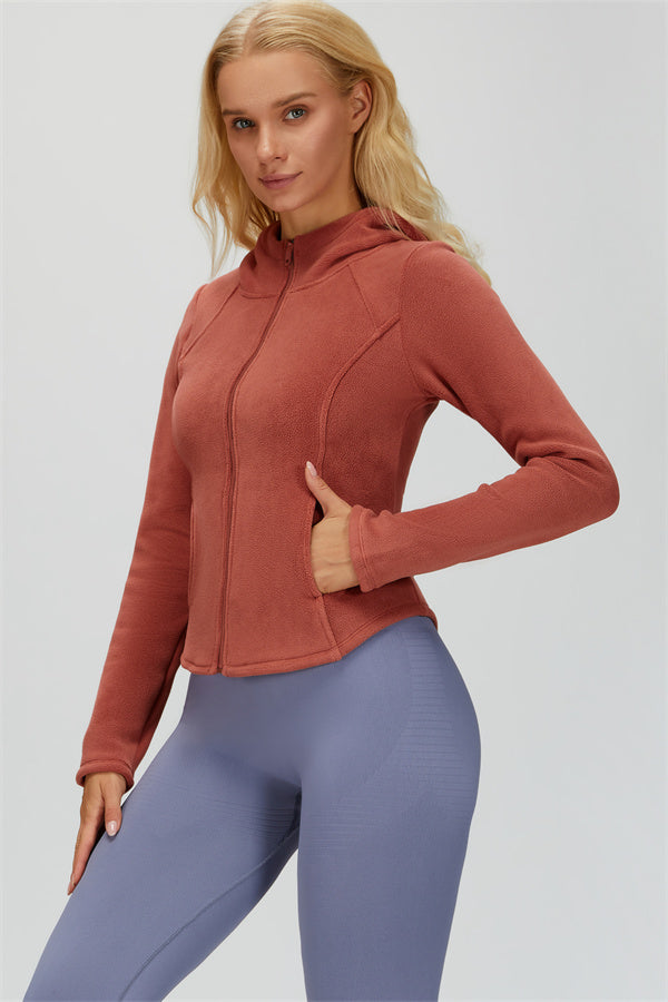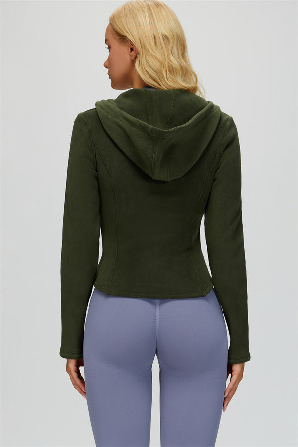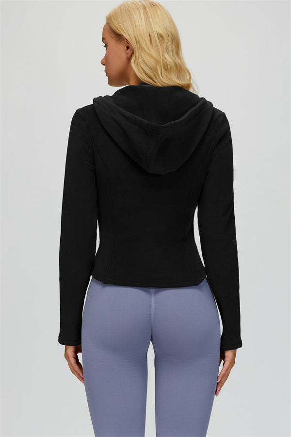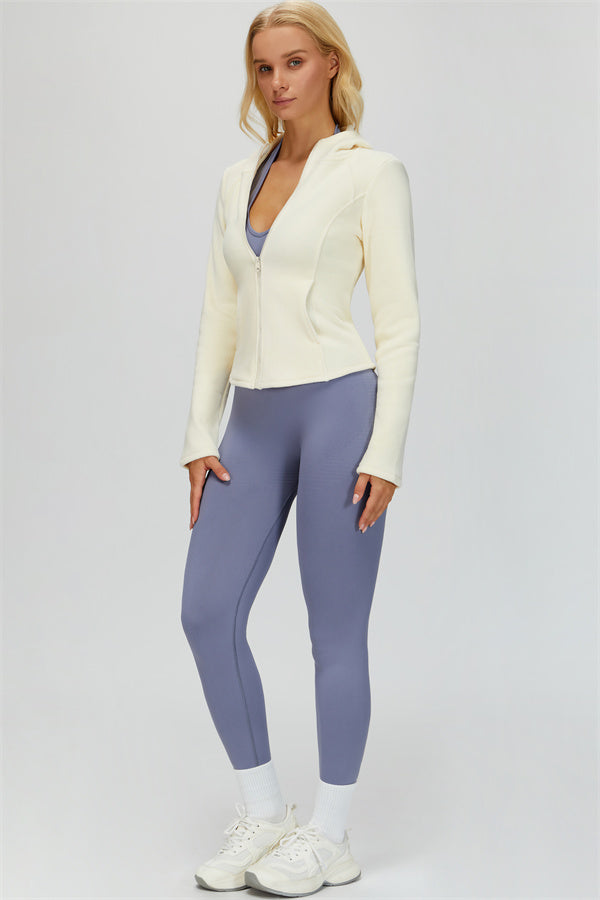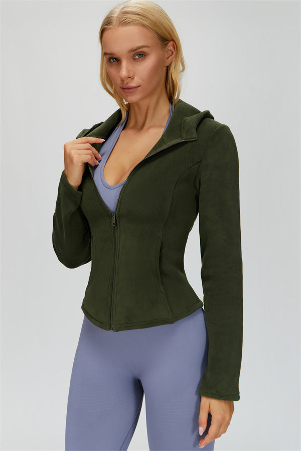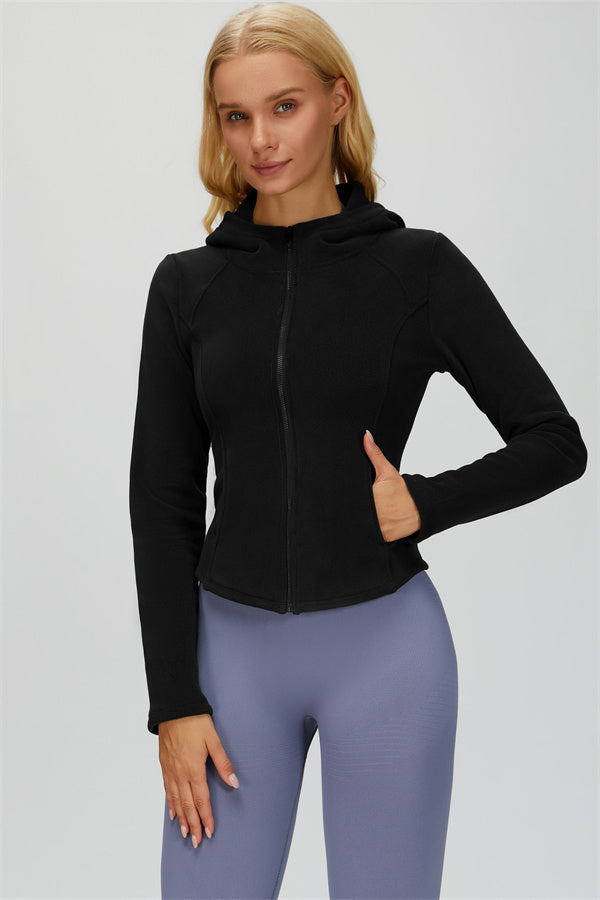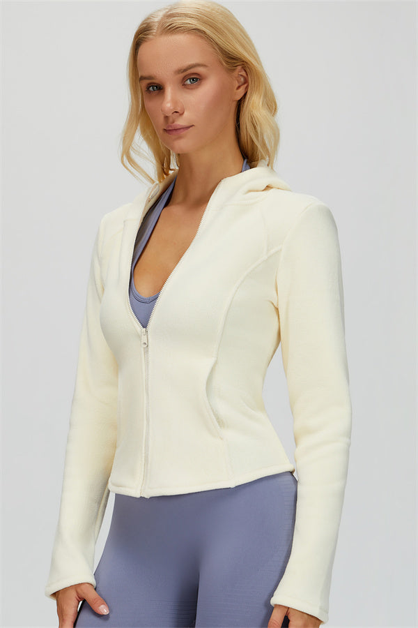 Perfect for layering during workouts or casual outings, this jacket combines comfort, function, and a flattering fit.