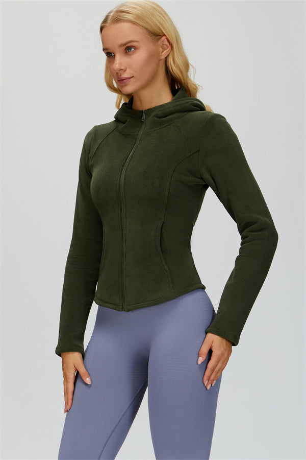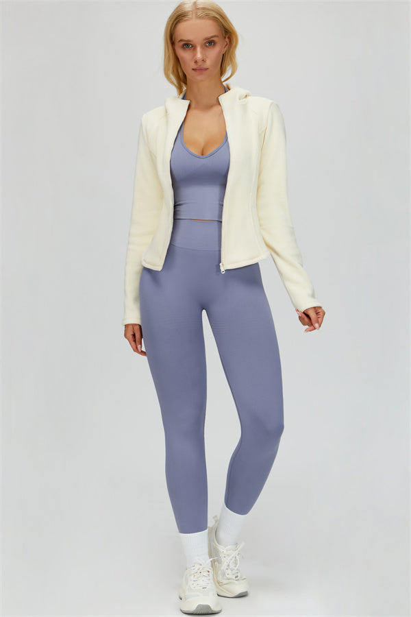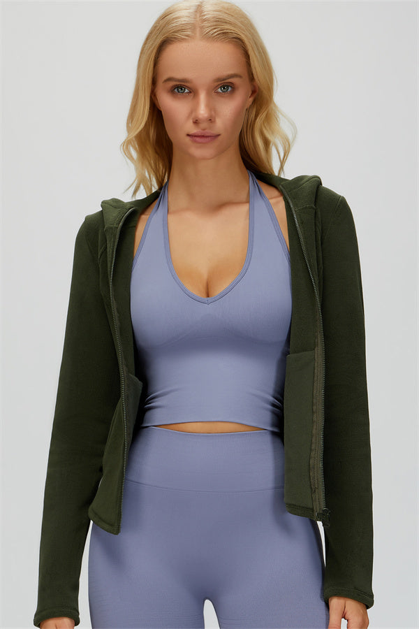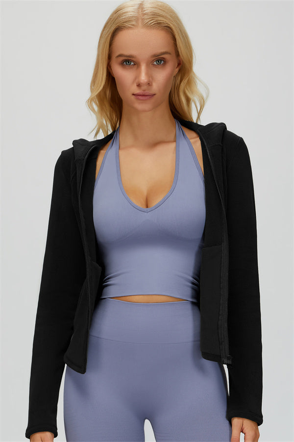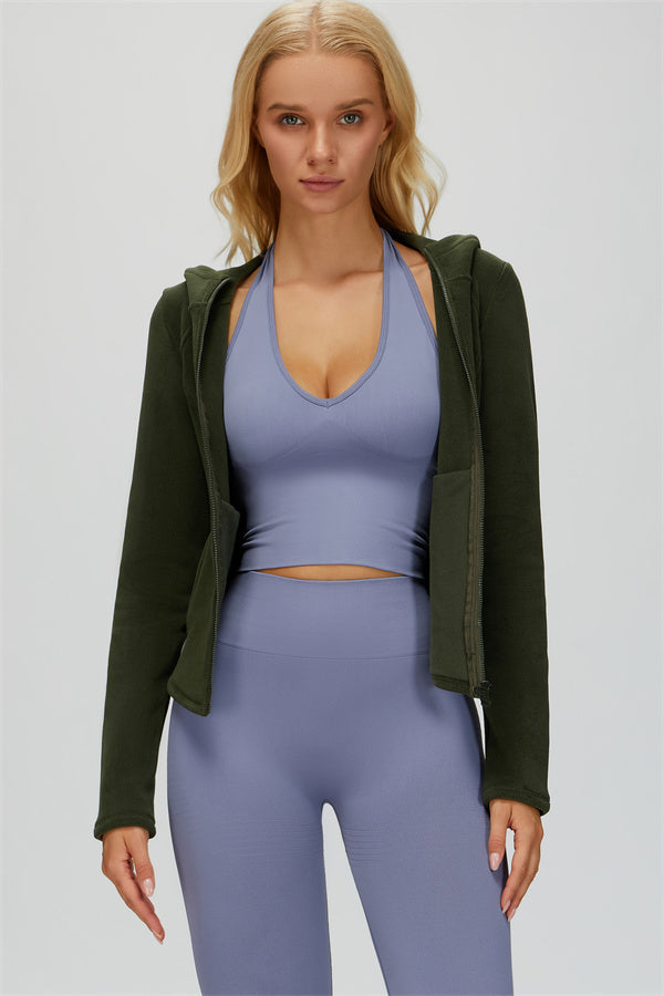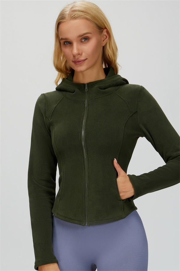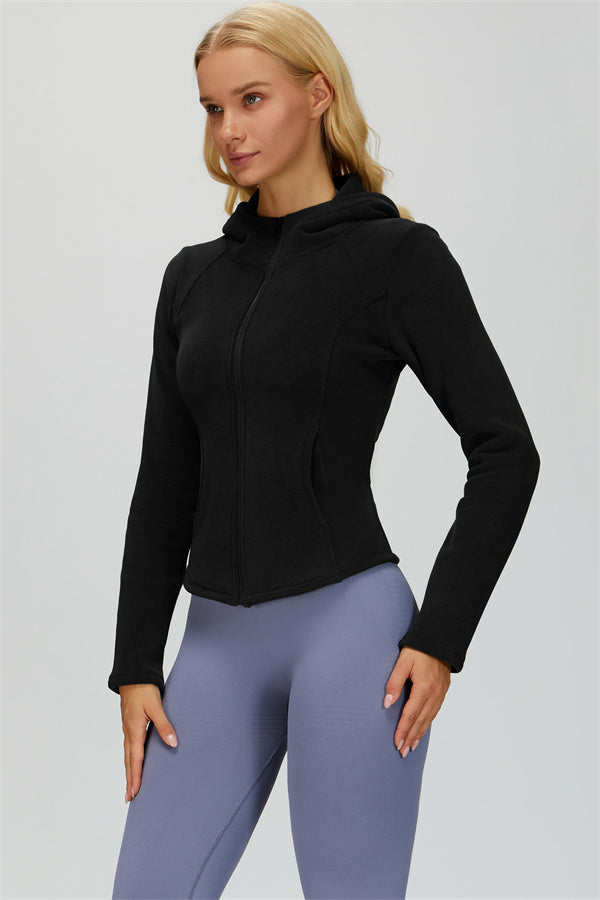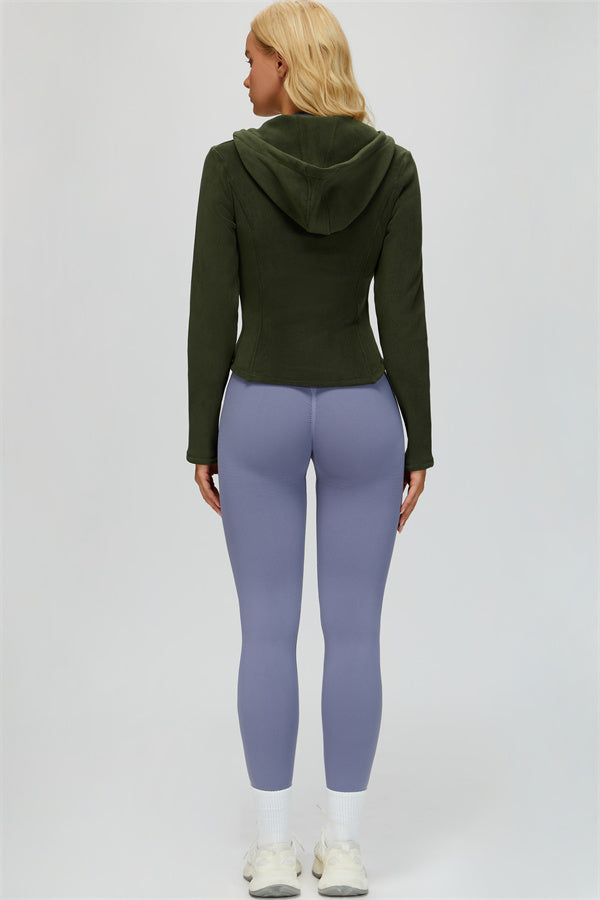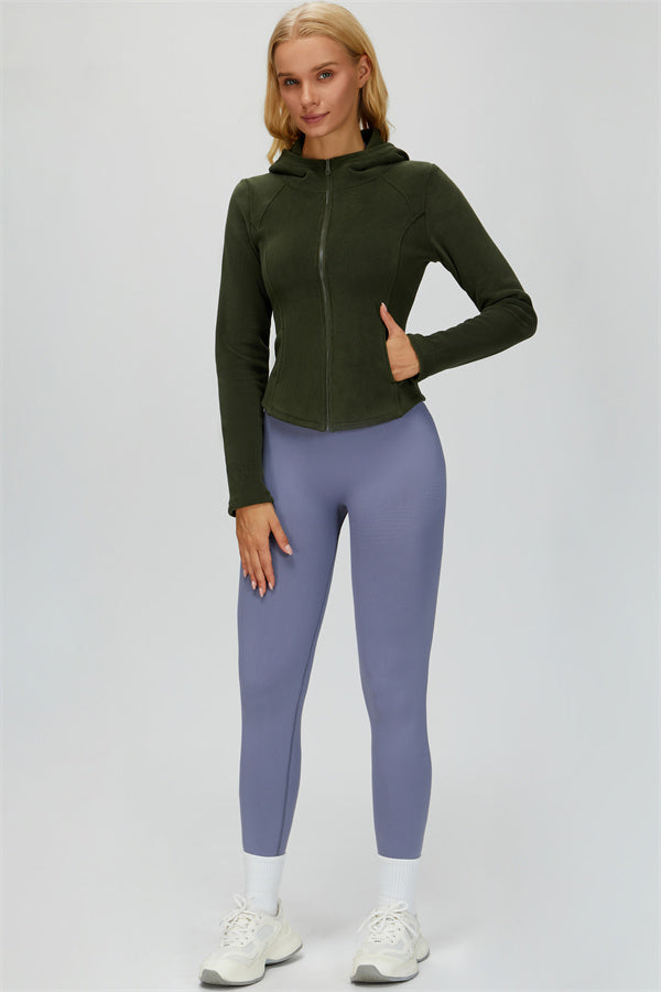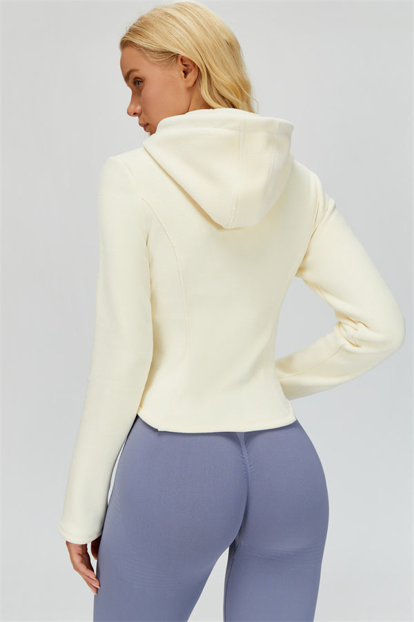 Perfect for layering during workouts or casual outings, this jacket combines comfort, function, and a flattering fit.