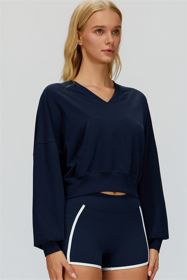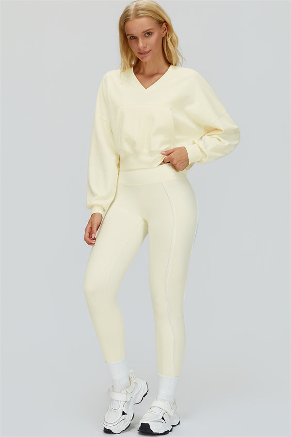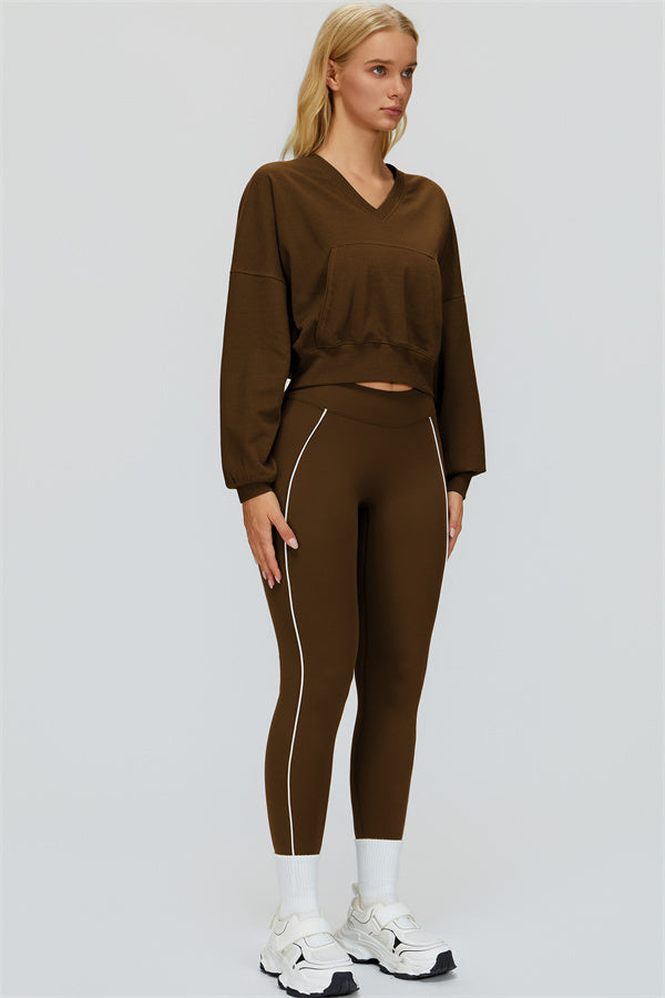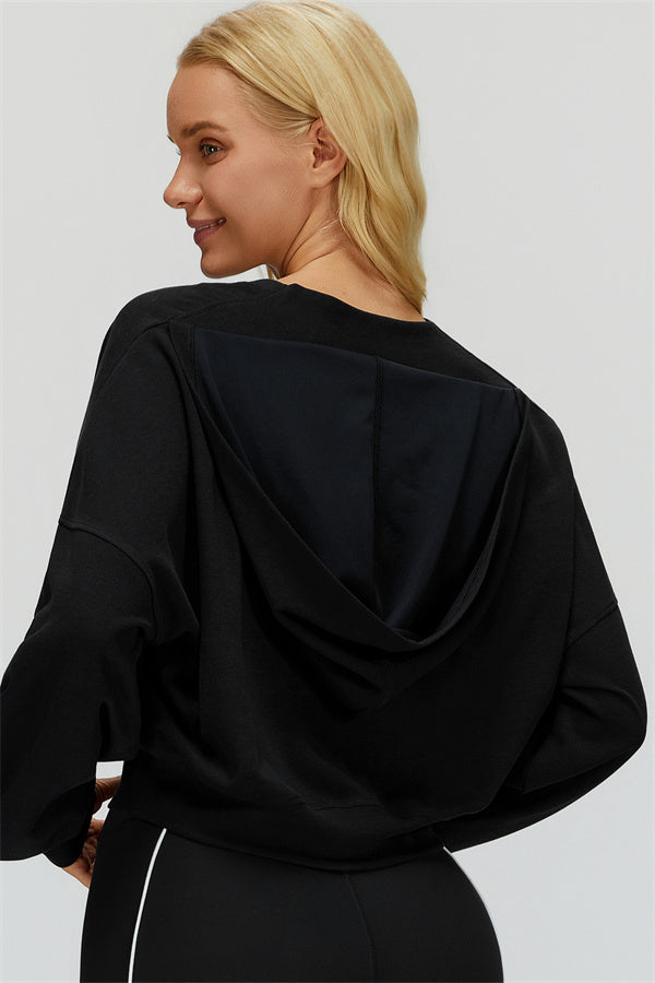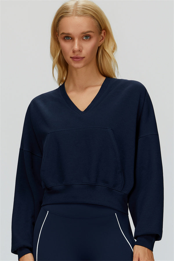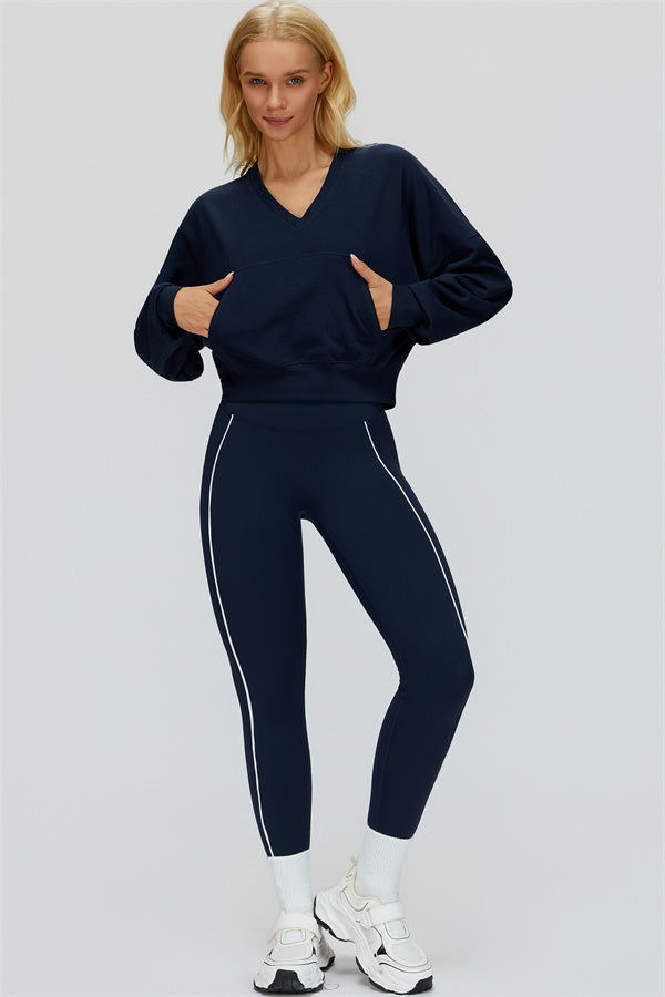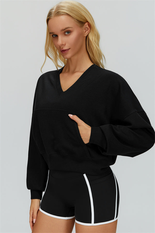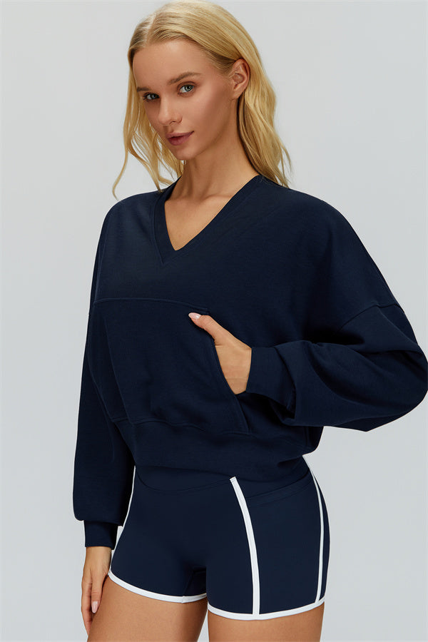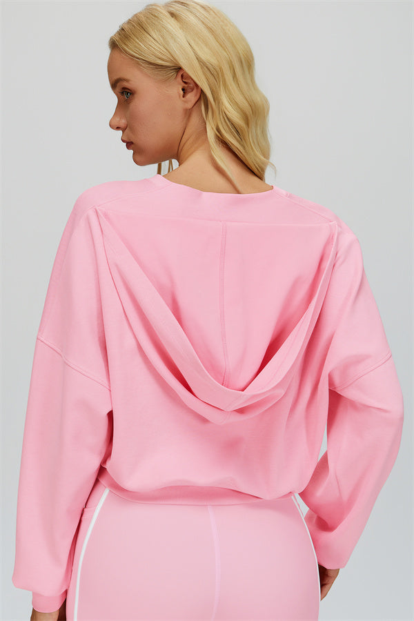 Stay cozy and stylish in The Whisper V-Neck Hoodie, designed for both comfort and flattering fit.