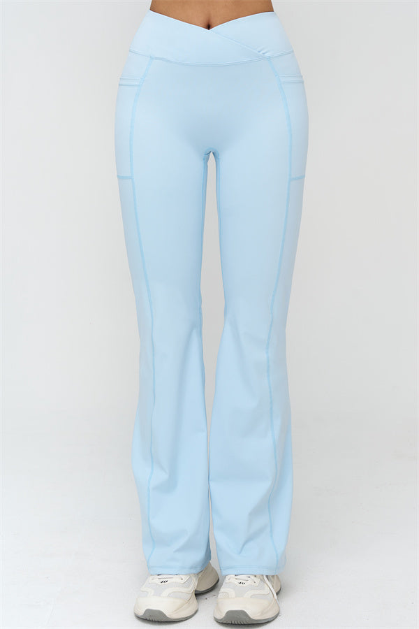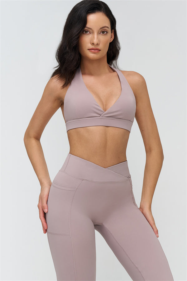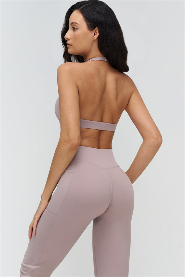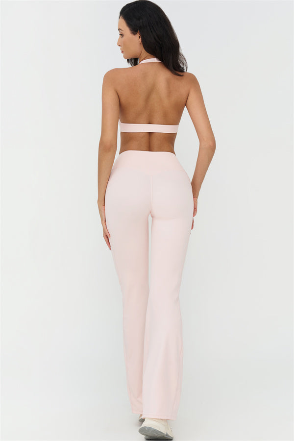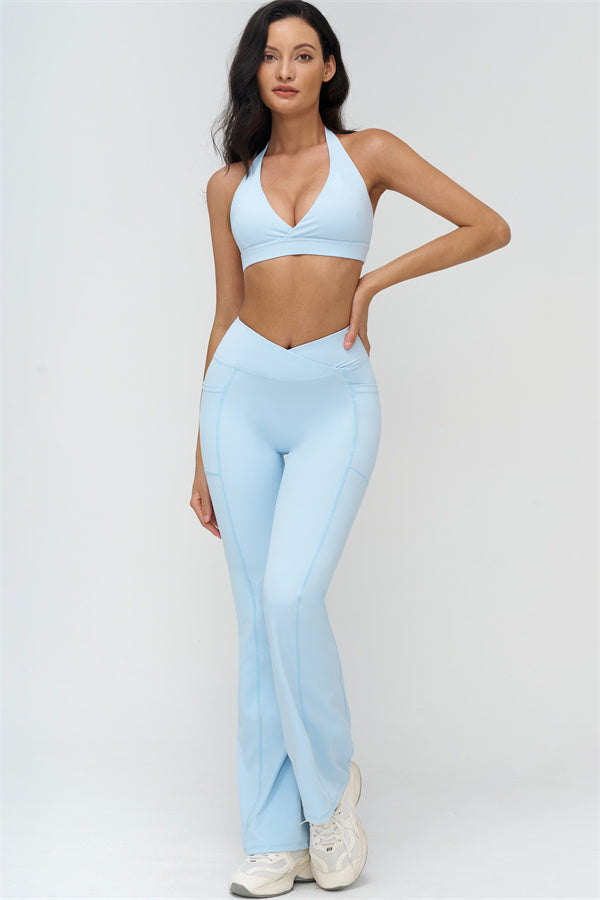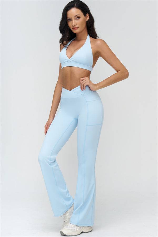 Step up your fitness game with The BoldFit Sports Bra Flared Leggings Set, designed to combine style, support, and freedom of movement. The deep V-neck sports bra accentuates your neckline while the open square back highlights your shoulder blades for a flattering butterfly-back effect. The matching flared leggings feature a cross-waist design that stays in place and flared hems to elongate your legs, making it perfect for both workouts and casual wear.