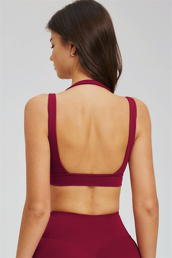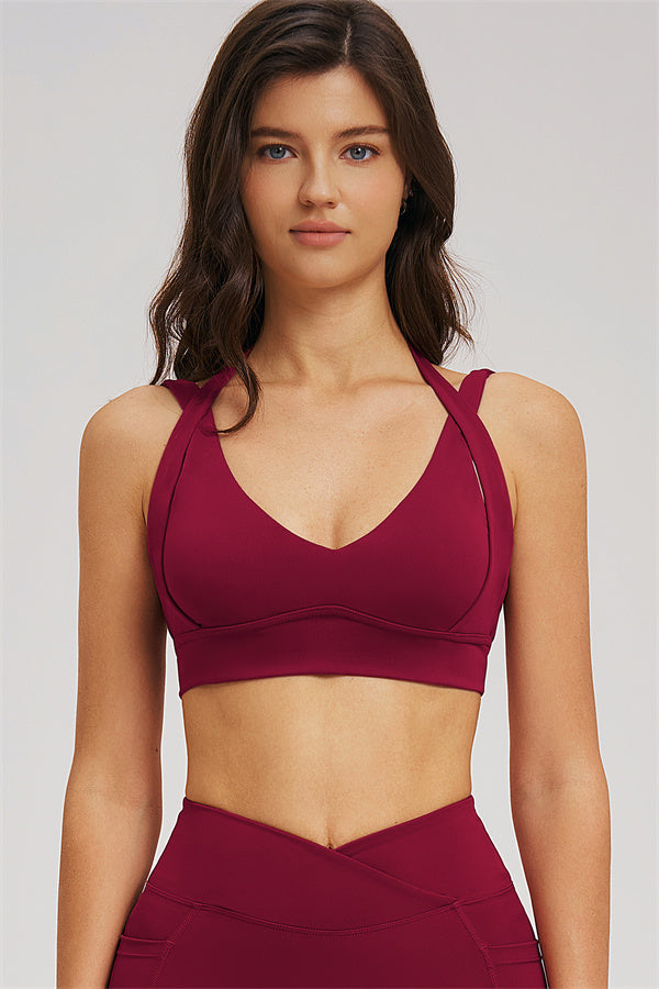 Halter-style straps distribute shoulder pressure evenly for comfort
