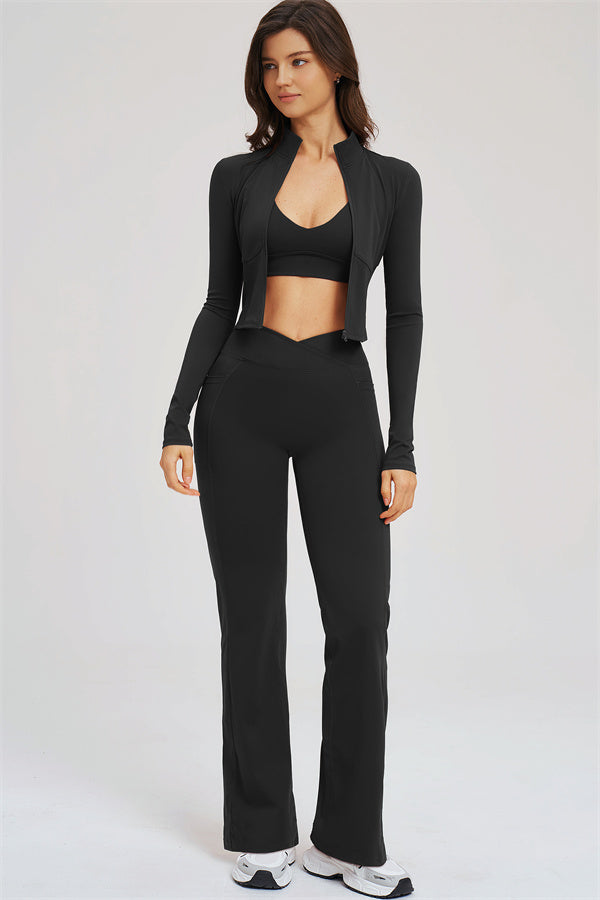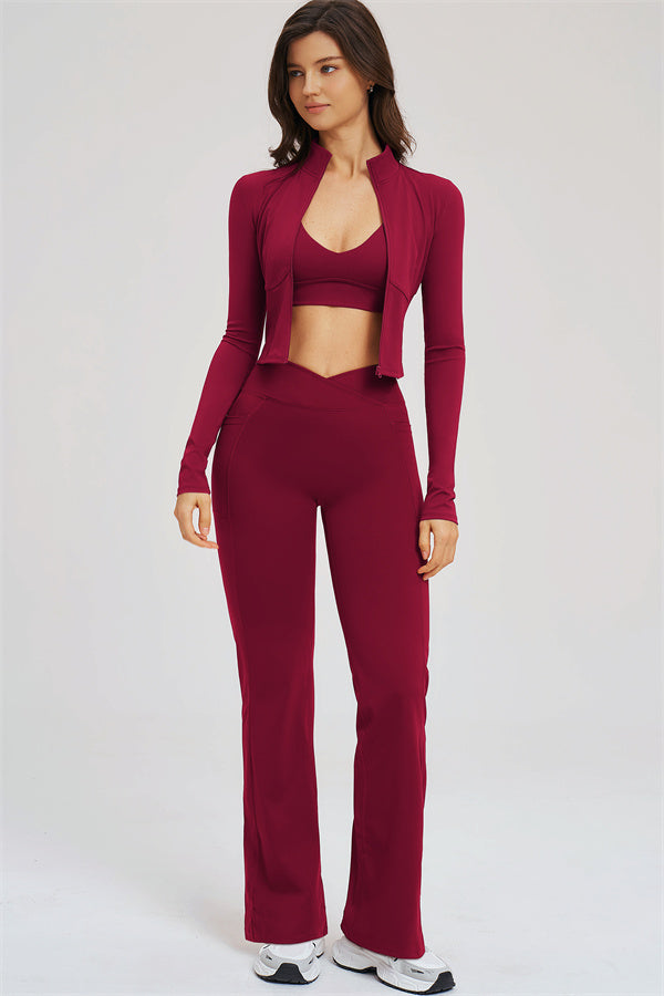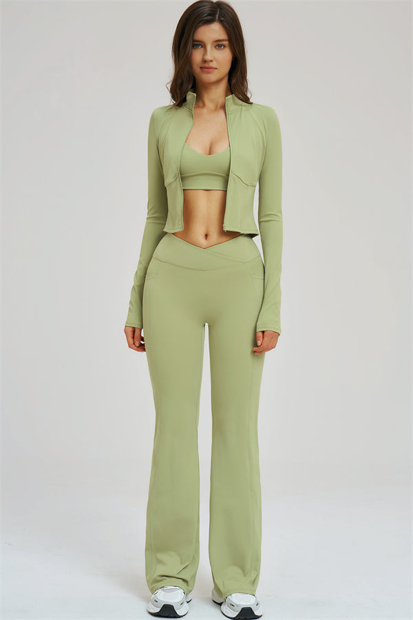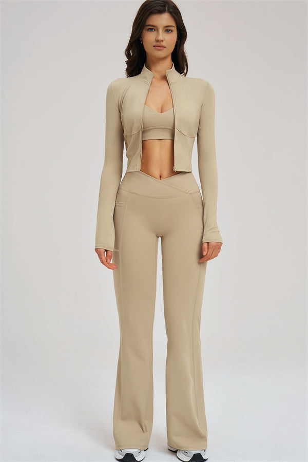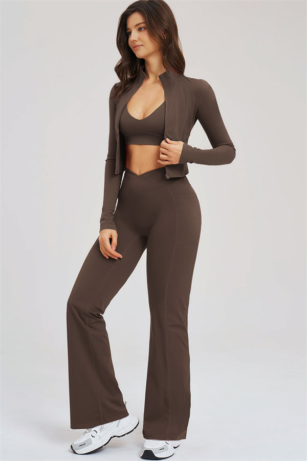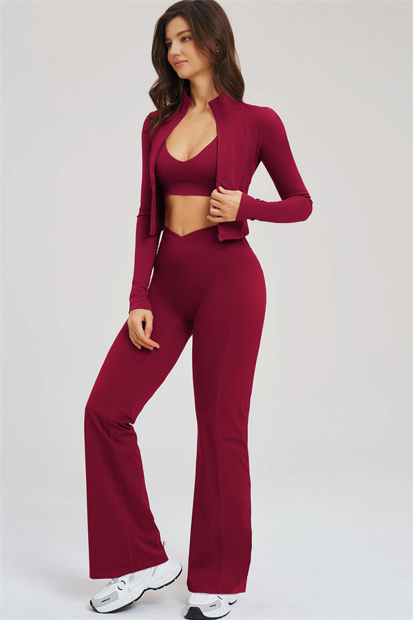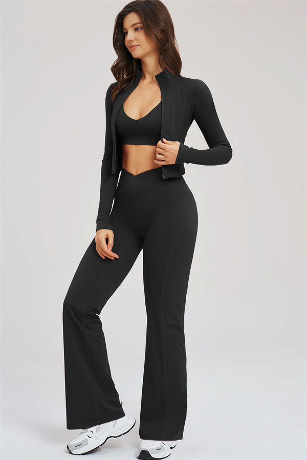 The Sizzle Zip Jacket Sports Bra Flared Leggings 3-Piece Set
