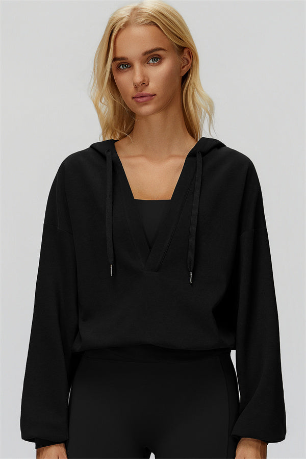 A perfect blend of cozy and chic, the Fyra V-Neck Hoodie brings effortless style and warmth to your everyday look.