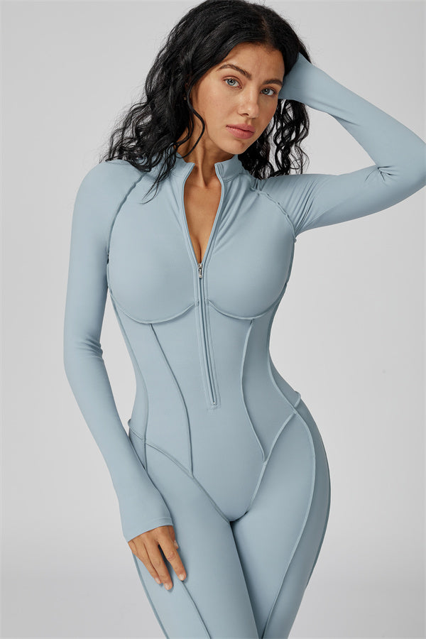 Sleek, sculpting, and effortlessly functional. The Anew Zipper Jumpsuit is designed to hug your curves and move with you. Its one-piece silhouette and half-zip detail offer both style and convenience, making it a versatile go-to for any activity.