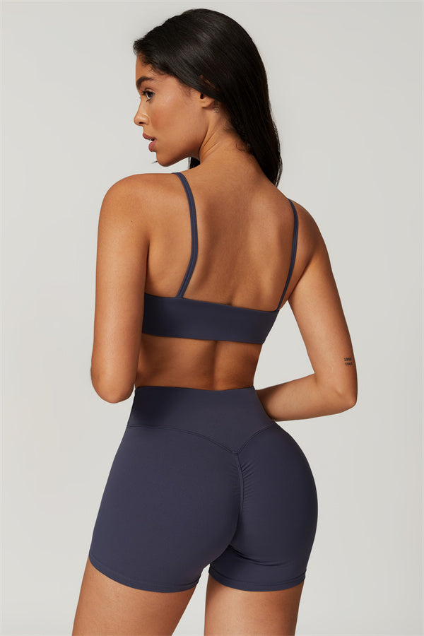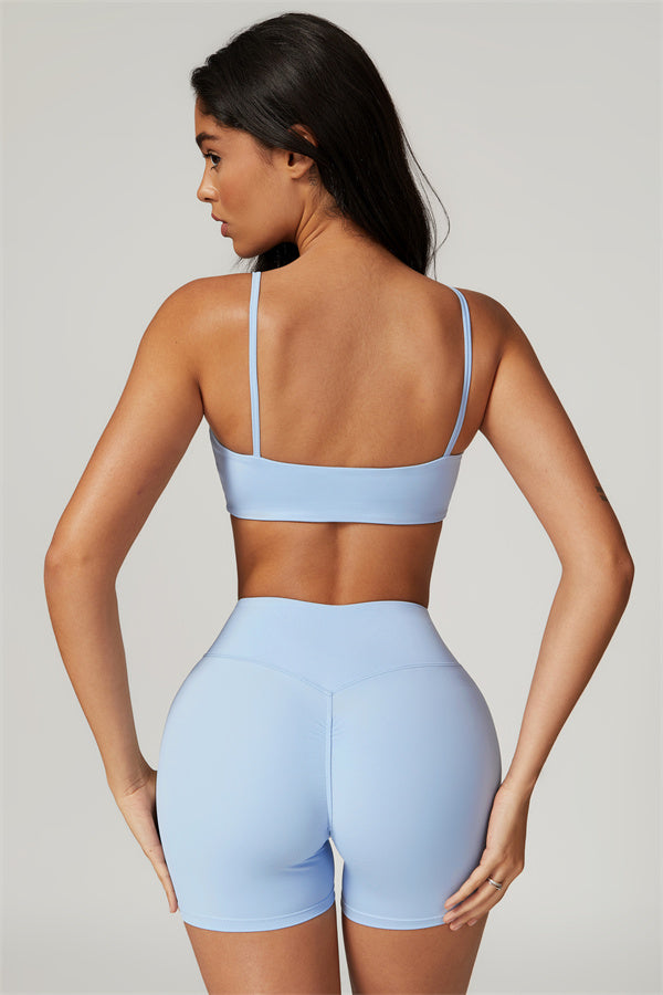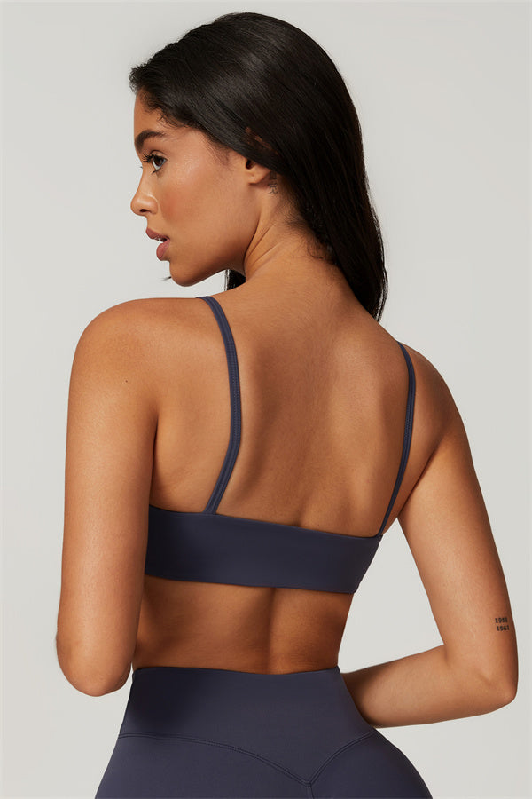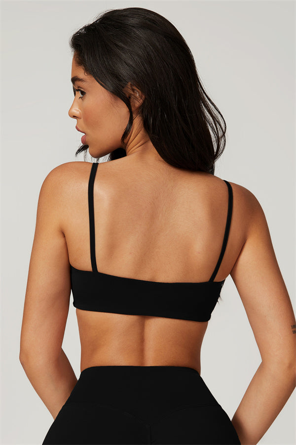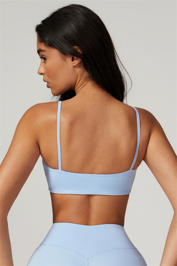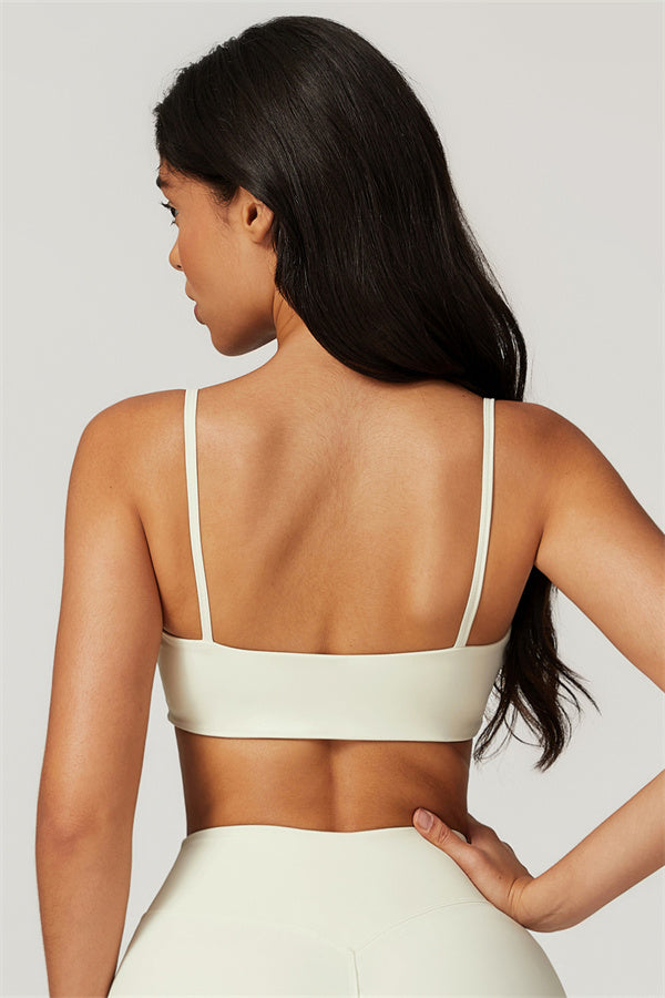 Introducing our U-neck sports bra, designed to beautifully accentuate your collarbone. The unique square cut-out back highlights your shoulder blades, creating a stunning look while providing excellent support.