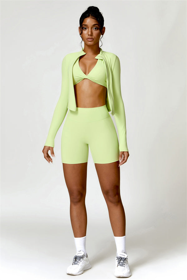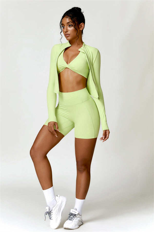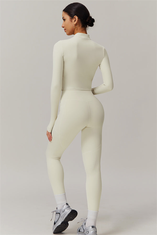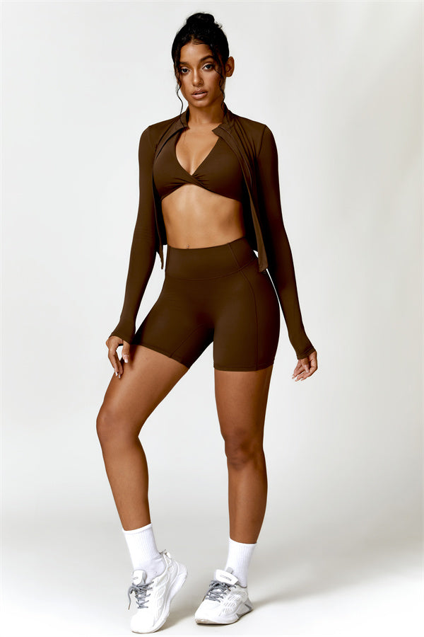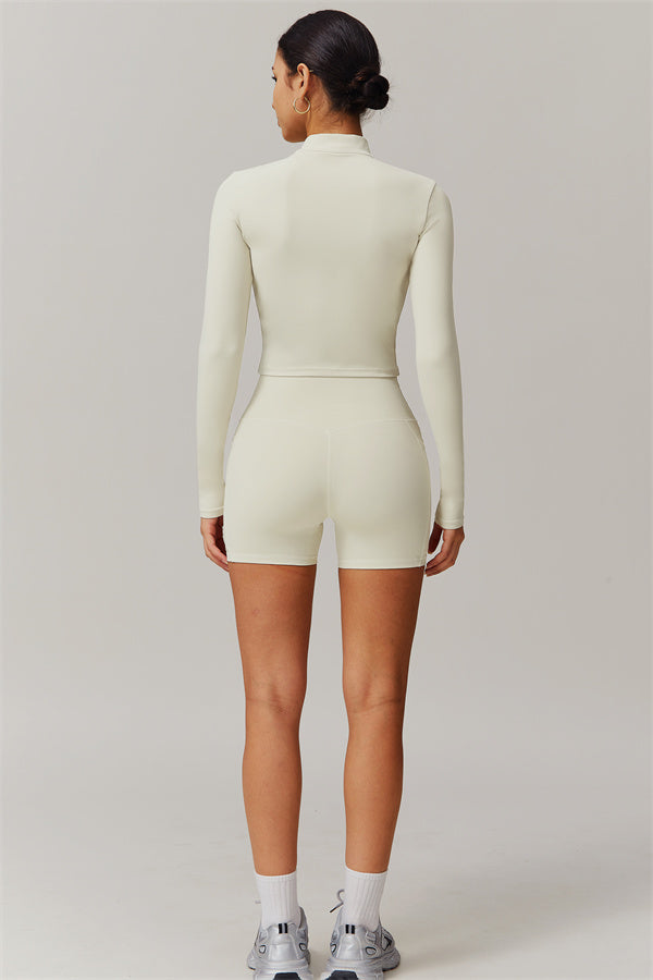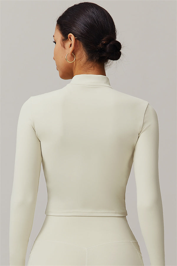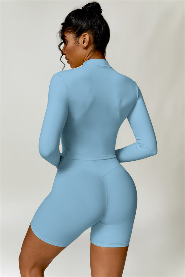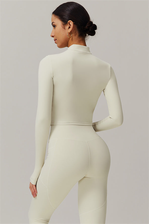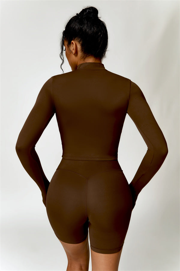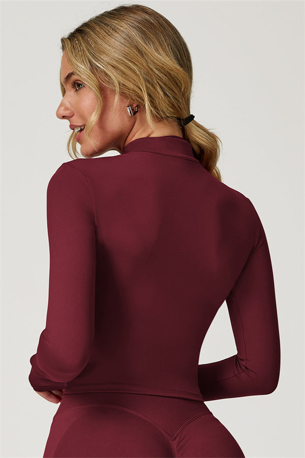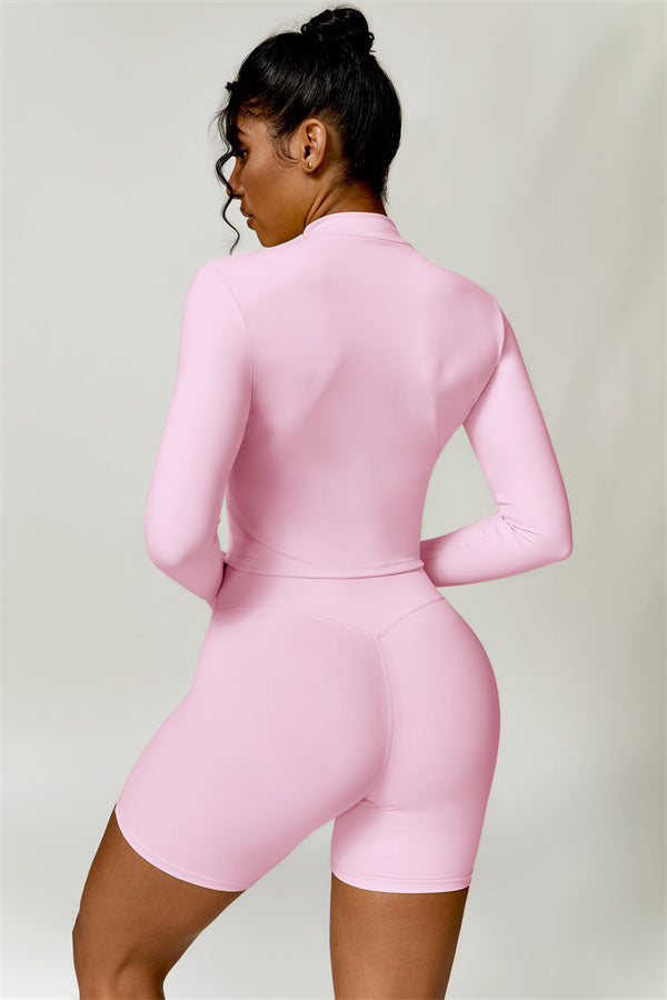 Elevate your activewear collection with this stylish zip jacket, featuring a stand-up collar and a full-length zipper for customizable coverage and a touch of sporty sophistication. The V-shaped hemline enhances your silhouette, creating a flattering, cinched waist effect that pairs perfectly with leggings or joggers.