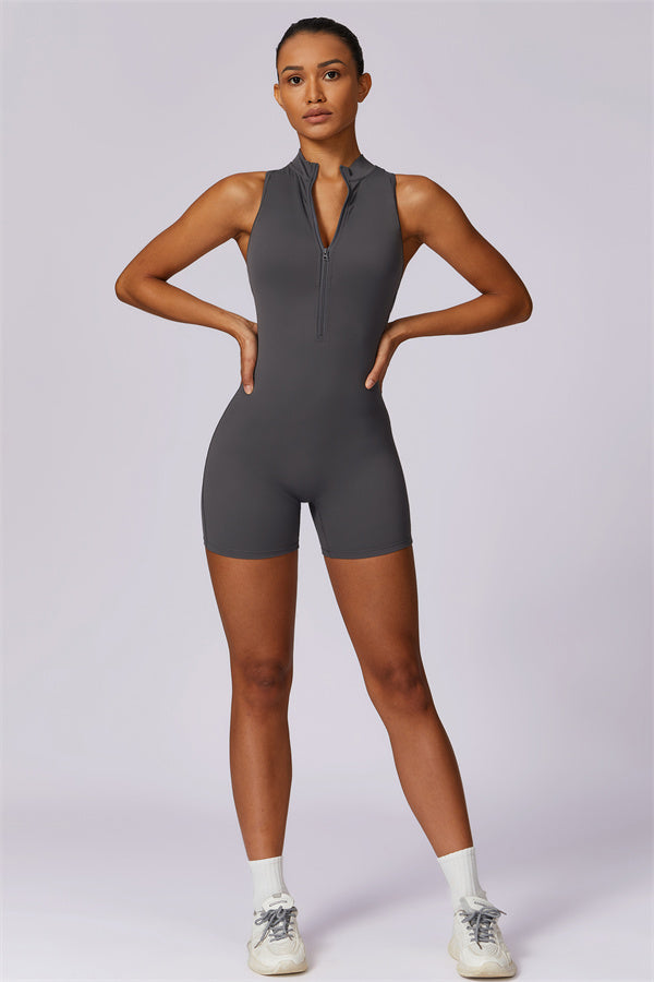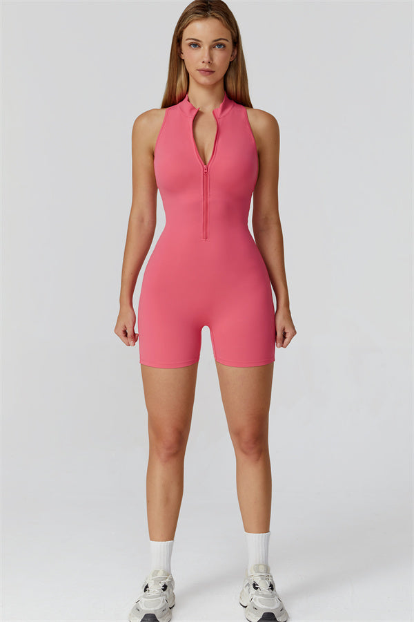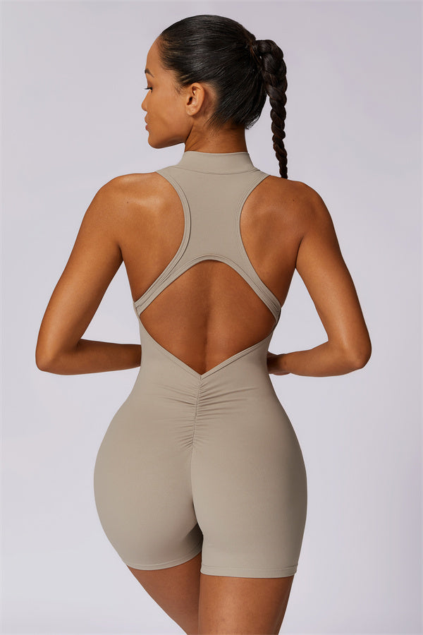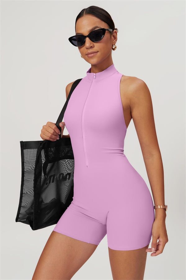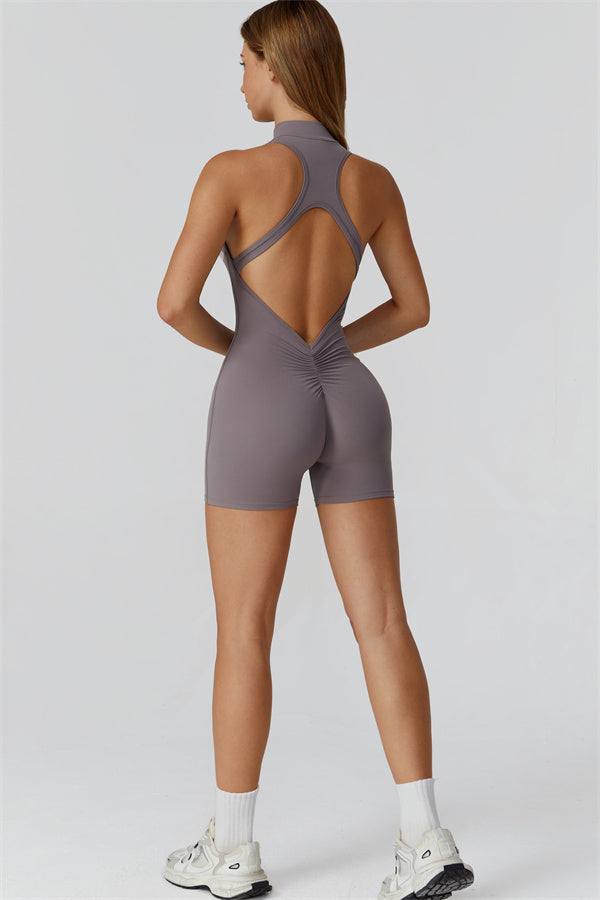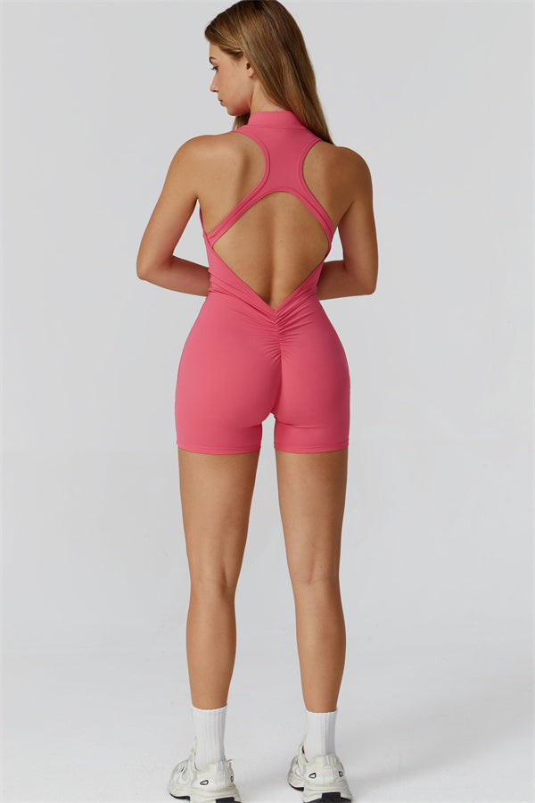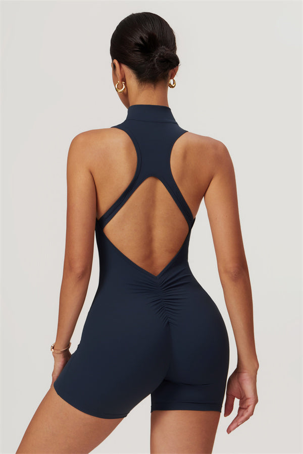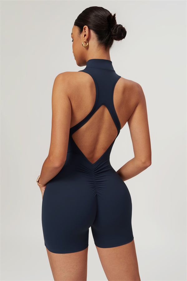 Sleek stand-up collar half-zip design, perfect for keeping the wind at bay while adding a cool edge to your look. The cutout back showcases your beautiful shoulder blades, offering a touch of allure during your workouts.