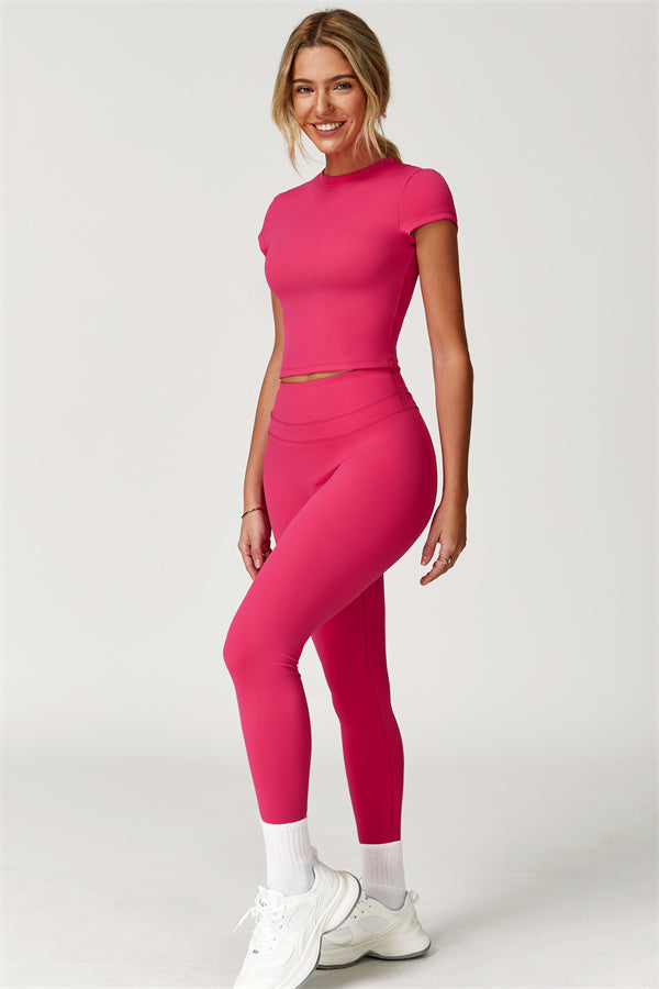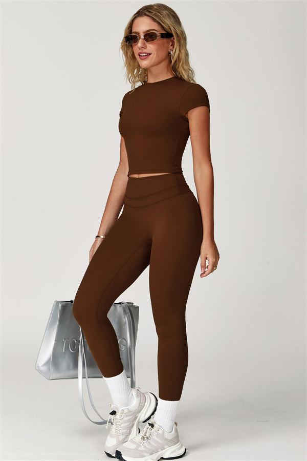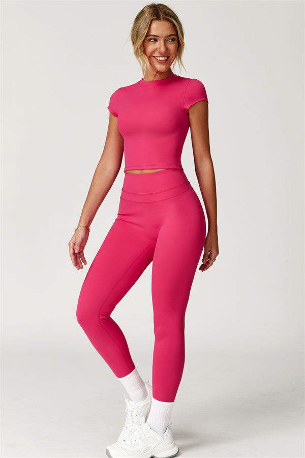 Designed for both performance and style, the SculptFit T-Shirt & Leggings Set offers a sleek, sculpting fit that moves with you. Whether you're working out or running errands, this set provides effortless comfort and a flattering silhouette.