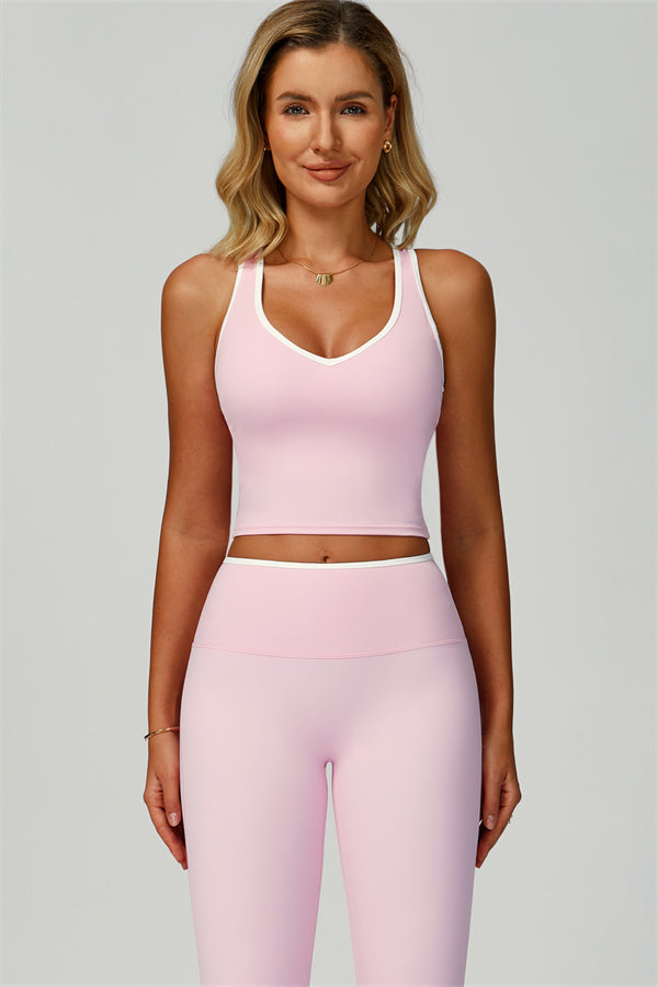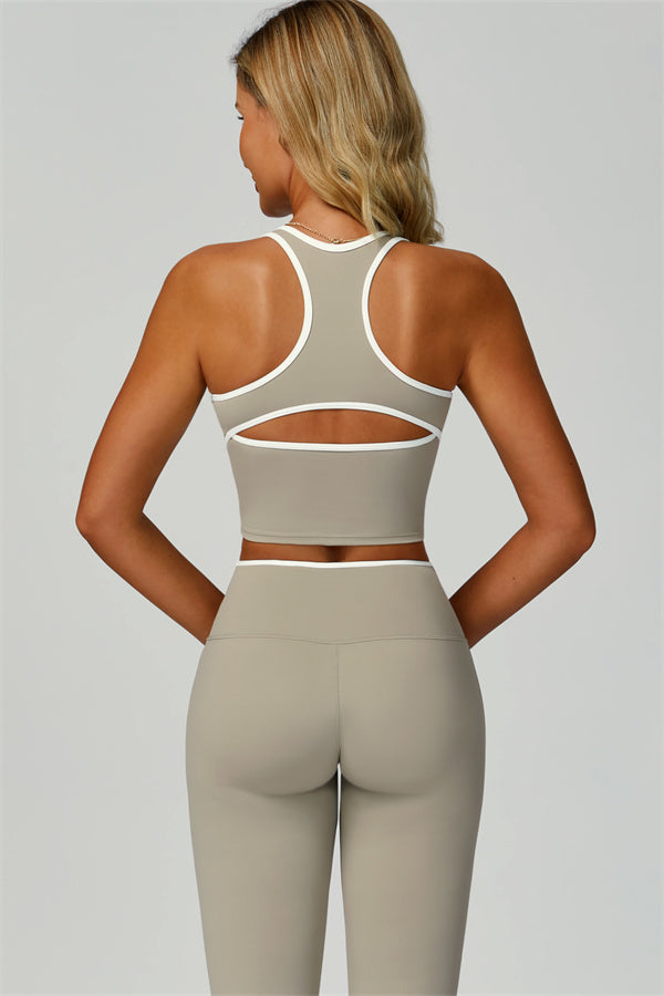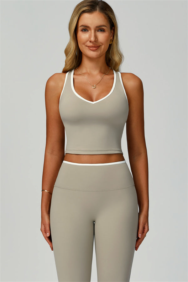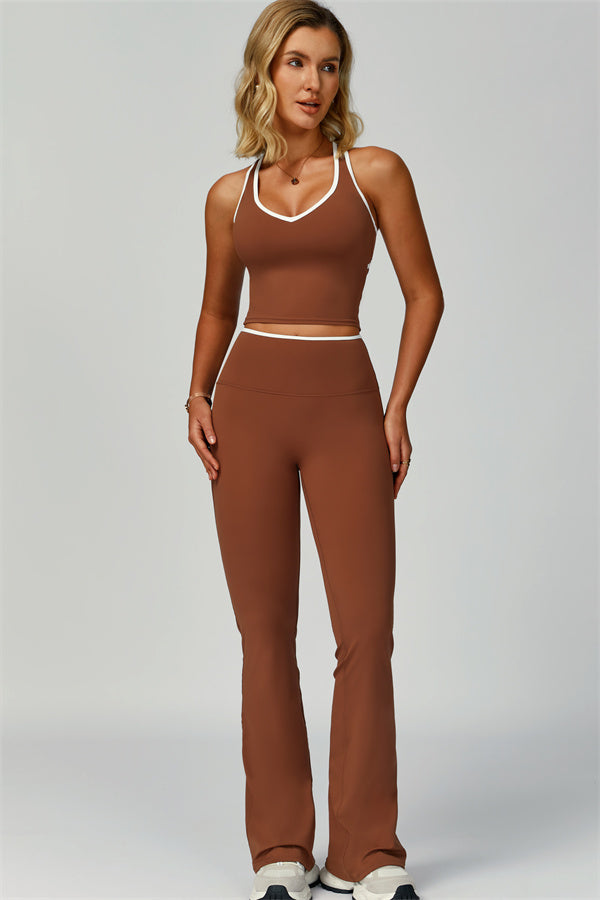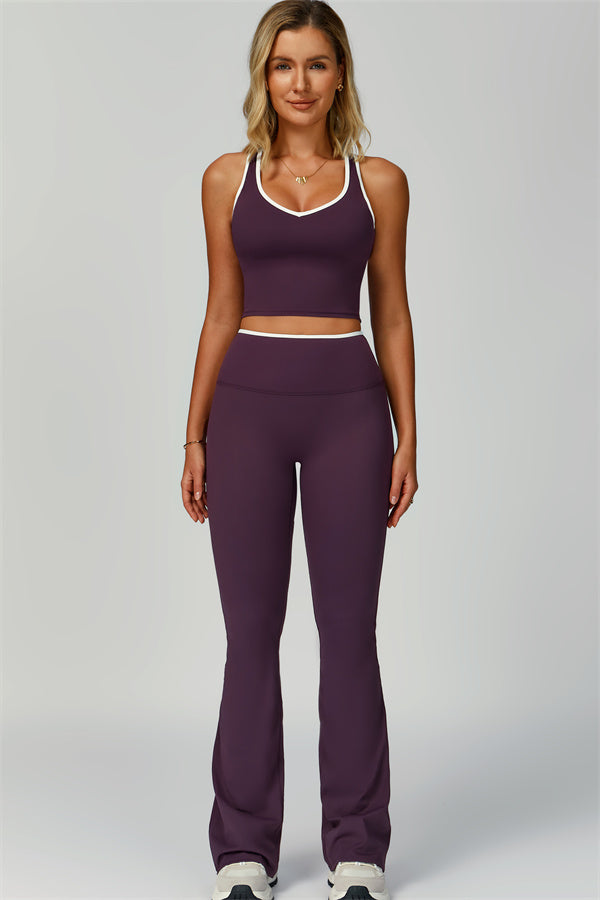 Step into effortless style and sculpted comfort with The Quest Set. This matching set features a flattering V-neck tank with open-back details and figure-enhancing flared leggings.