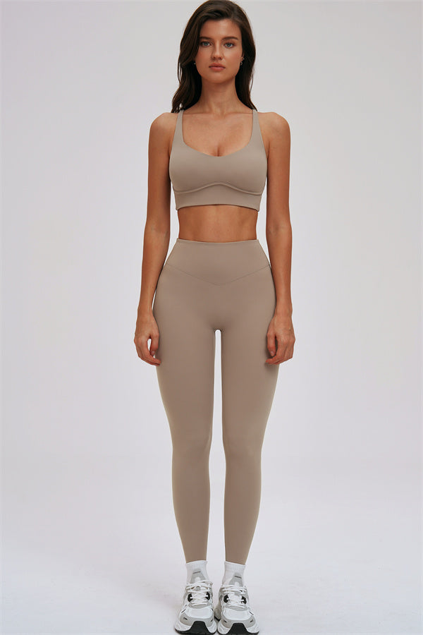 The Kinetic Cross Back Sports Bra & Leggings 2-Piece Set – designed for ultimate support, style, and comfort during your workouts.