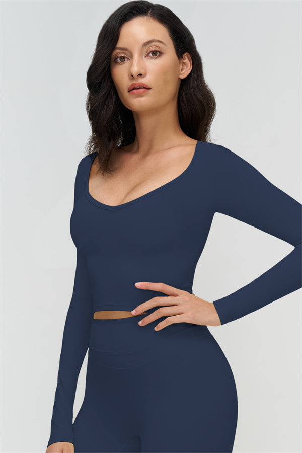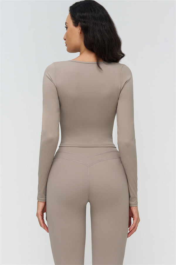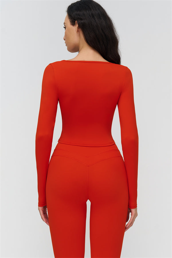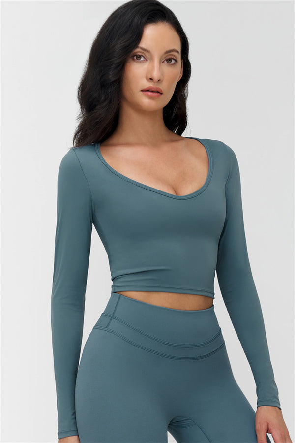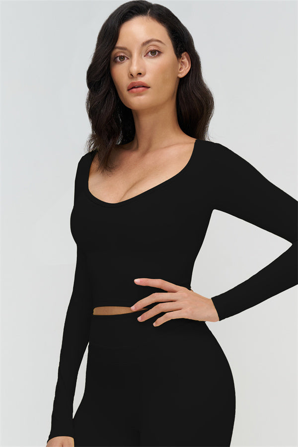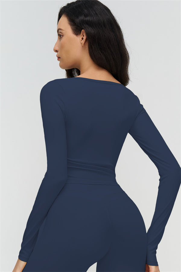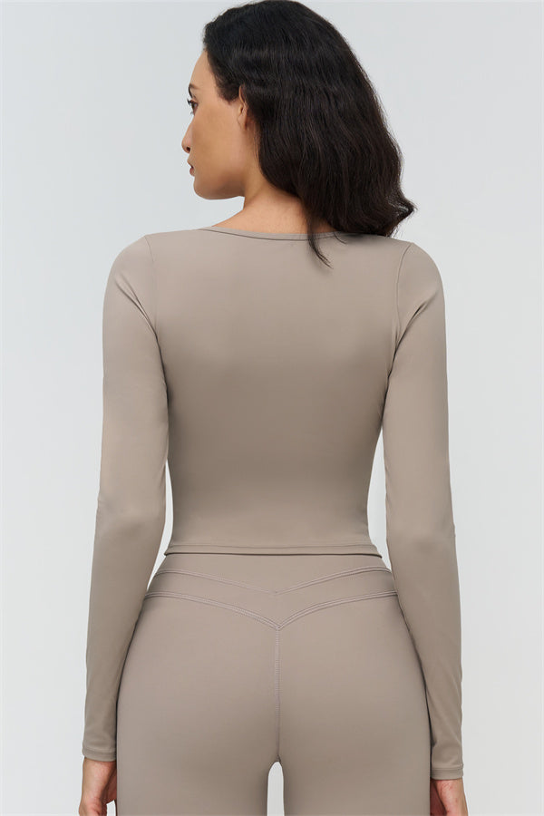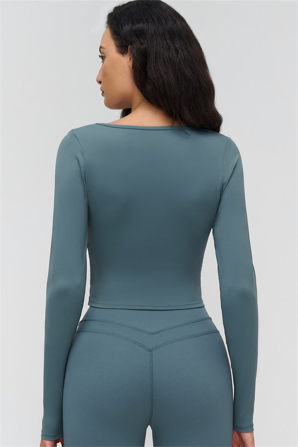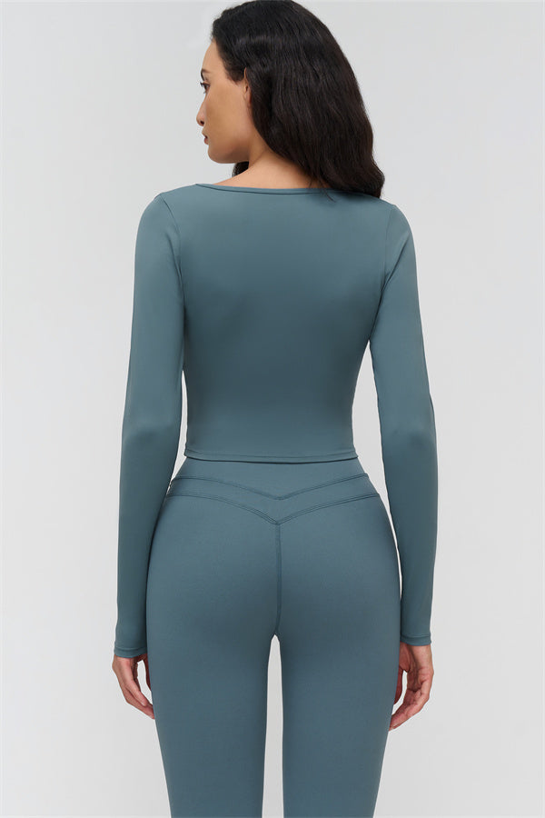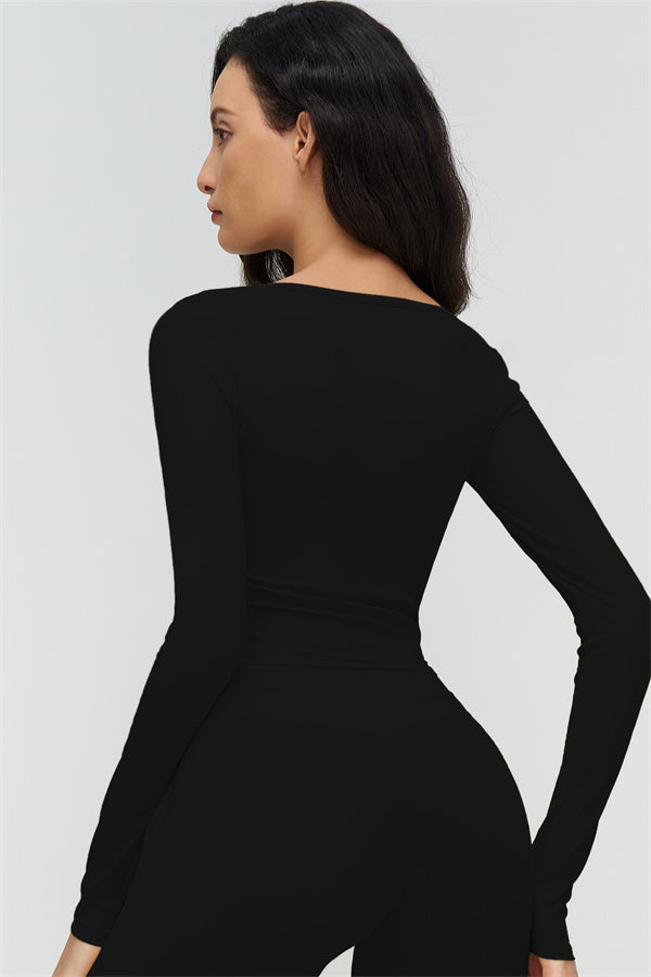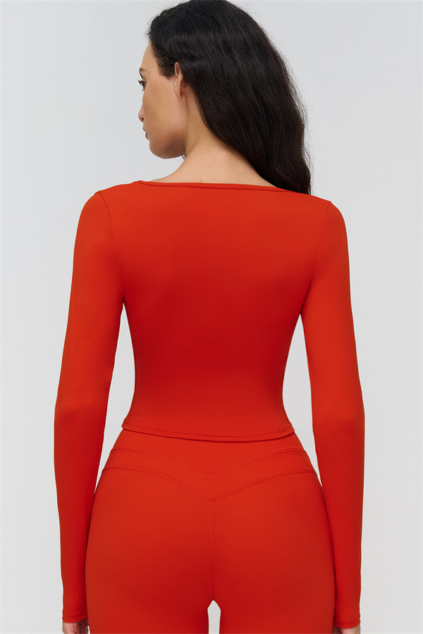 • Long-sleeve, mid-length fit reveals the waist subtly