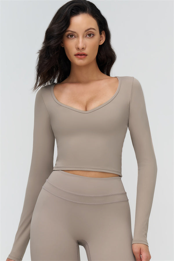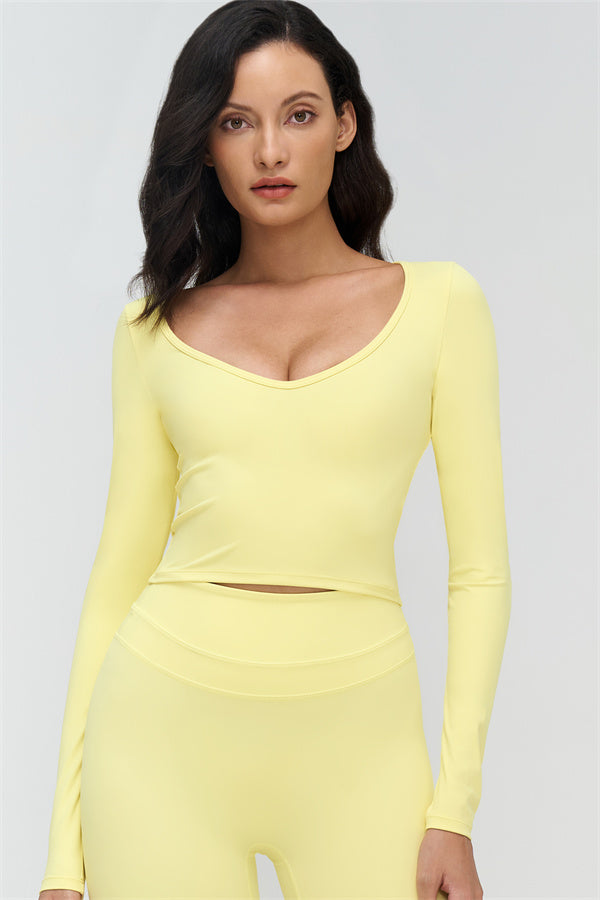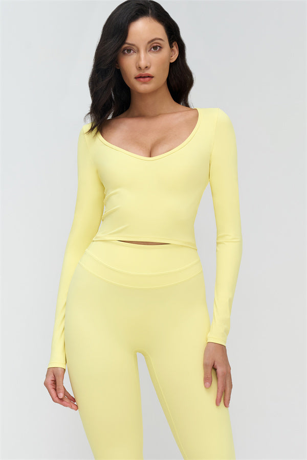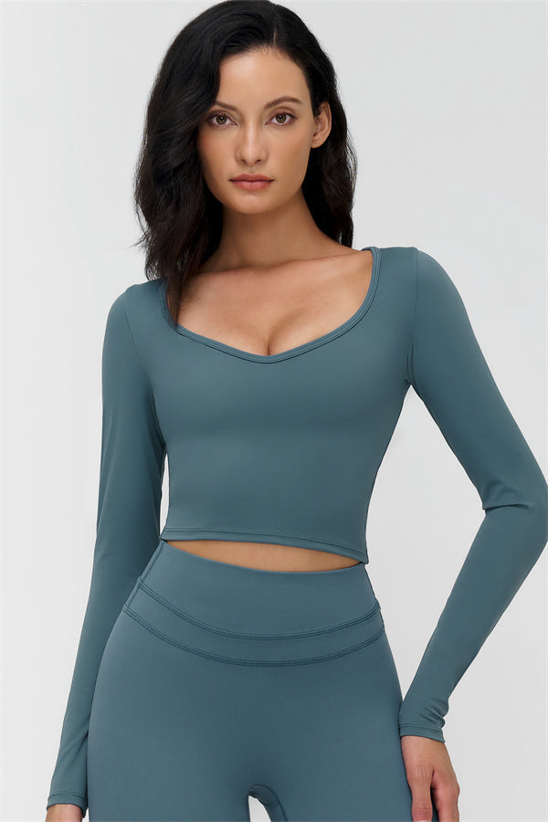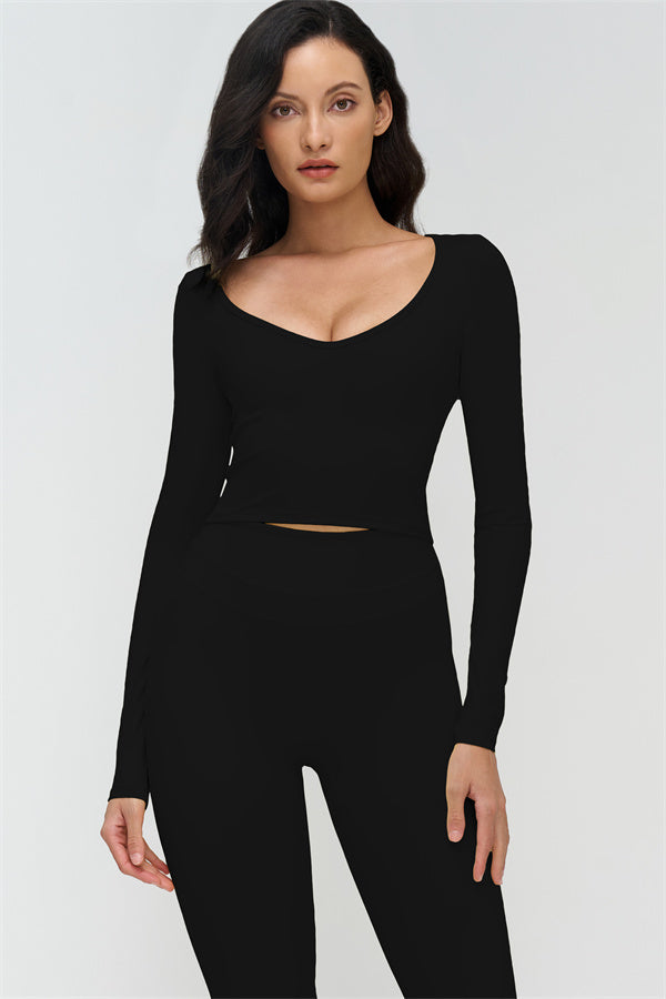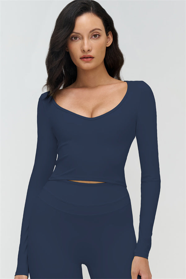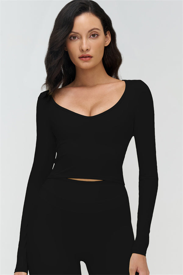 • V-neck design accentuates the collarbone and highlights feminine curves