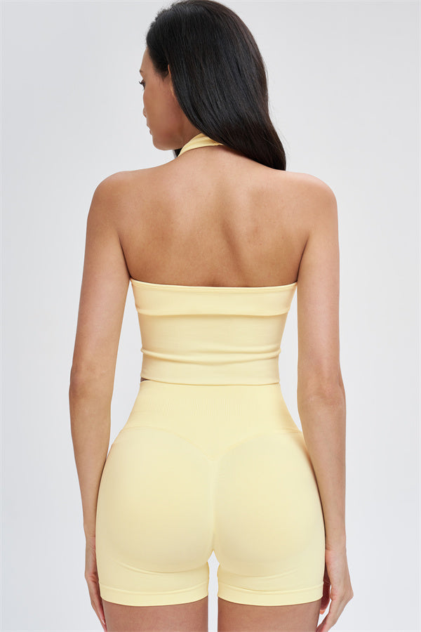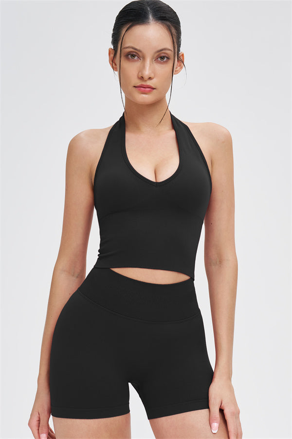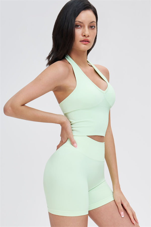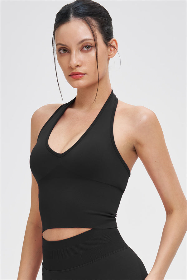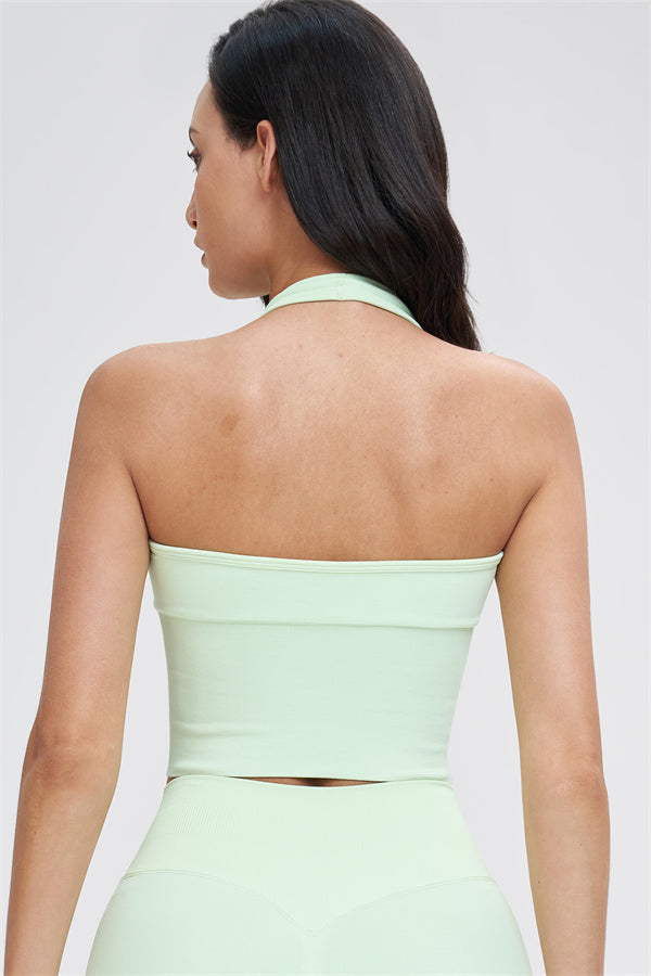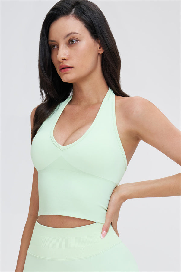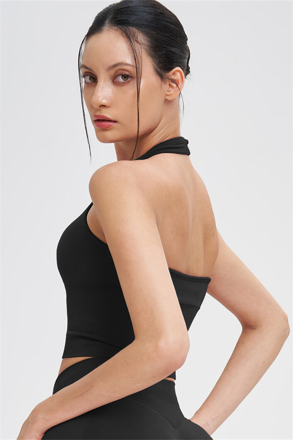 Straps: Halter-style shoulder straps for a clean, breathable feel and a beautifully defined back