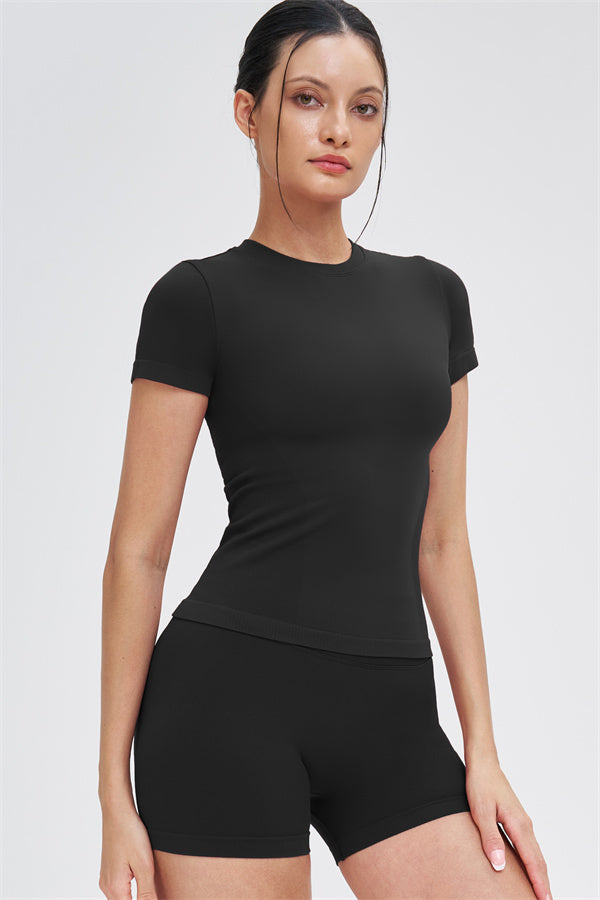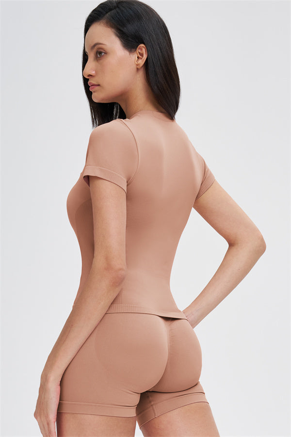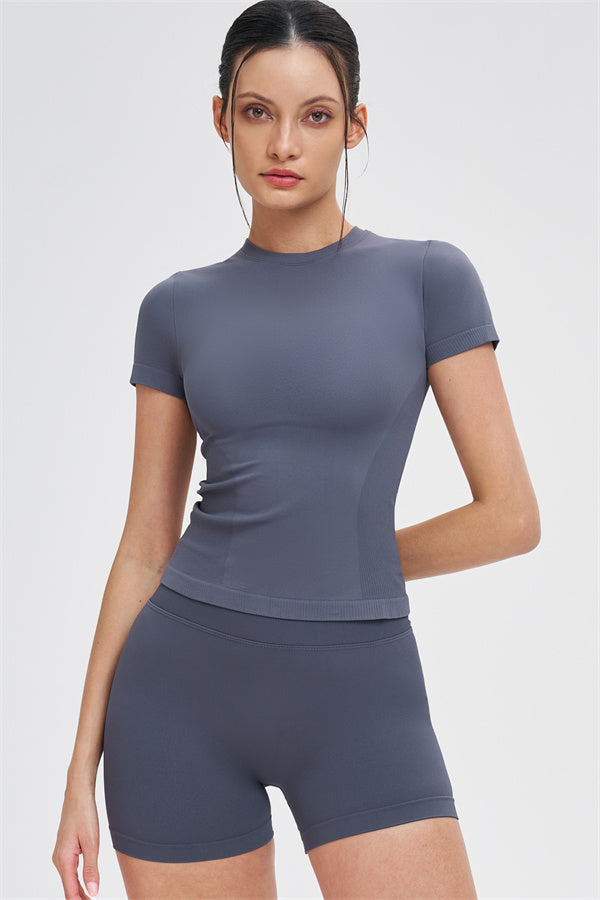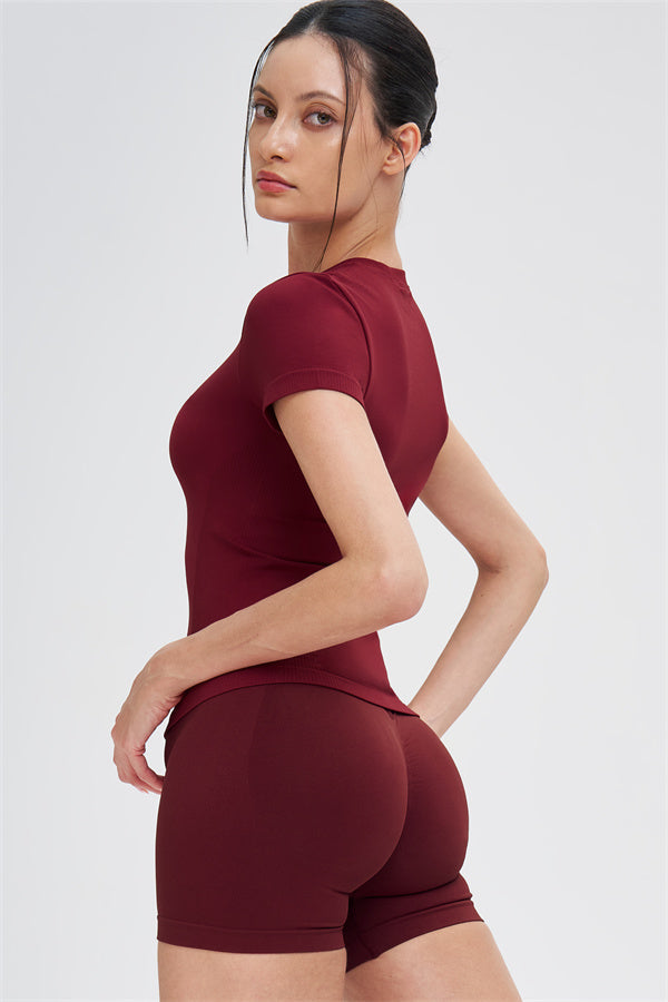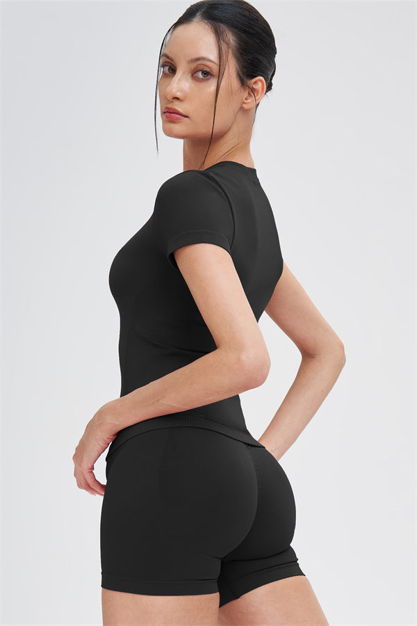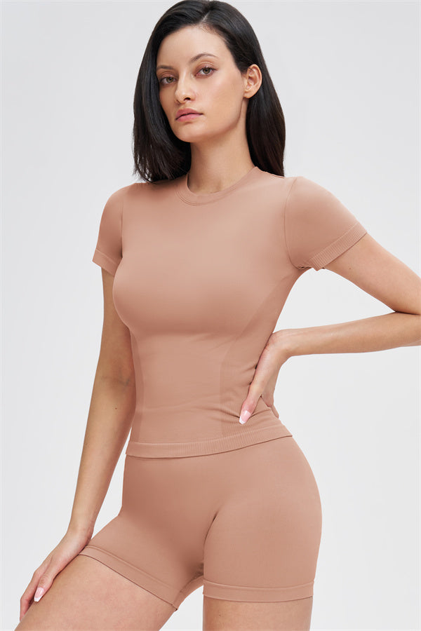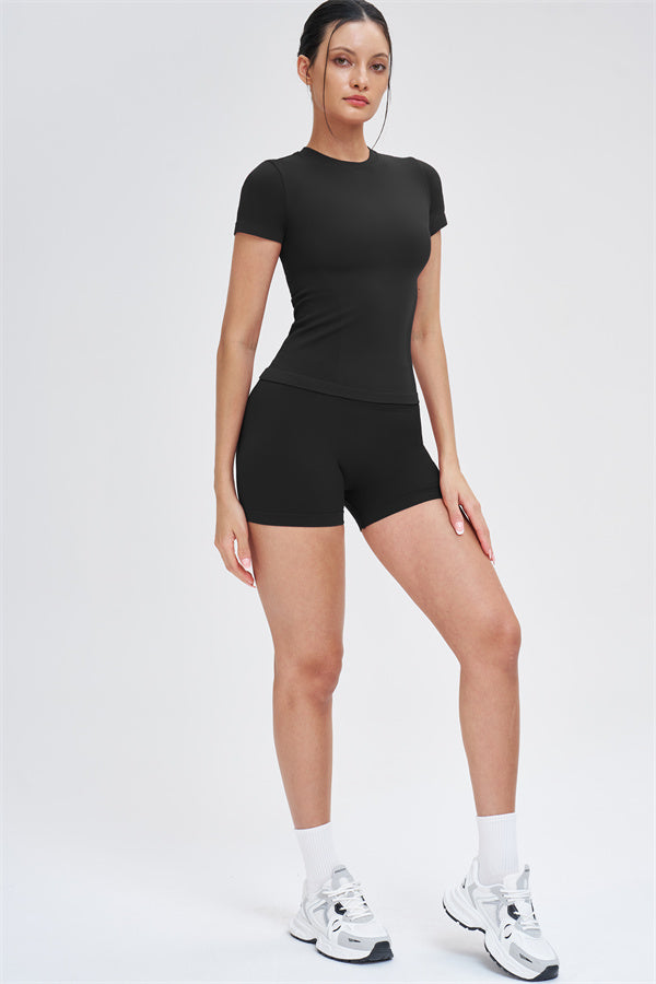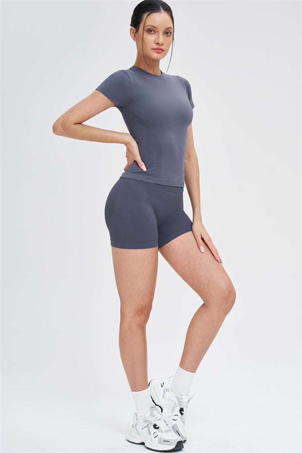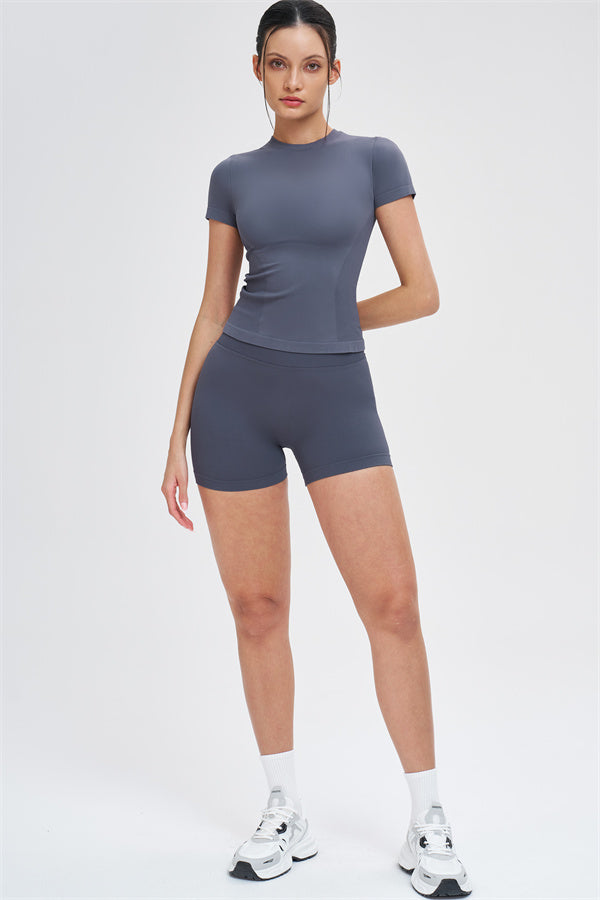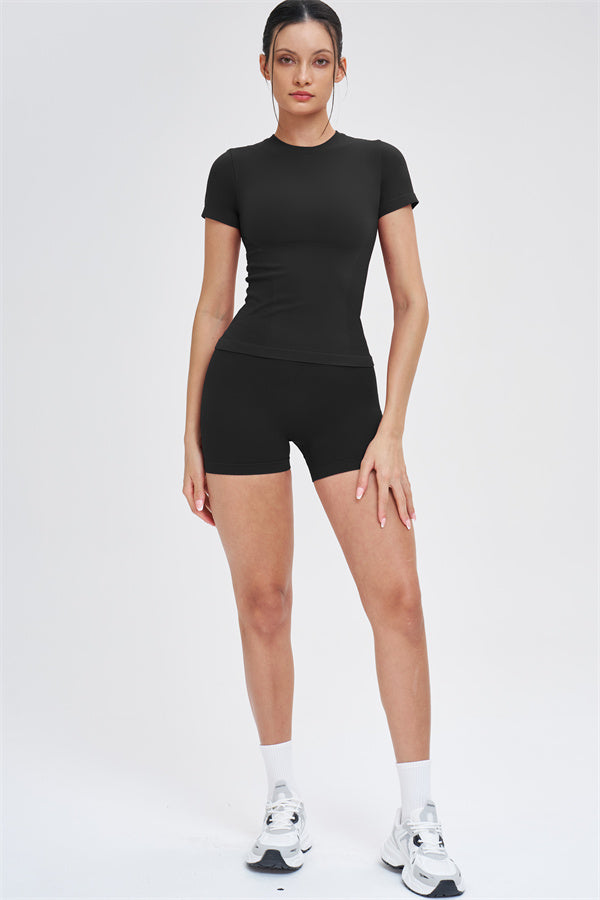 The Whim T-shirt Shorts 2-Piece Set blends seamless comfort with sculpting support, making it an easy go-to for workouts and everyday movement.