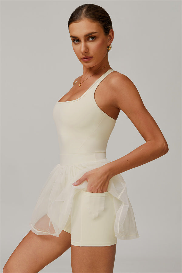 Where sporty meets romantic. The Pearl Tennis Dress brings a playful twist to performance wear. Designed with a voluminous bubble-hem silhouette and built-in shorts for comfort and confidence, it's perfect for workouts, commuting, or casual days out.