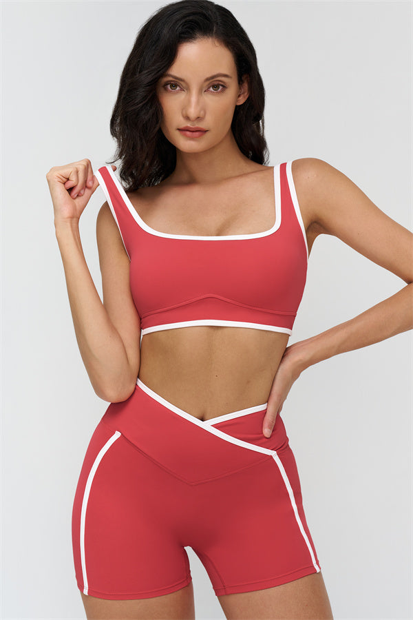 Elevate your workout wardrobe with The Crave Sports Bra, designed to highlight your curves while providing comfort and support. The wide neckline showcases your collarbones, and the removable padding allows for versatile wear from gym to street.